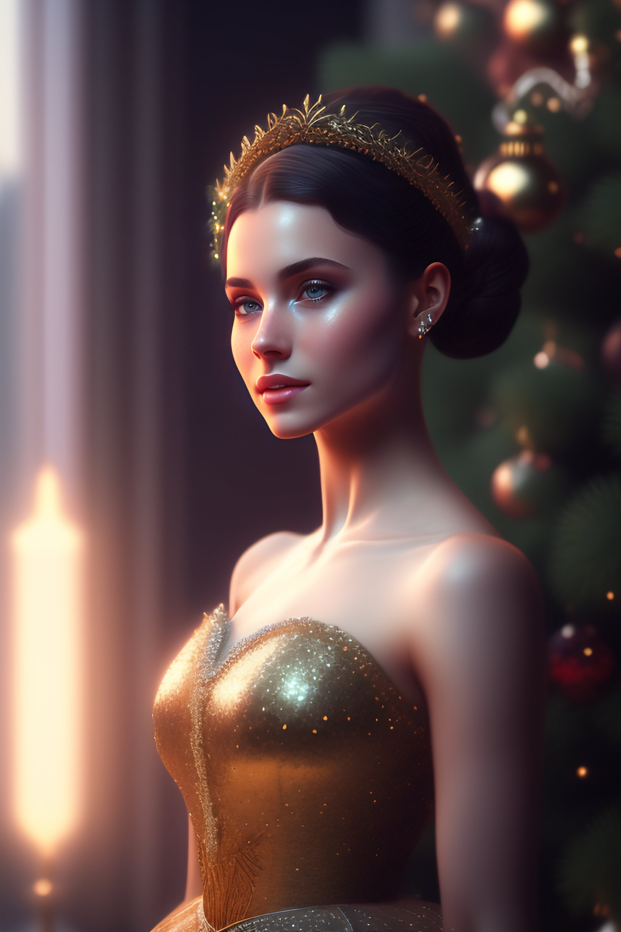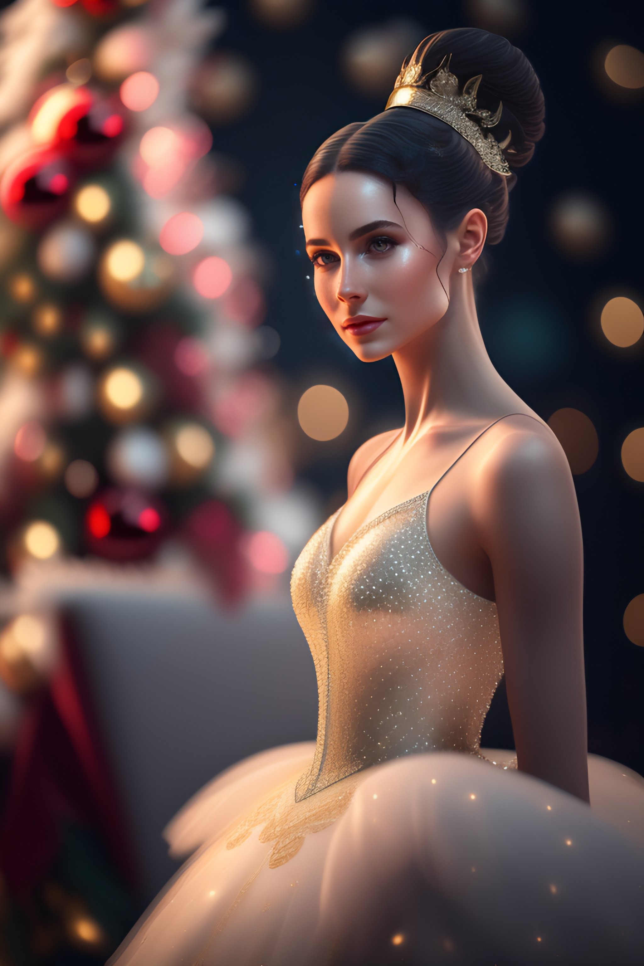 Ballerina 20 years old, dancing, the christmas tree, elegant, highly detailed, smooth, sharp focus, detailed, high contrast, graphic novel, highly detailed, unreal engine, octane render, trending in artstation, highly detailed, professional