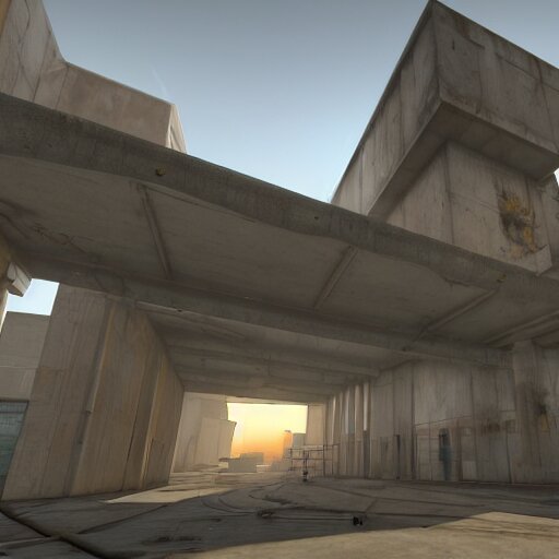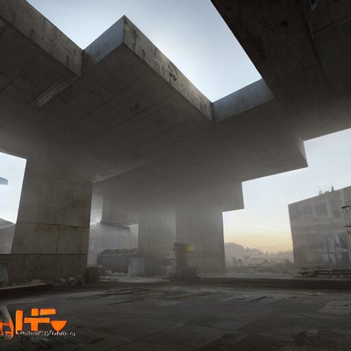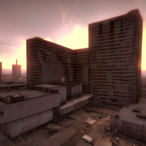 A half life 2 level, from the 2004 pc game half life, brutalist architecture, stunning volumetric light, sunset, stunning skies, majestic landscape, trending on artstation, 8k, photorealistic, hyper detailed, unreal engine 5, imax quality, cinematic, epic lighting, in the style of viktor antonov
