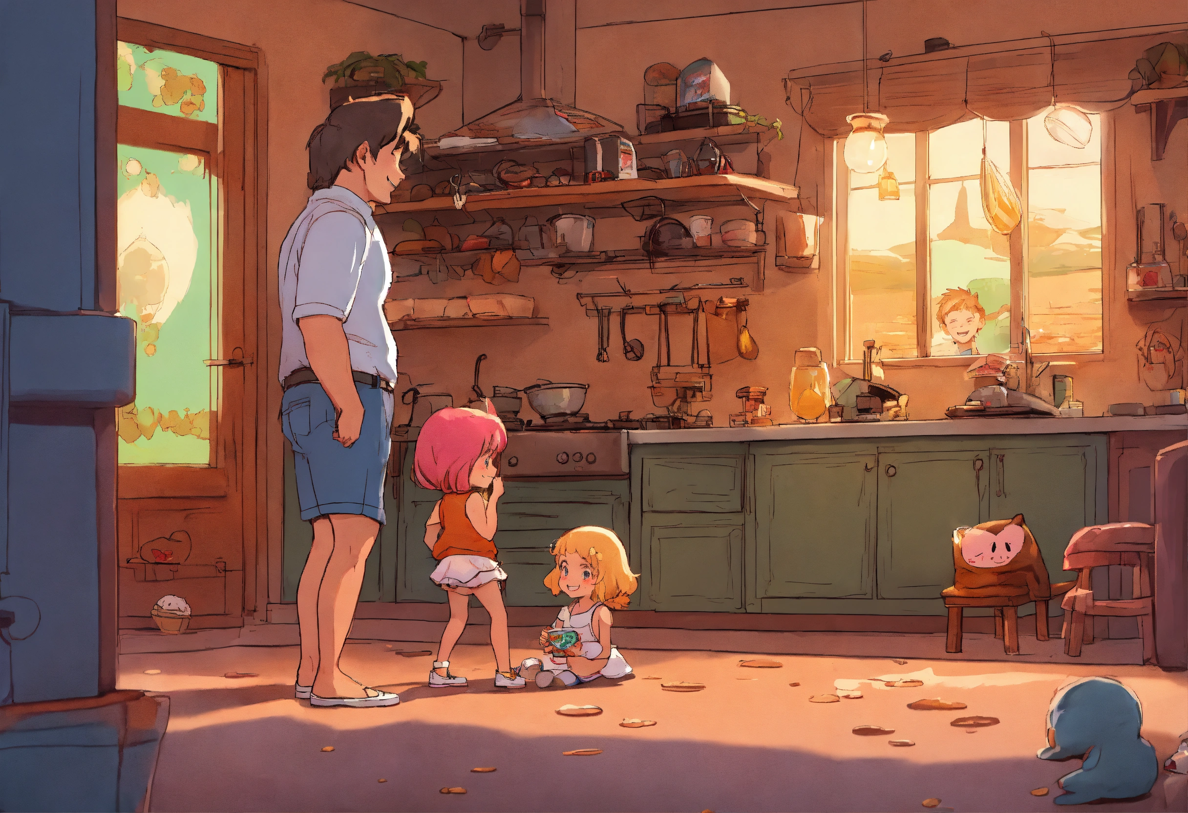 At the same time, he was saying under his breath "your daughter ate all the things. nothing was kept." then he smiled, yes, got it, wow, fun namco.in cartoon image