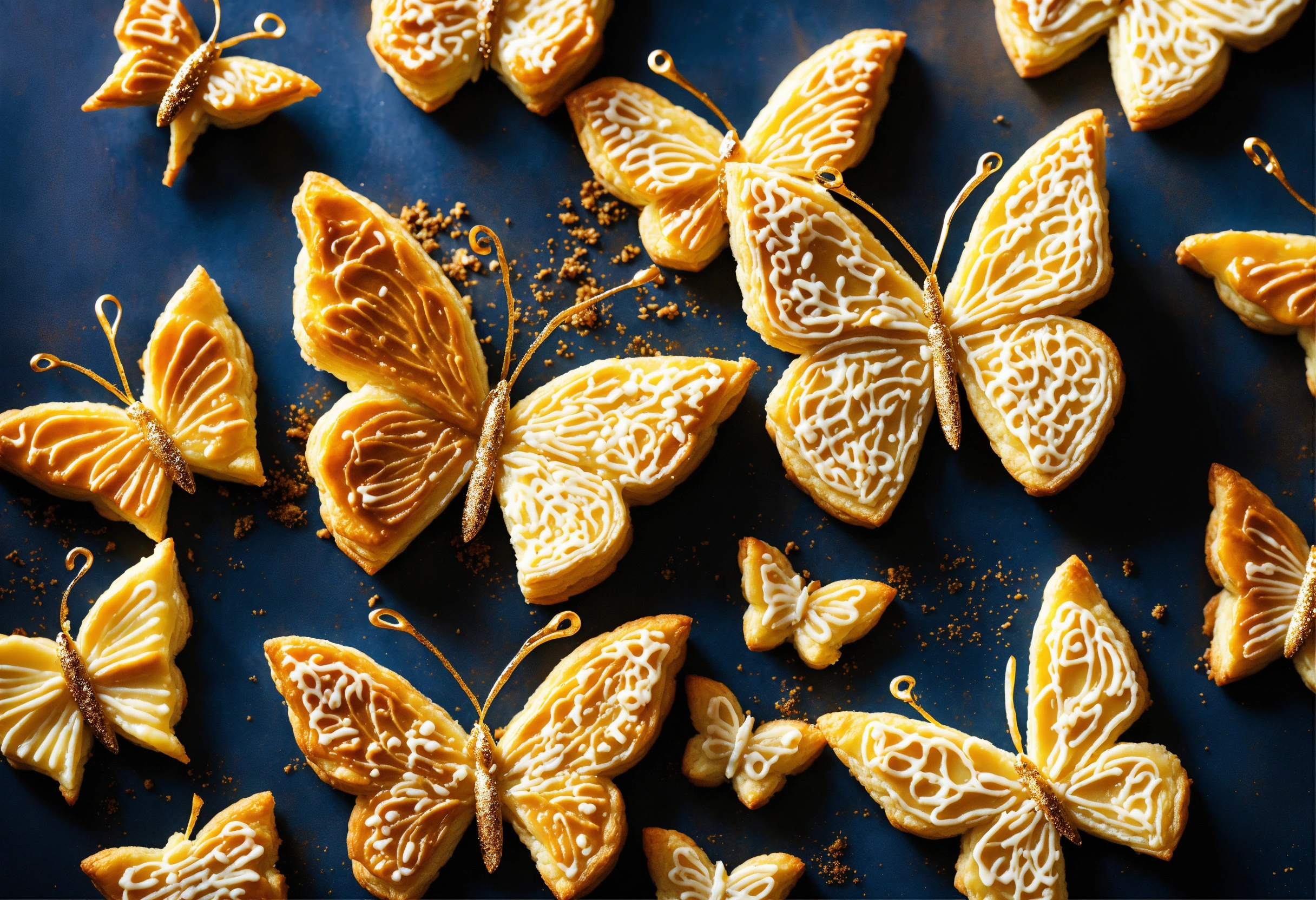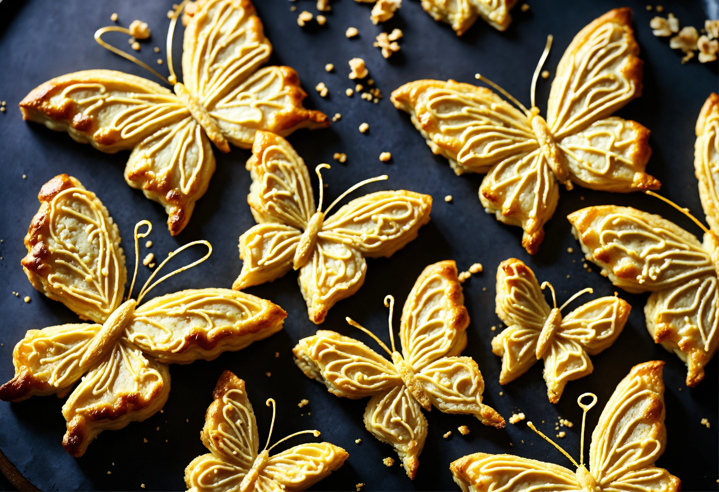 Capture the essence of puff pastry cheese butterflies in a single image for our recipe website. show off its golden, lacy texture and the perfect balance. make our readers crave a bite just by looking at your photo. we want to see the florentine cookie in all its mouthwatering glory, ready to inspire bakers and delight sweet tooths alike. get creative with your composition, lighting, and styling