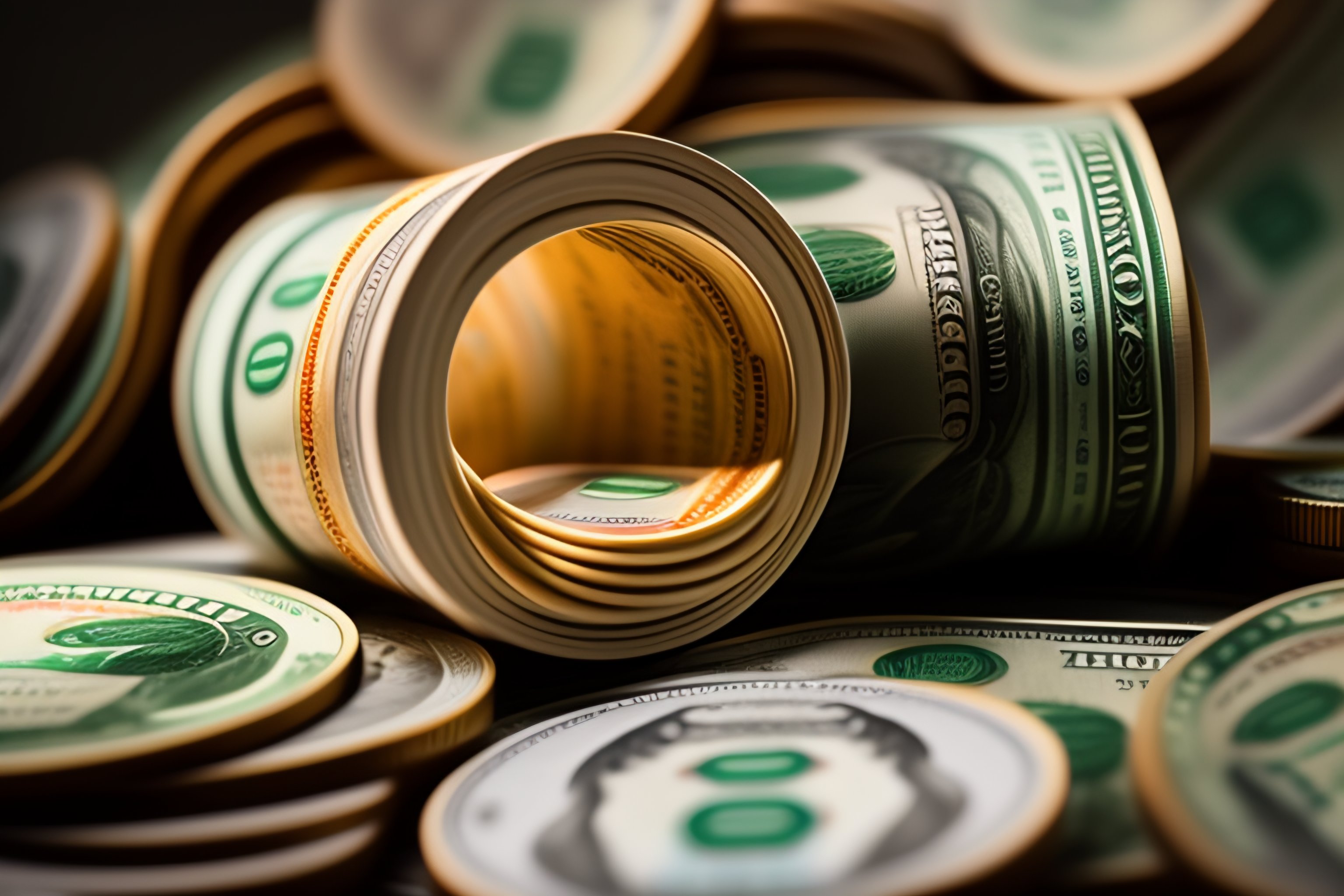 Money stacked to the ceiling