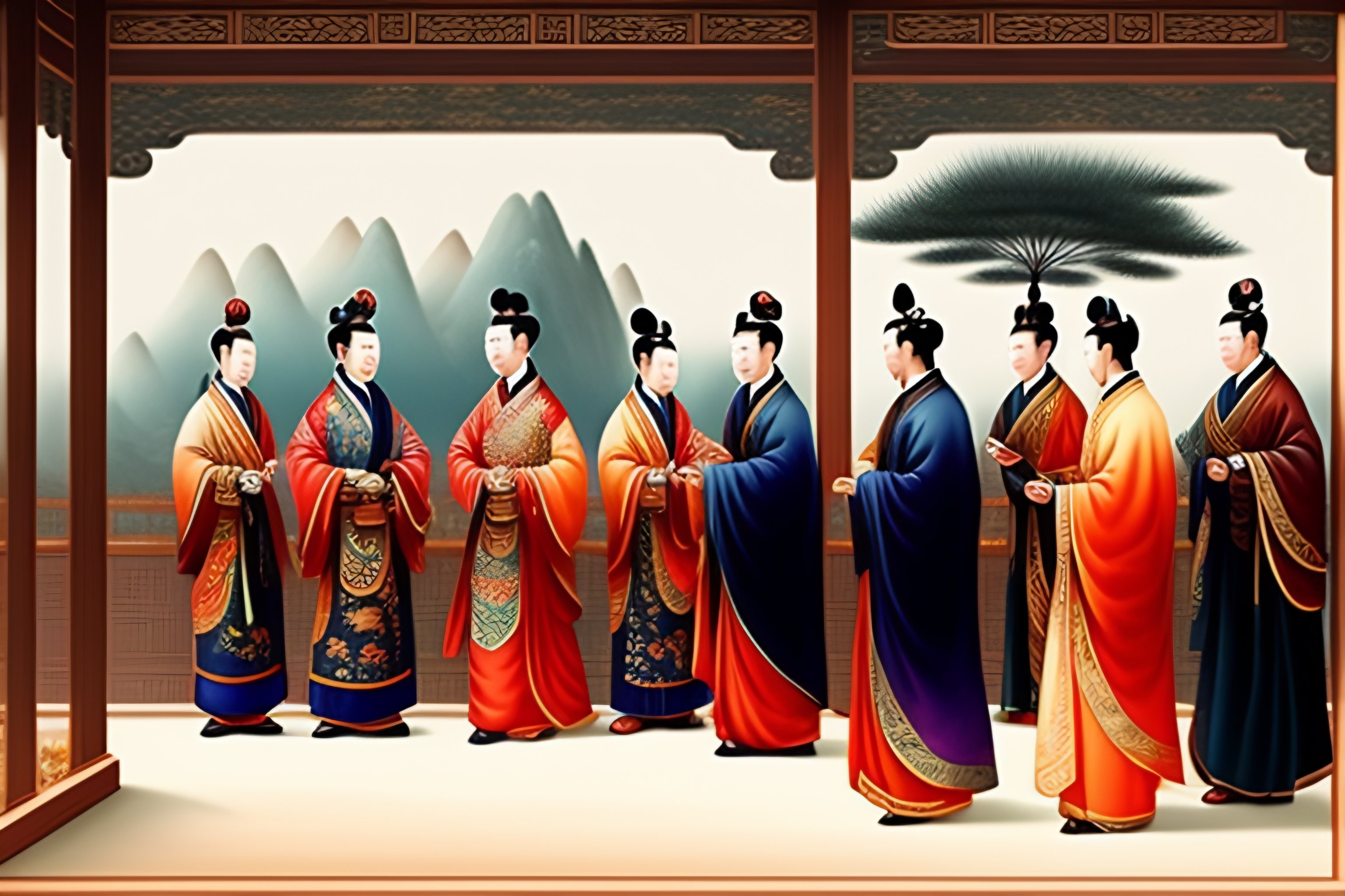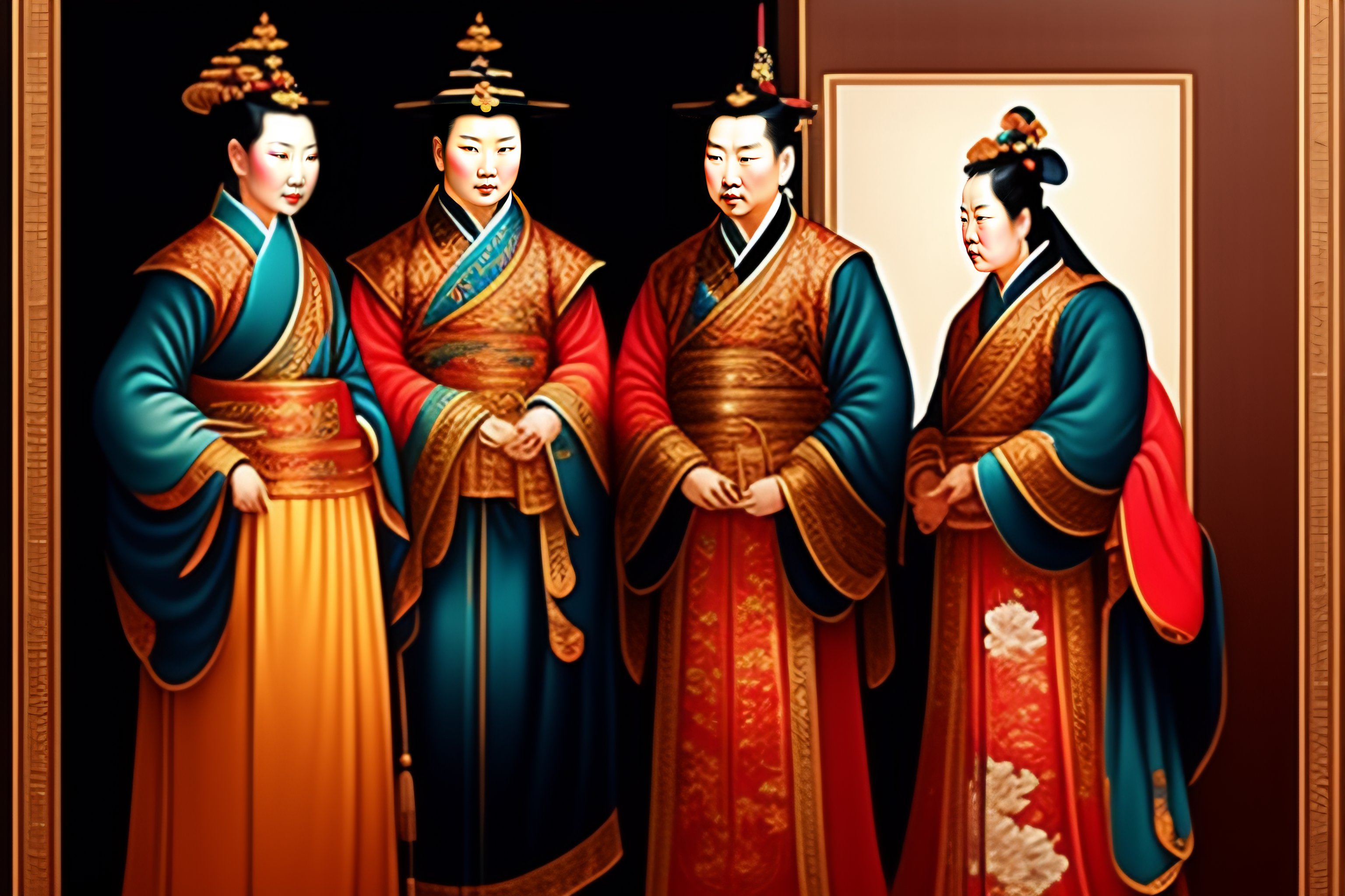 A beautiful chinese painting depicting the emperors during the qing dinasty with "qing dinasty" written, digital art
