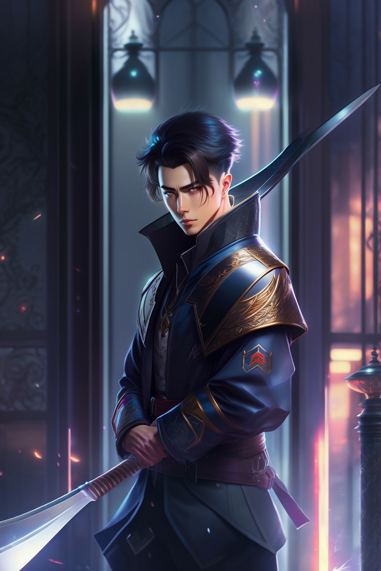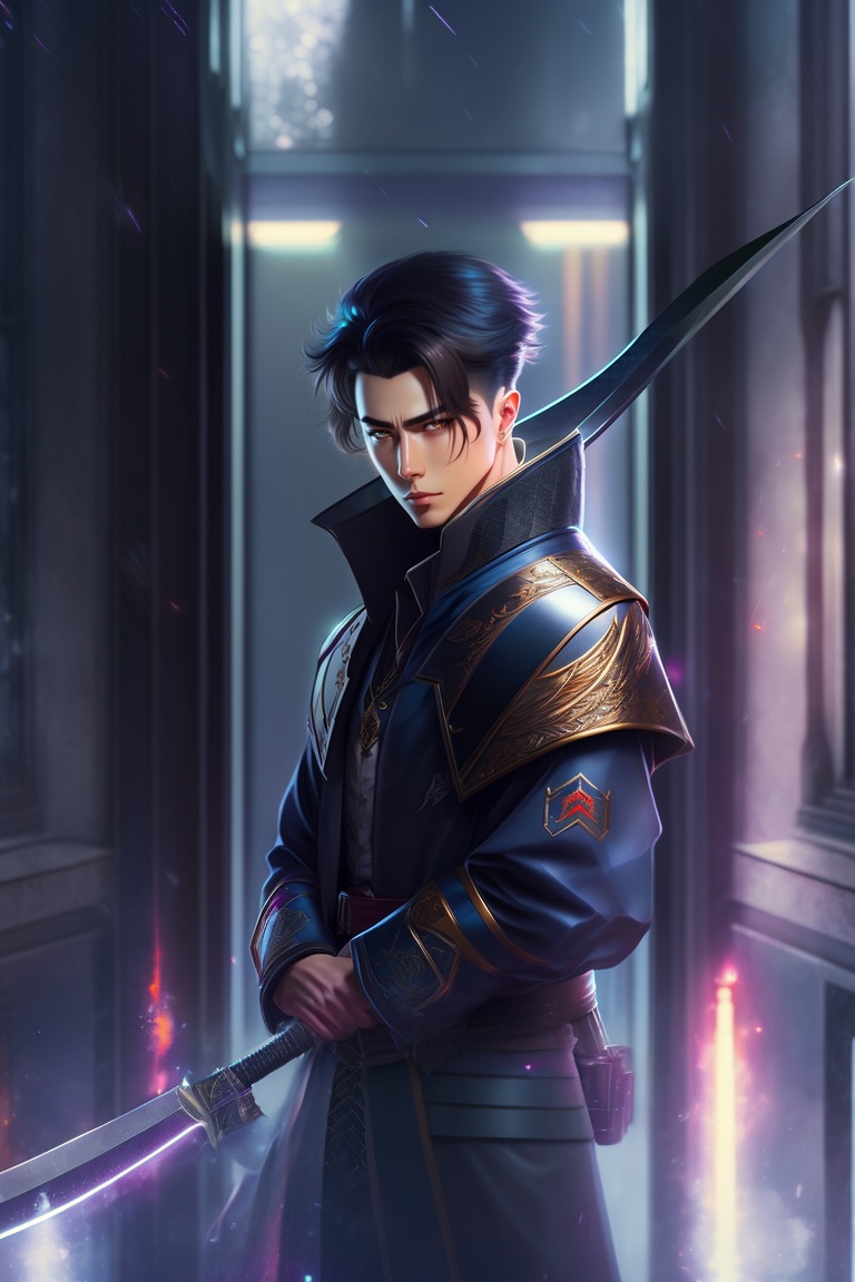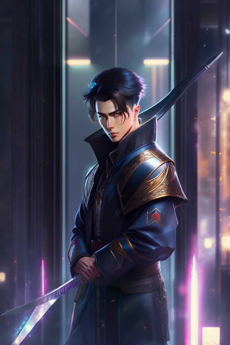 Eccentric levi ackerman holding a katana, mysterious man, octane 8k, aesthetic cyberpunk, katana, beautiful reflections anime style
