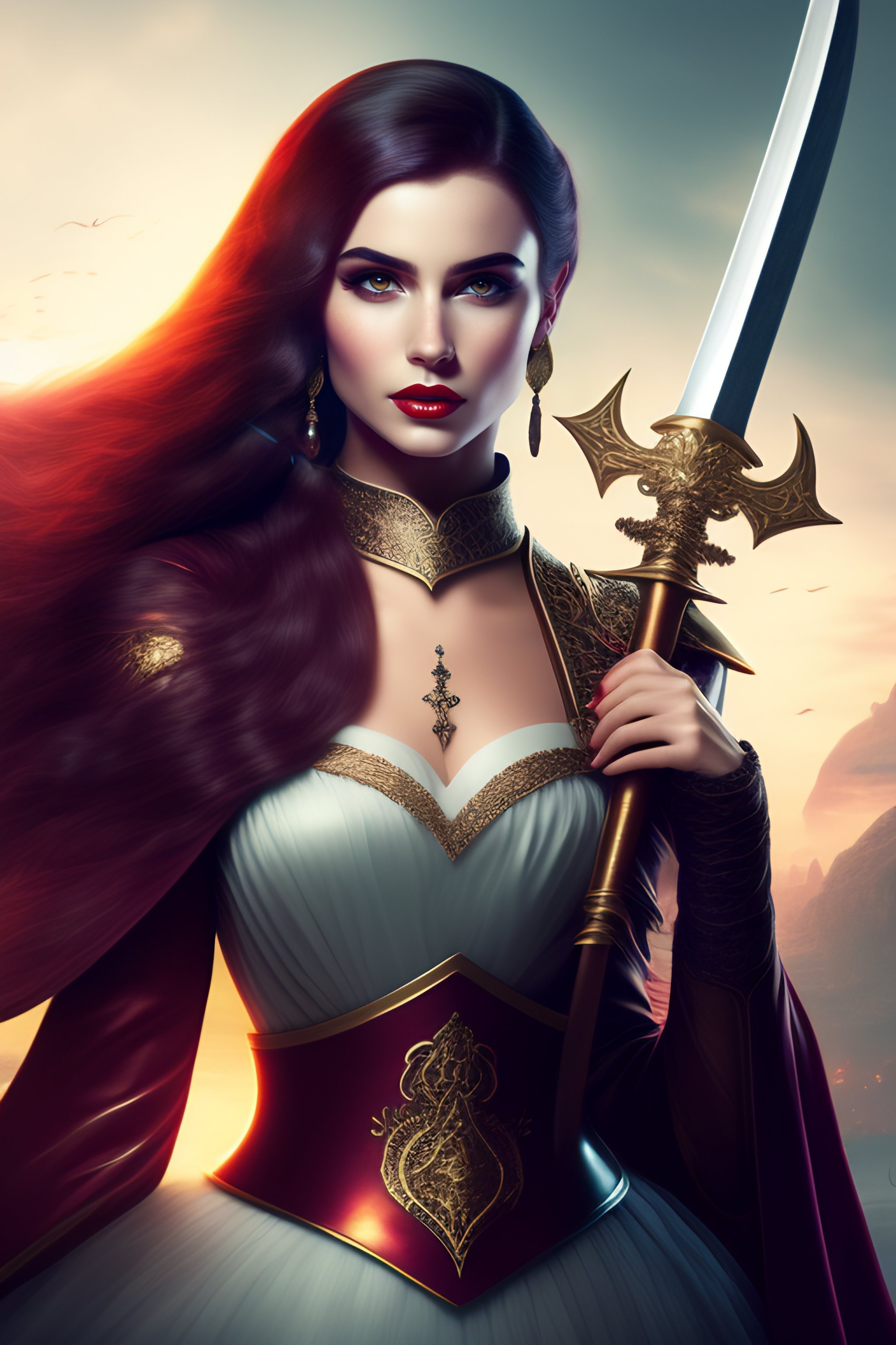 holding a long sword with both hands