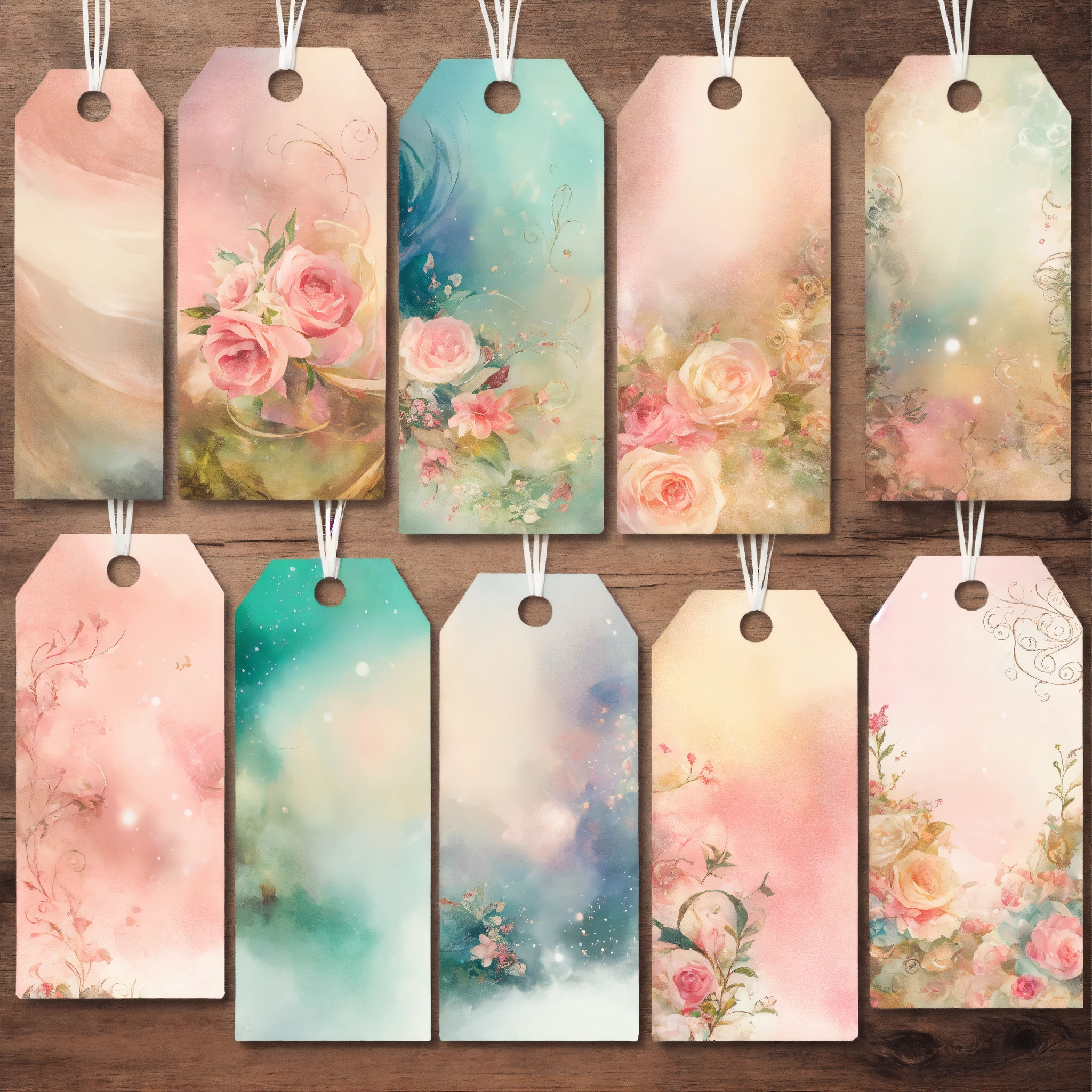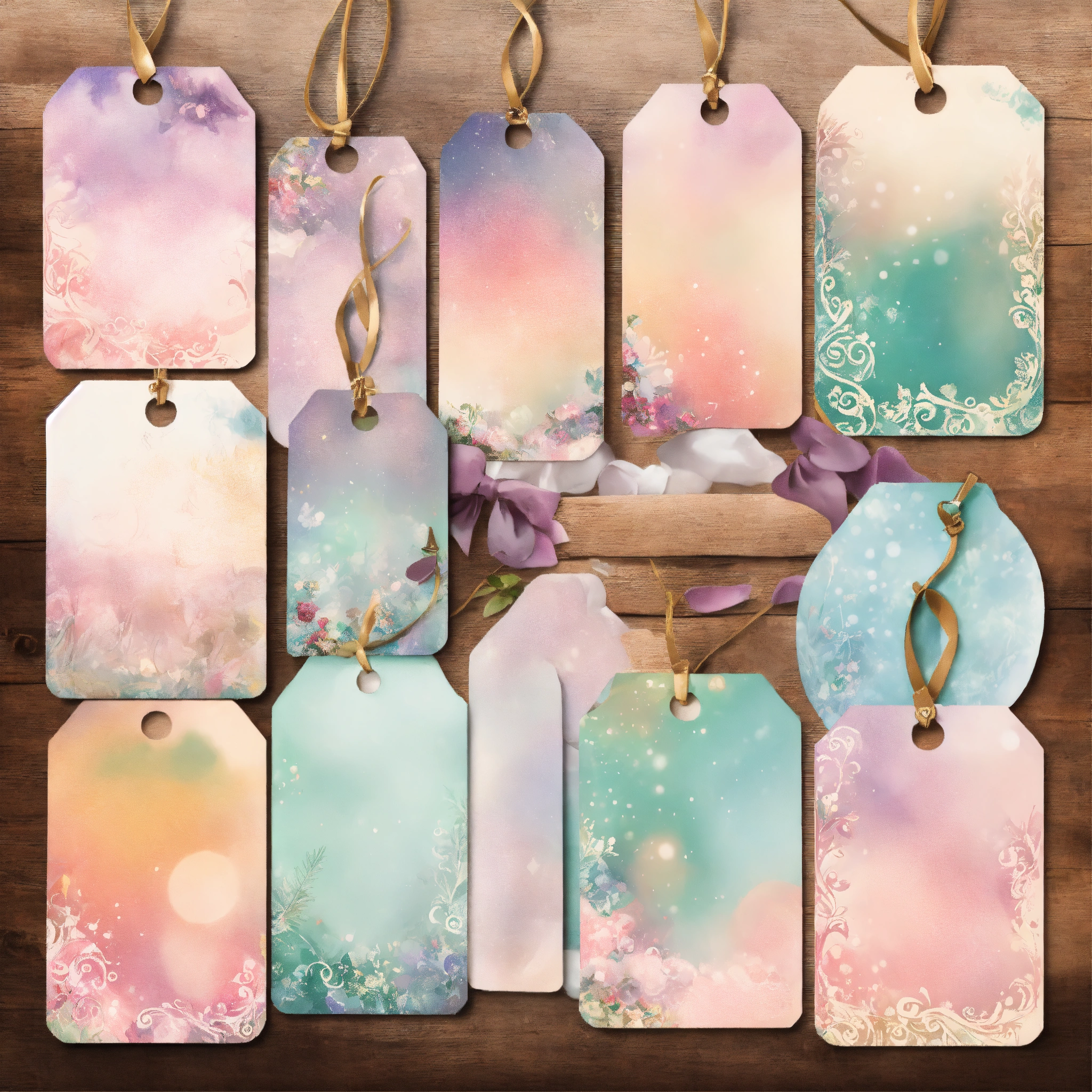 Shabby chic dreamy mist pastel junk journals christmas giftag tags gift tag to print on paper swirling magical fairytale abstract art style