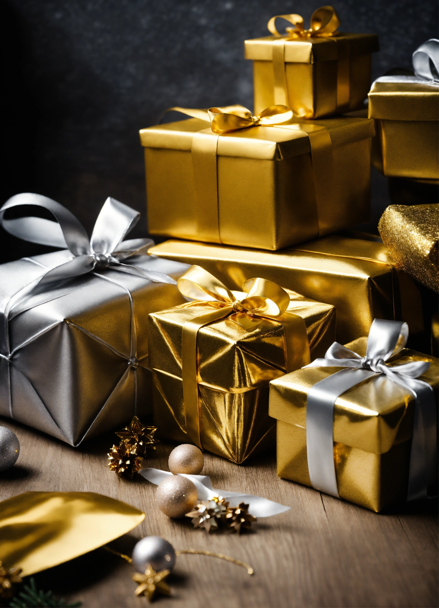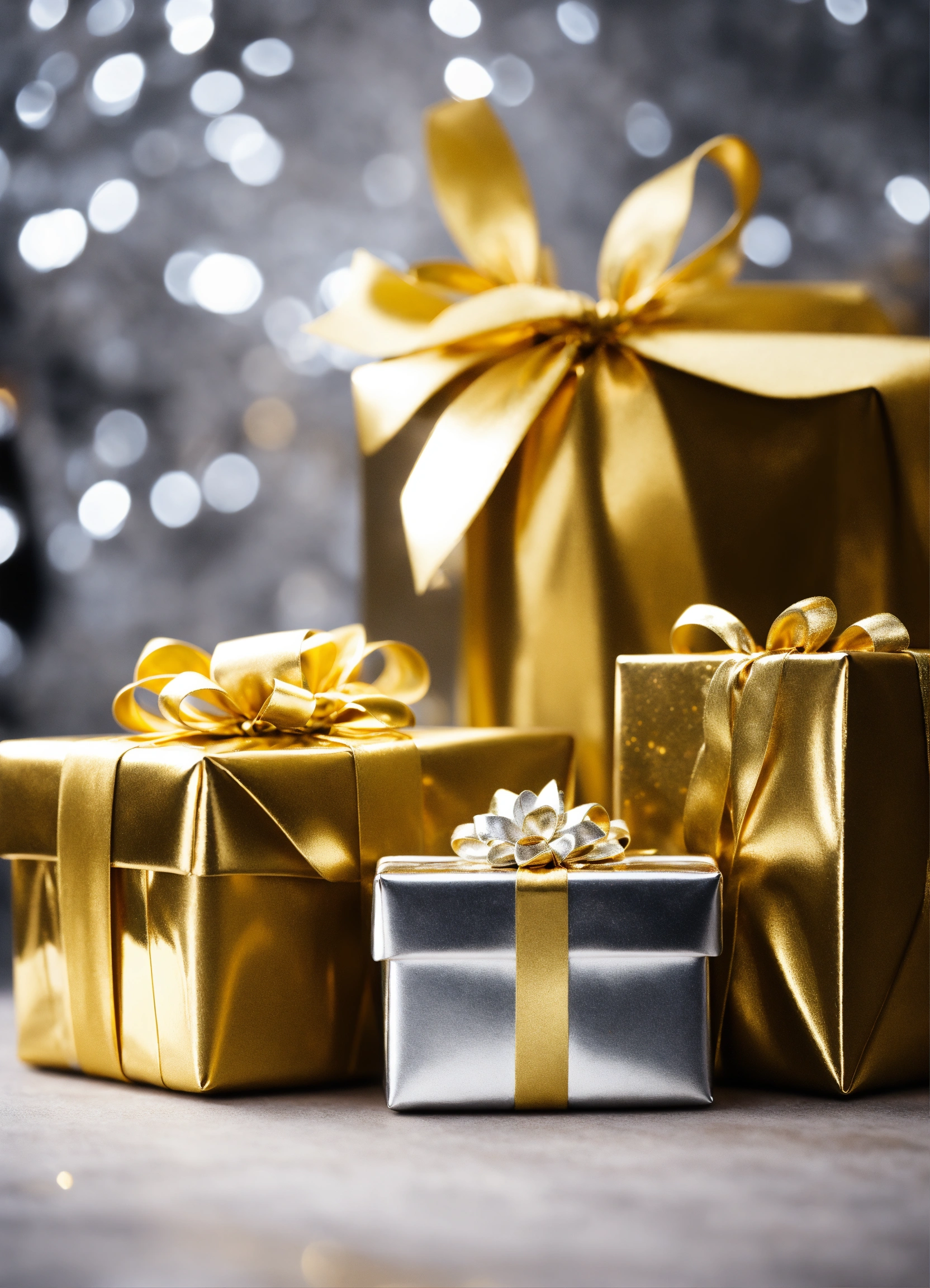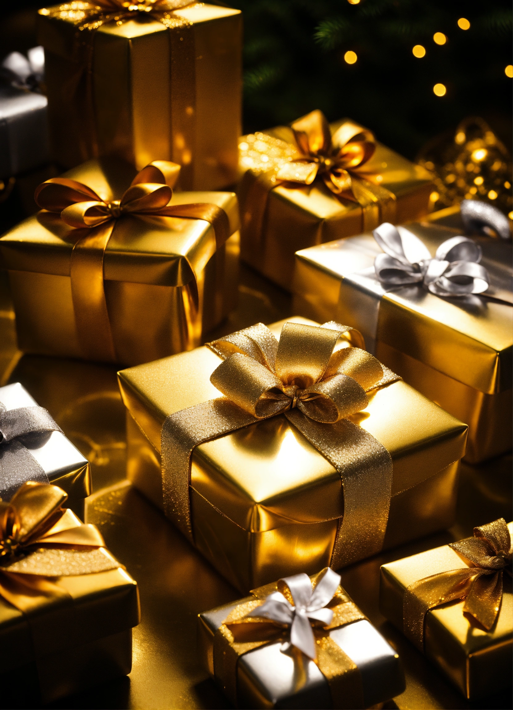 Christmas presents in gold and silver