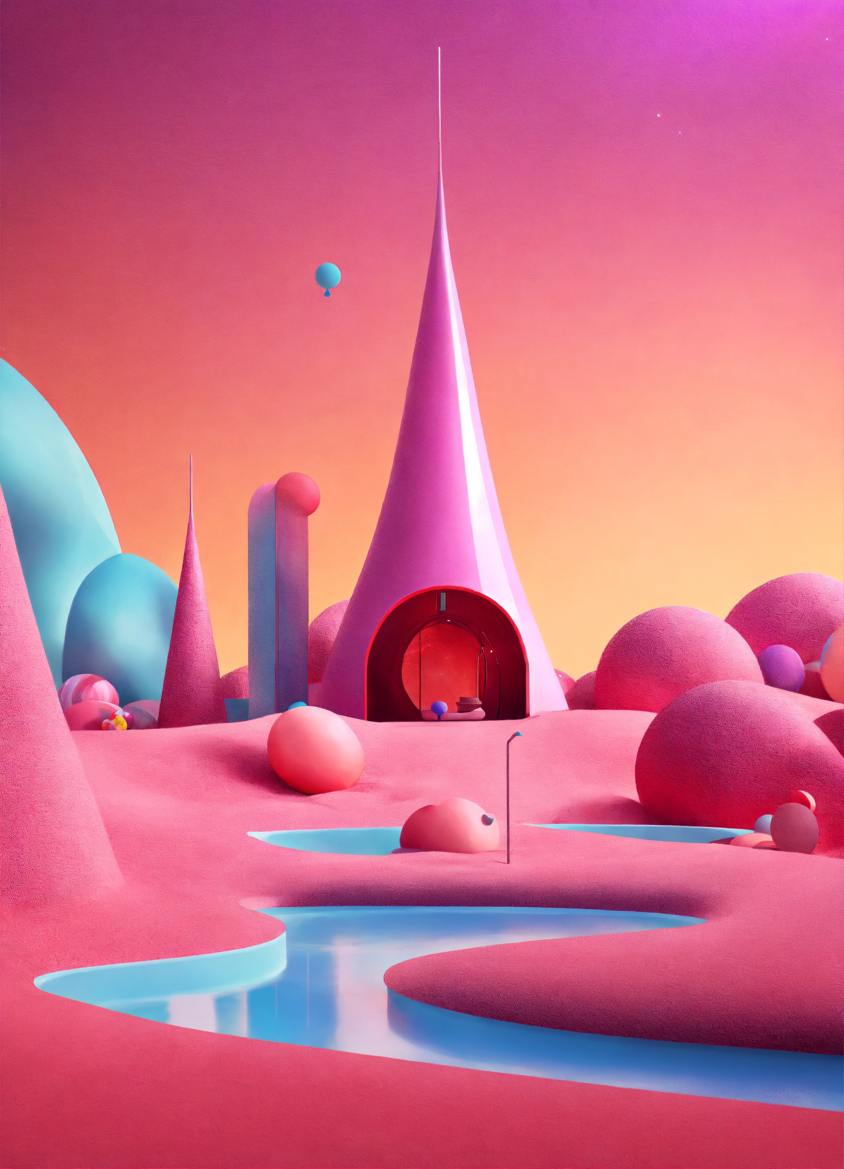 Candy land meets netflix sandman desire realm hd, minimalist and sleek conceptual environment, surrealism