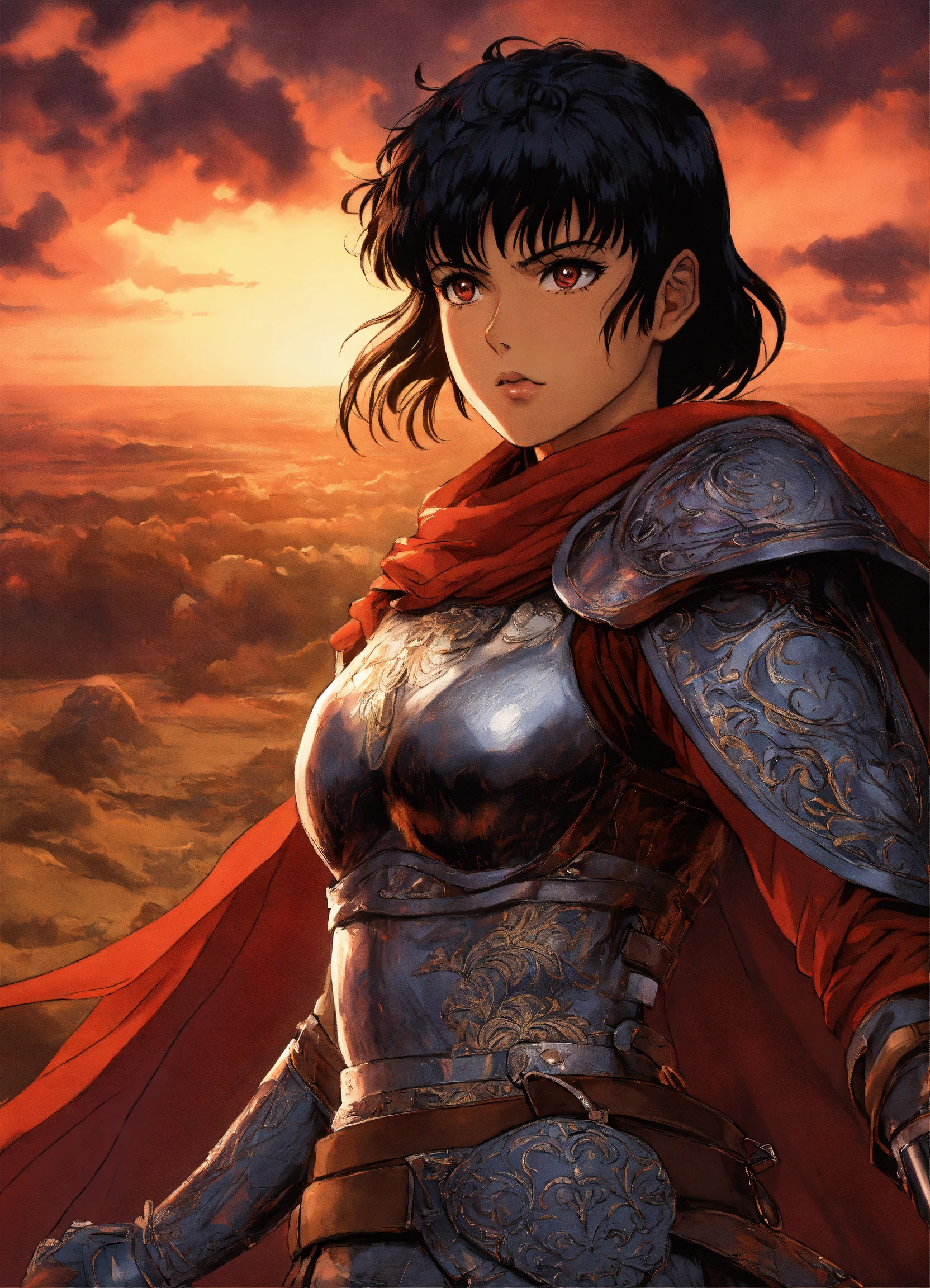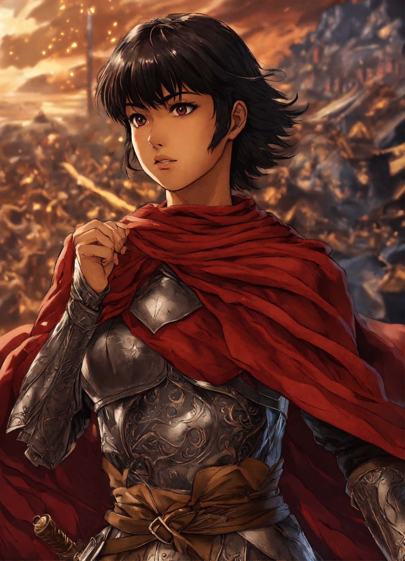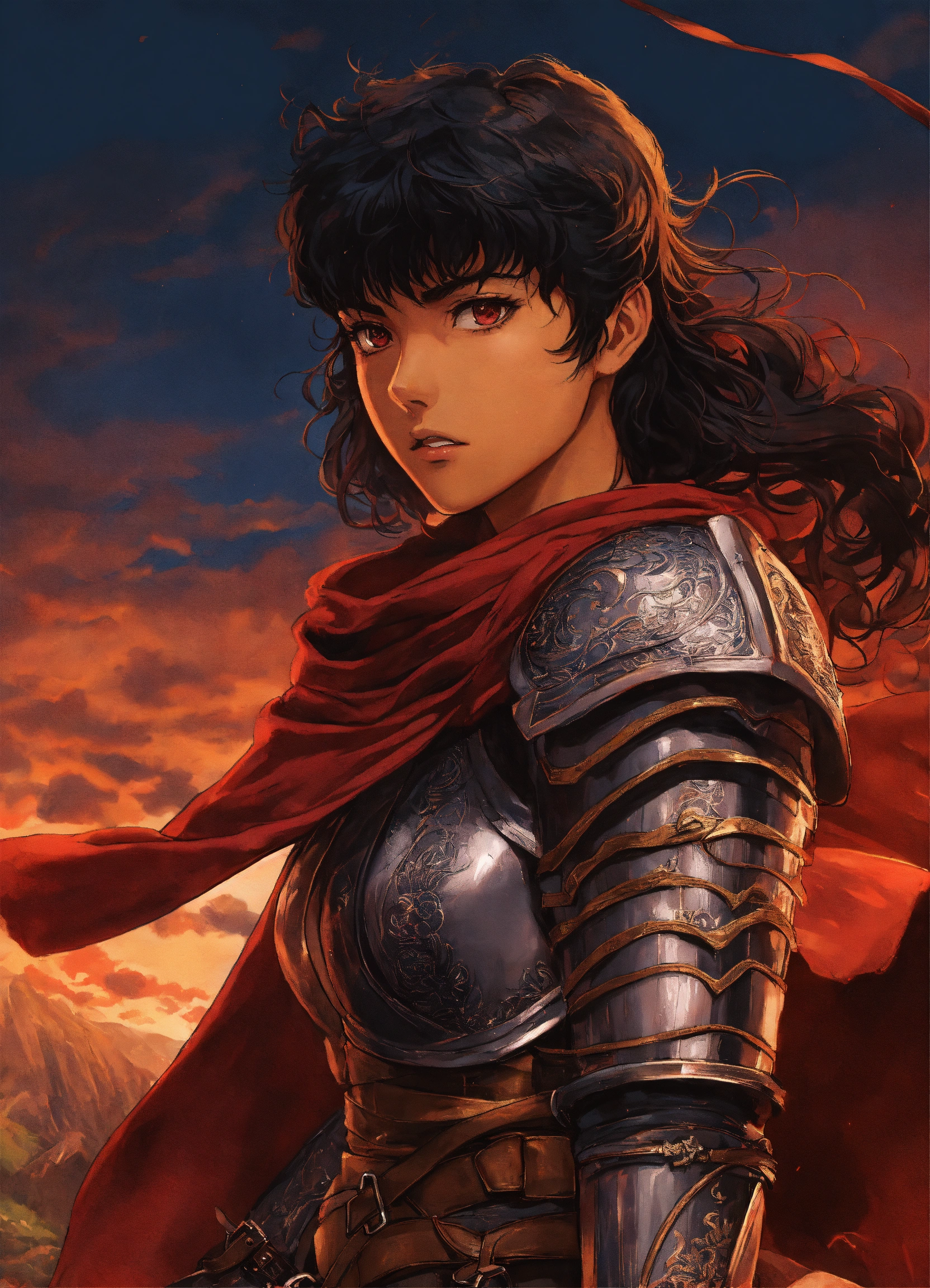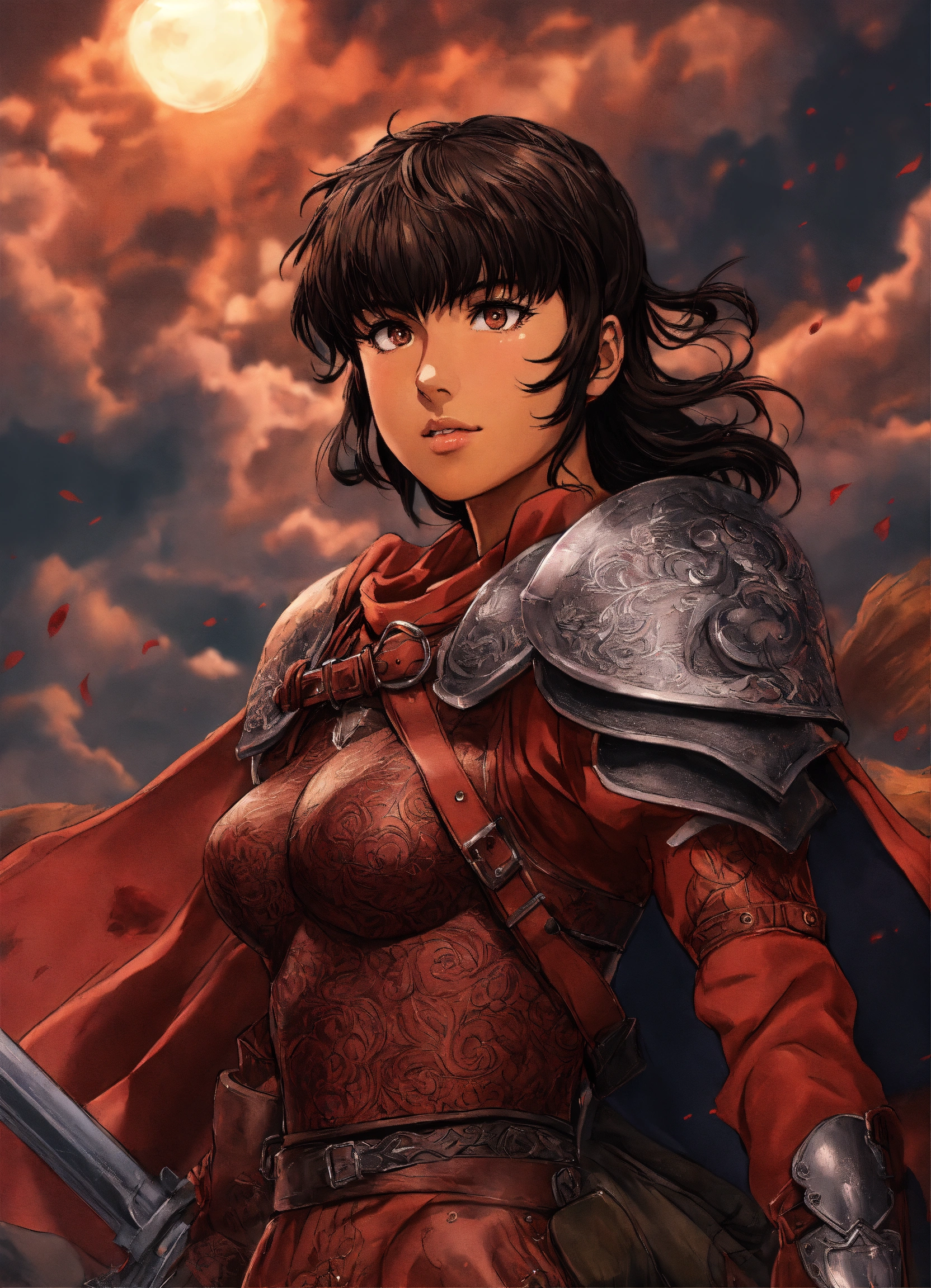 Anime art of casca from berserk, brown skin, fighting pose, 8k, stunning intricate details, by kentaro miura