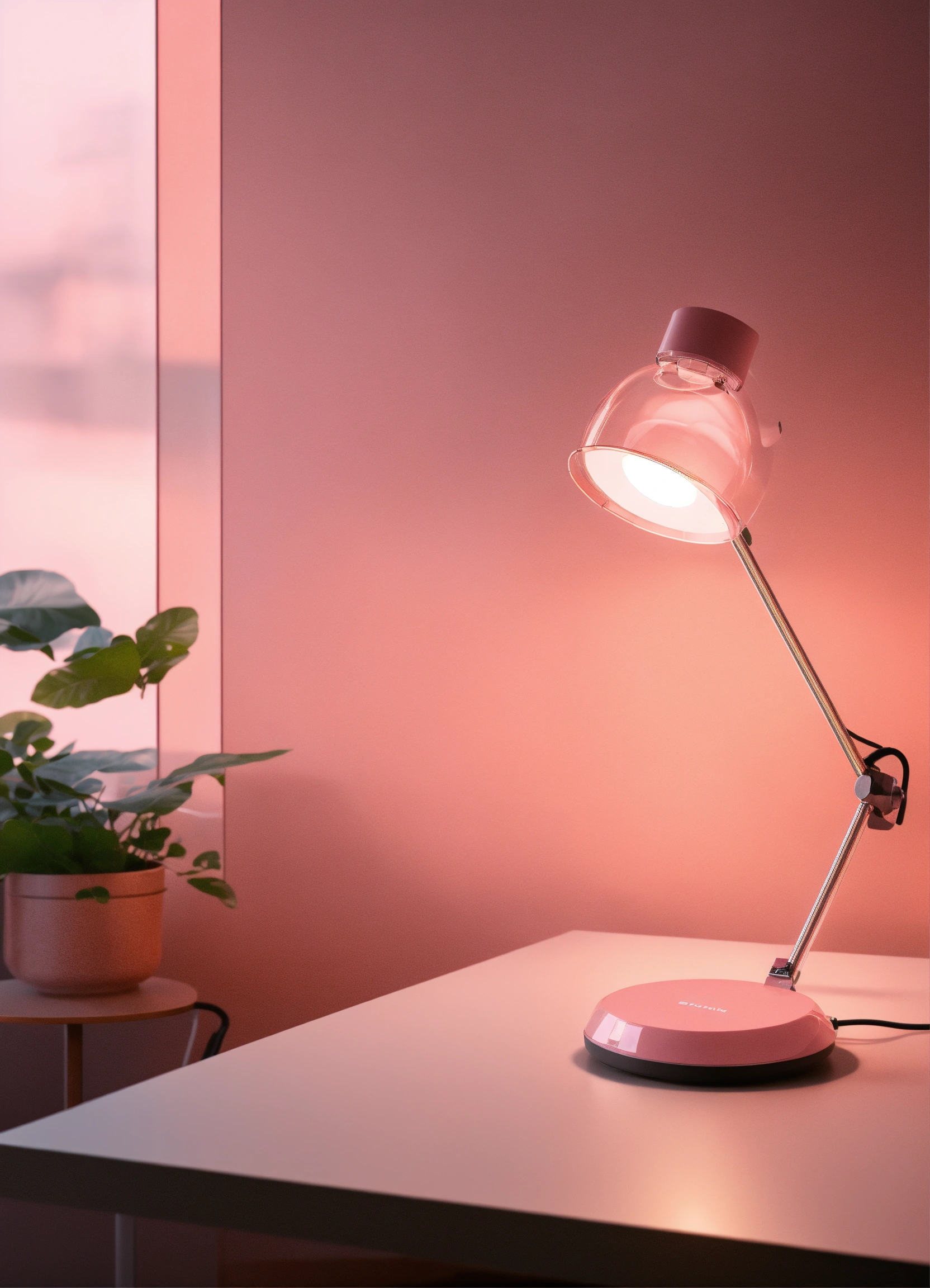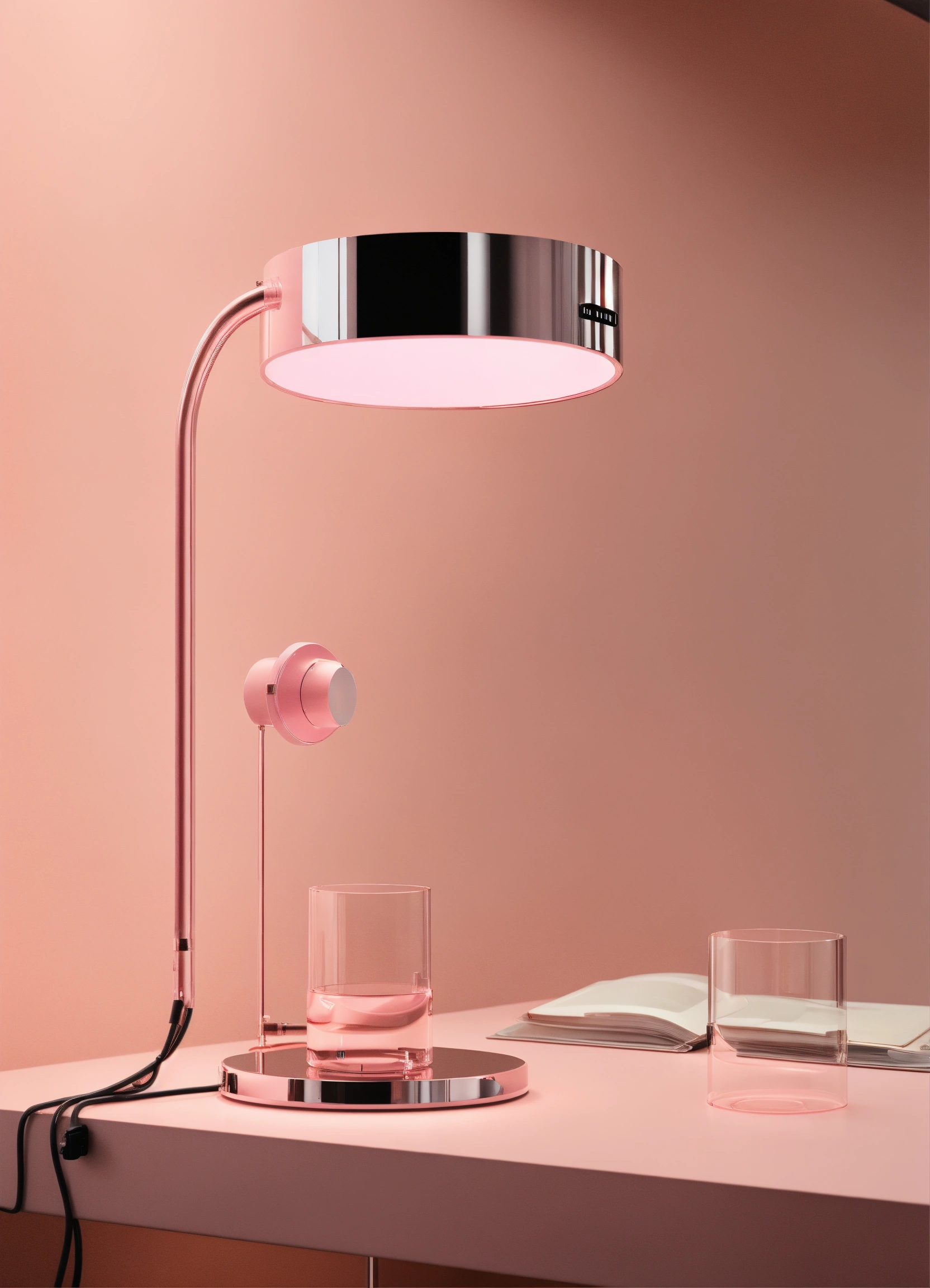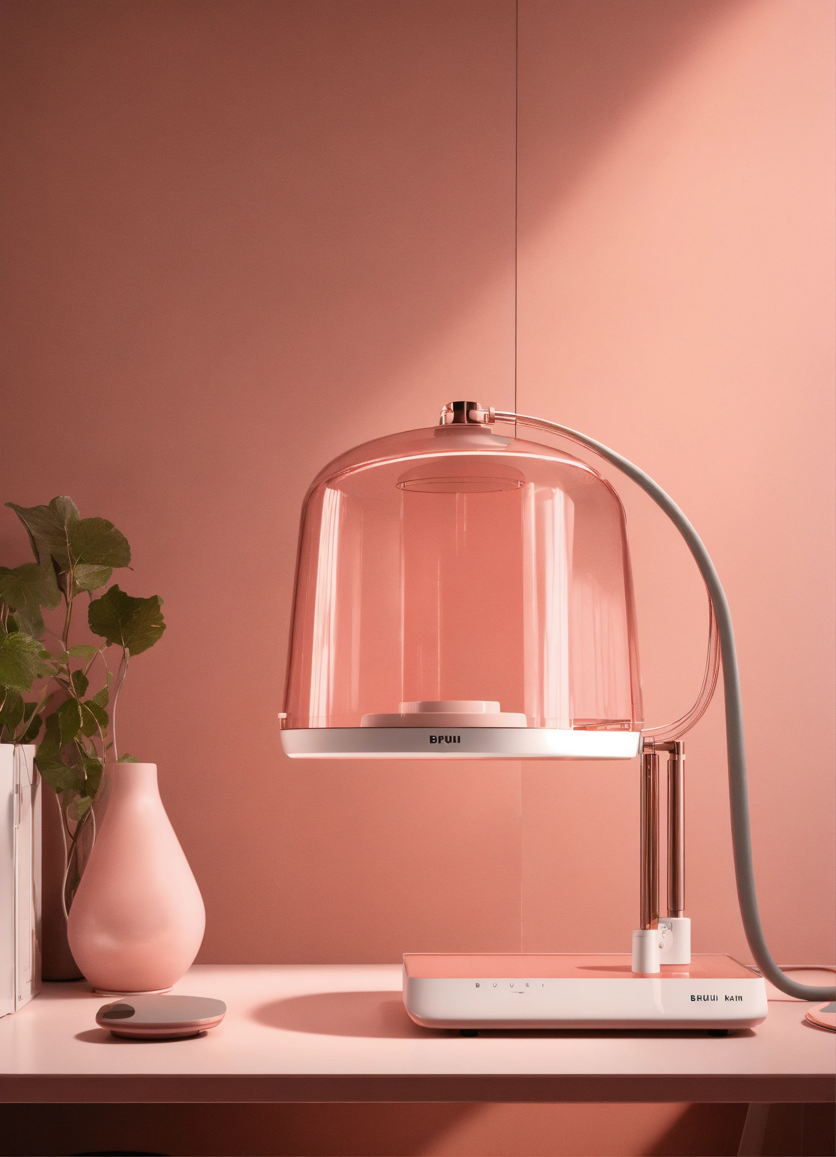 A stunning, minimalist, thin lightweight light pink translucent glass vr glass header designed by braun, dieter rams. product ad retro. industrial design inspiration. unreal engine render, natural lighting, on desk, beautiful shot