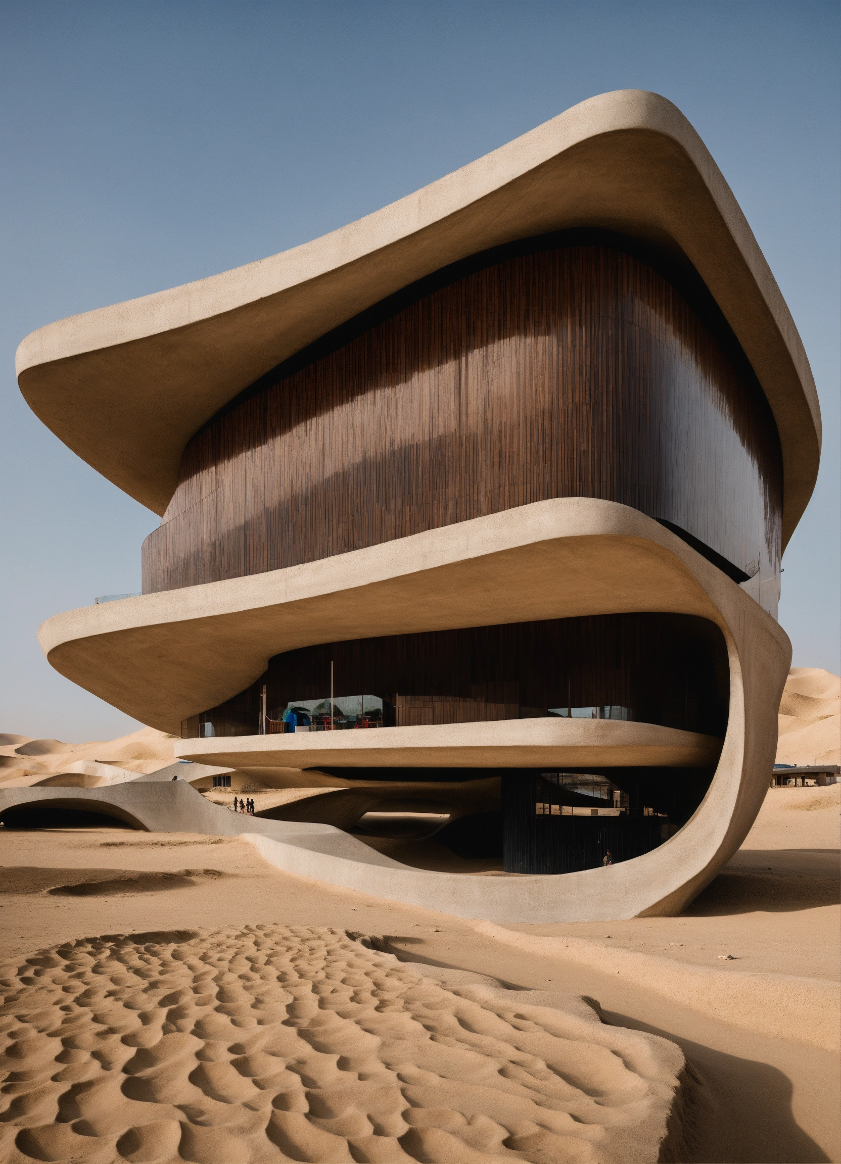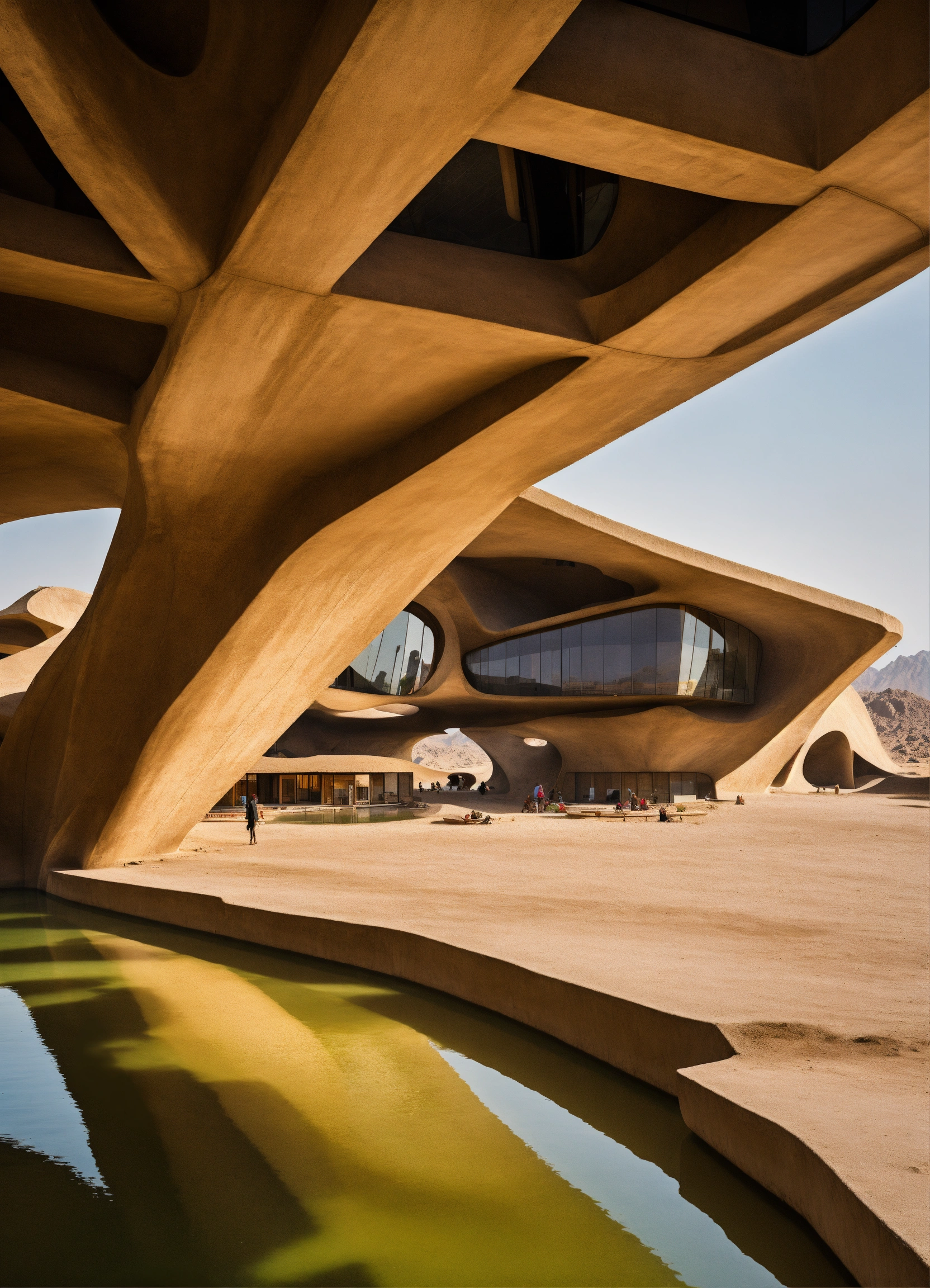 Zaha hadid surrealist concrete floating market in the desert