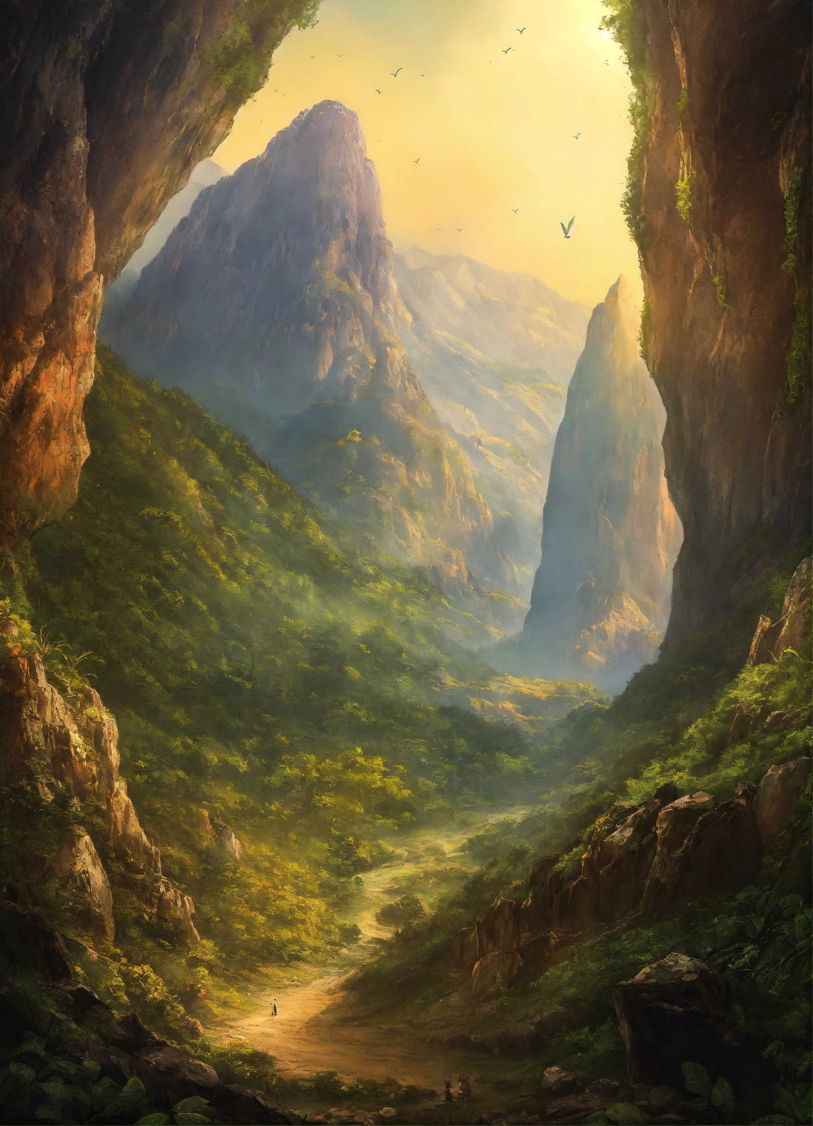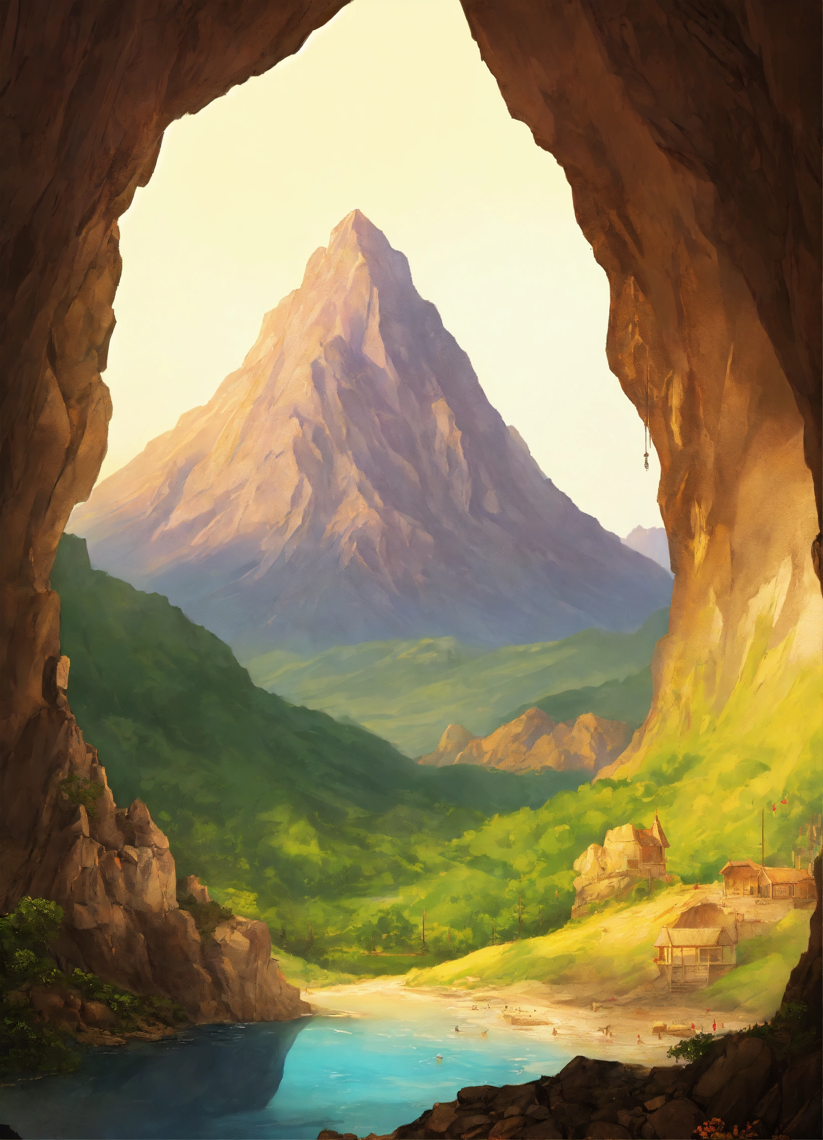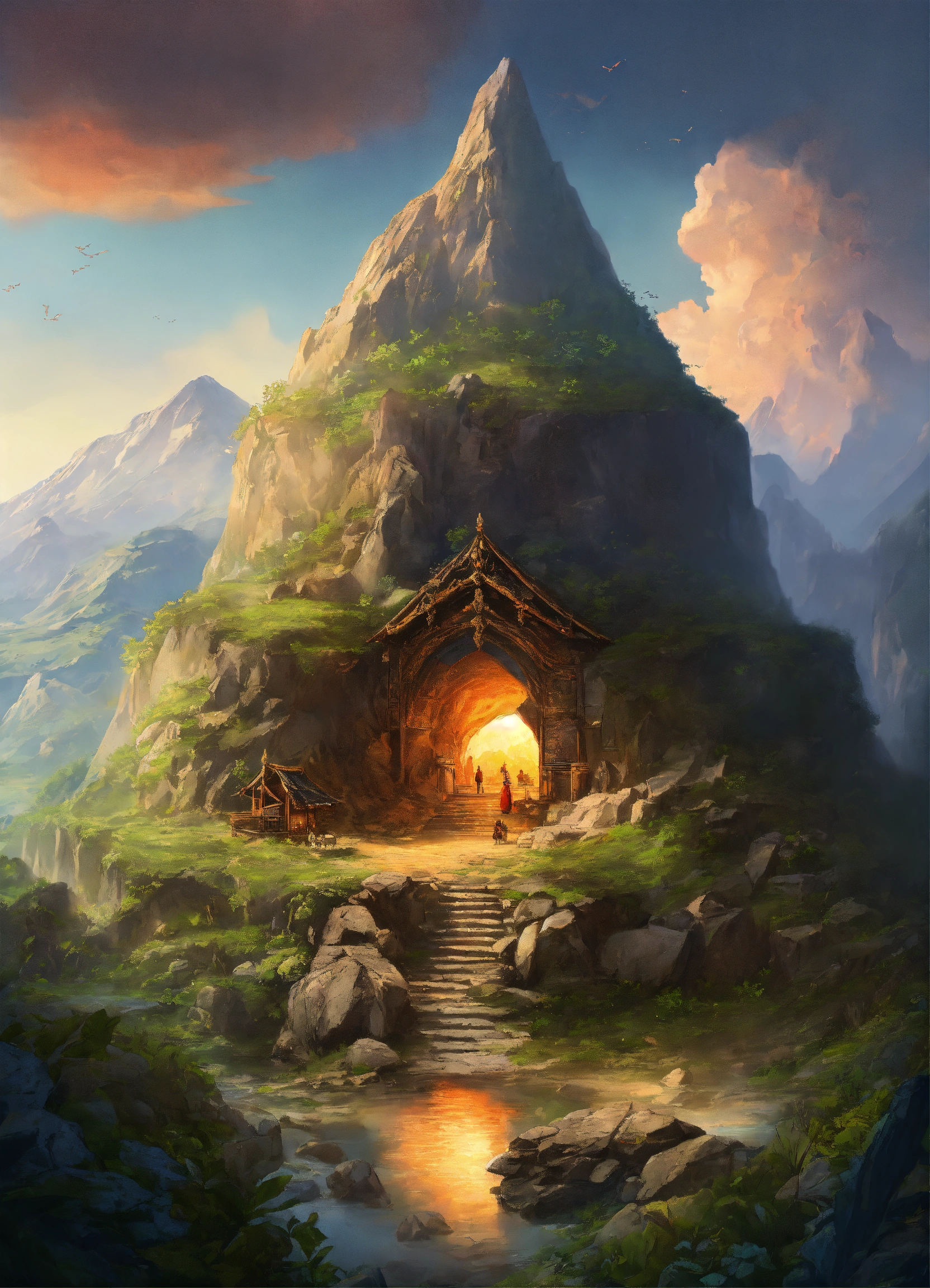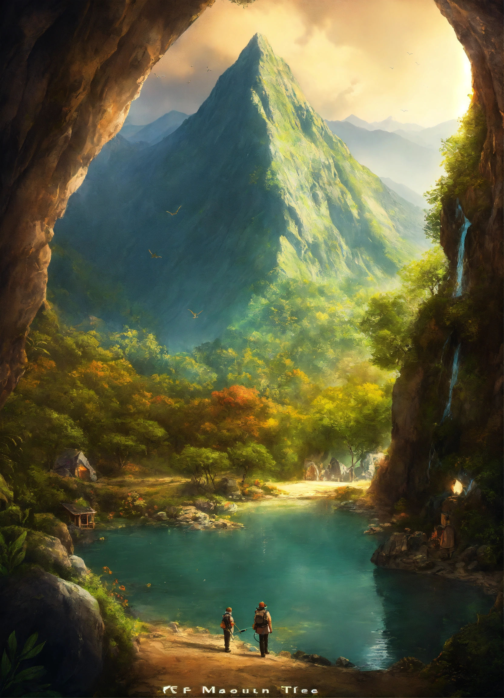 Captivating cover design view background to the upper right, we see one mountain, with a cave near the top. the cave is very detailed