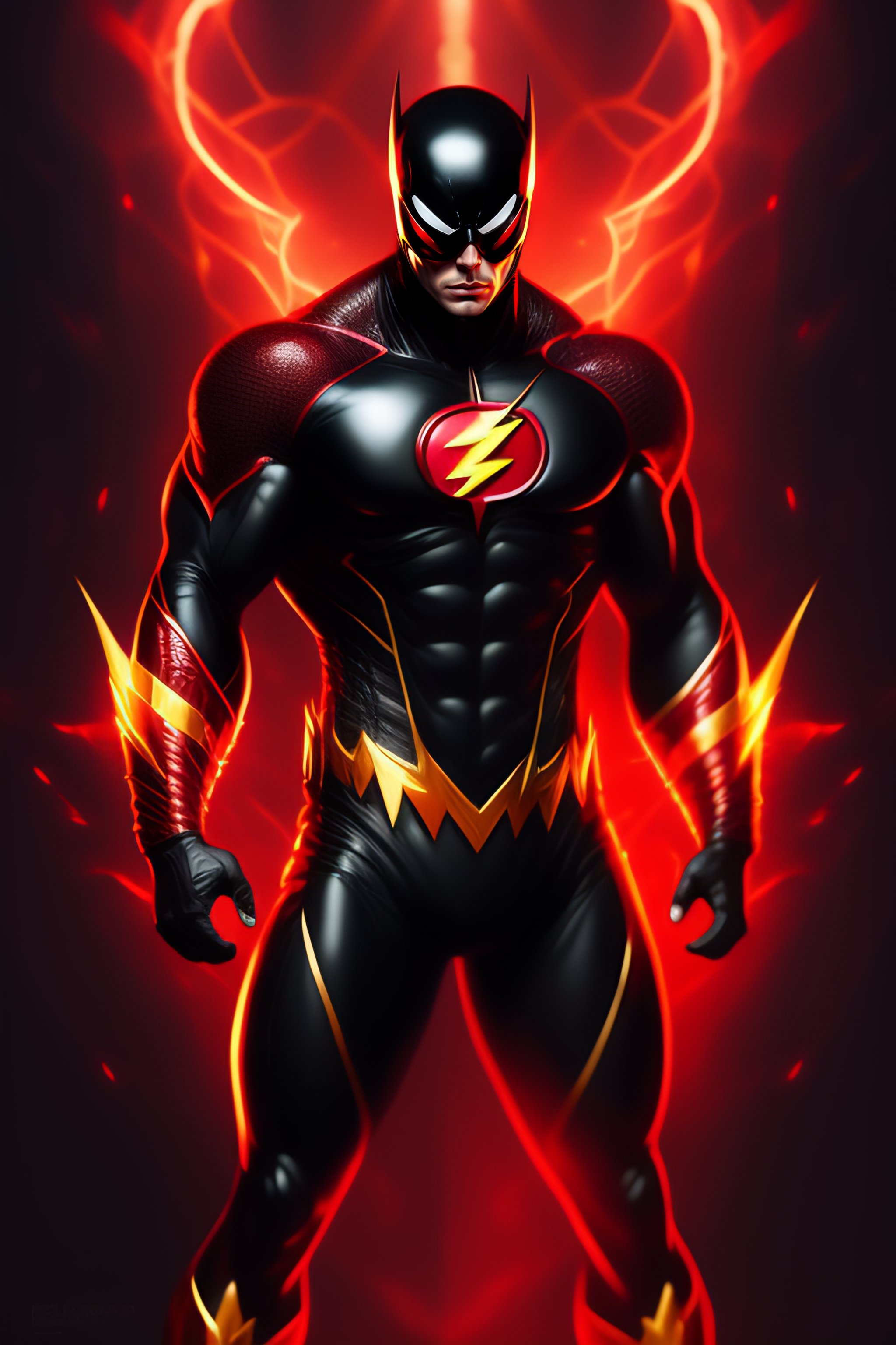 Full body portrait of venom as the flash, black and red, dynamic lighting, cinematic, ultra detailed, trending on art station, stunning visuals, creative, fantasy concept art