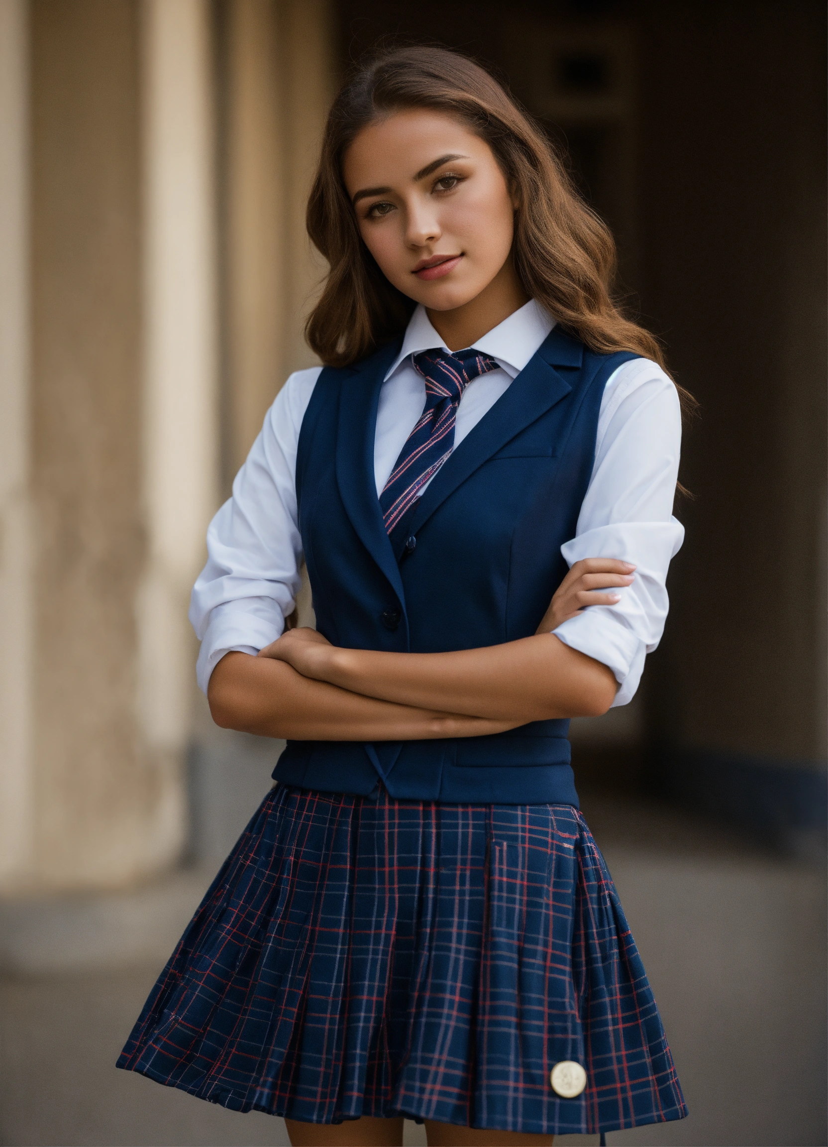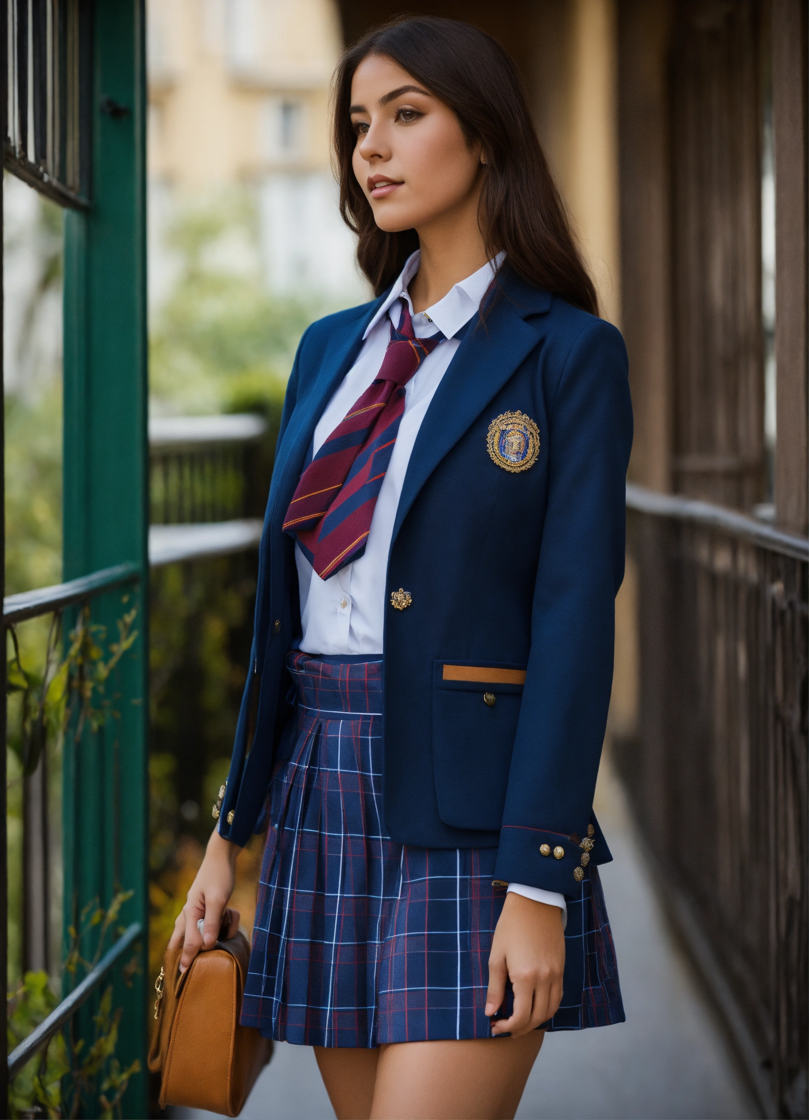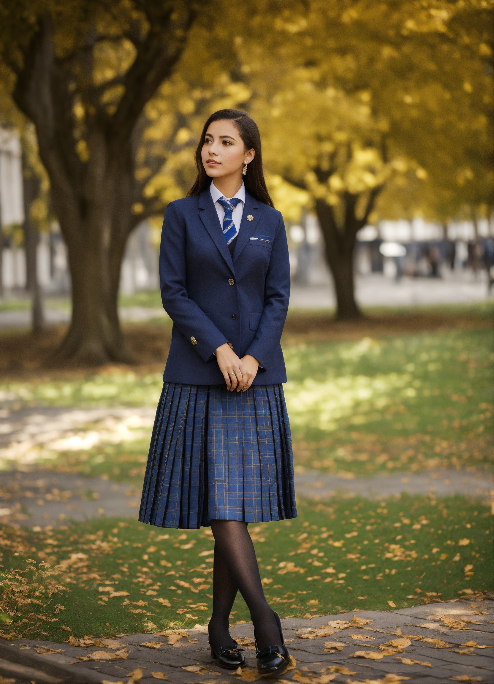 Uniforme de estudiante mujer falda a cuadros azul