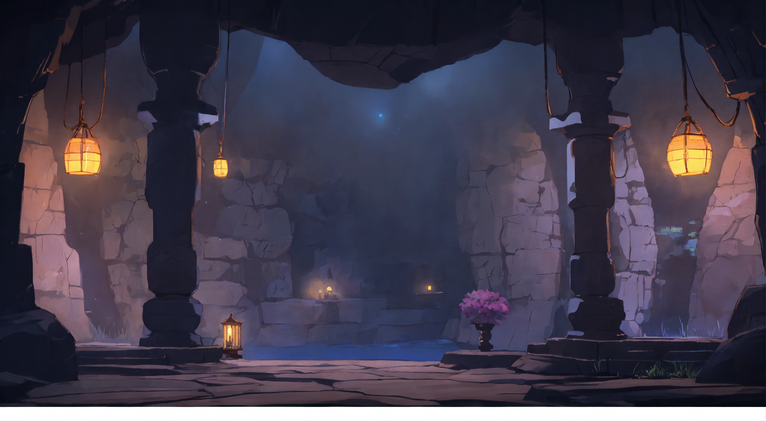A similar image, cave type, wall add stone, dramatic lighting, illustration style, comics style, ghibli style, 8k
