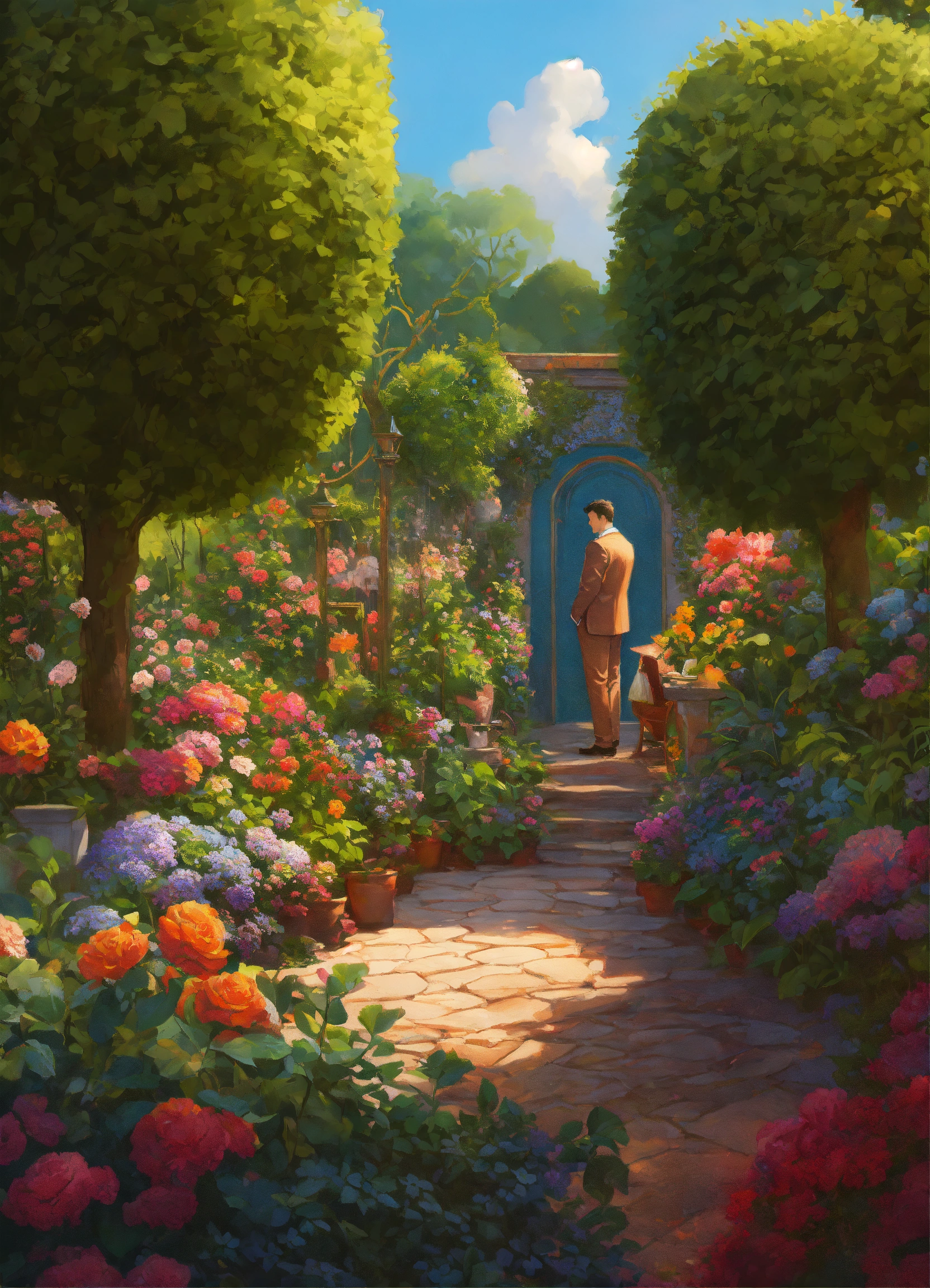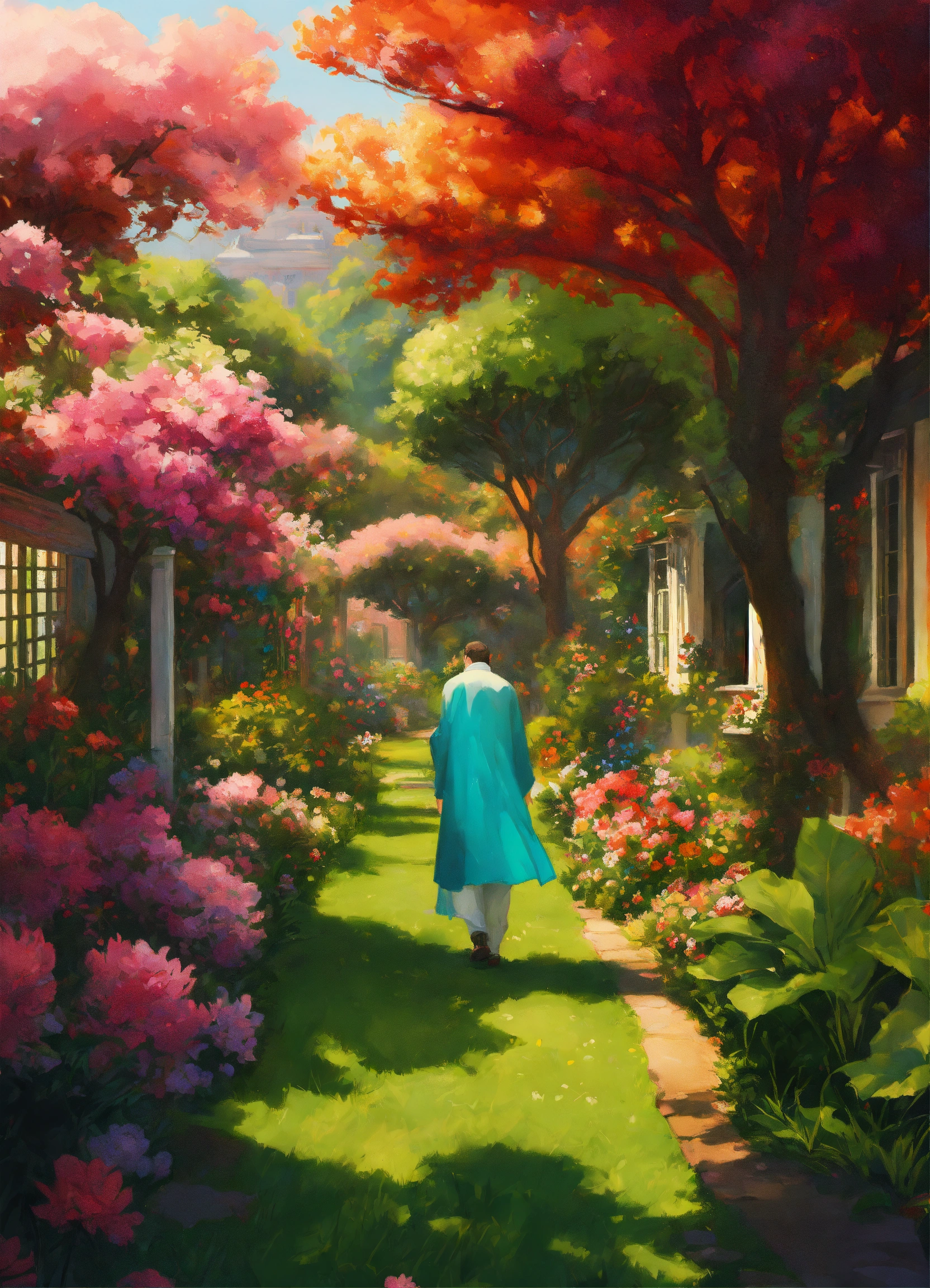 Hyper detailed ultra sharp, vibrant, intricate, digital painting, concept art, smooth, sharp focus, illustration, handsome, kinds in the garden