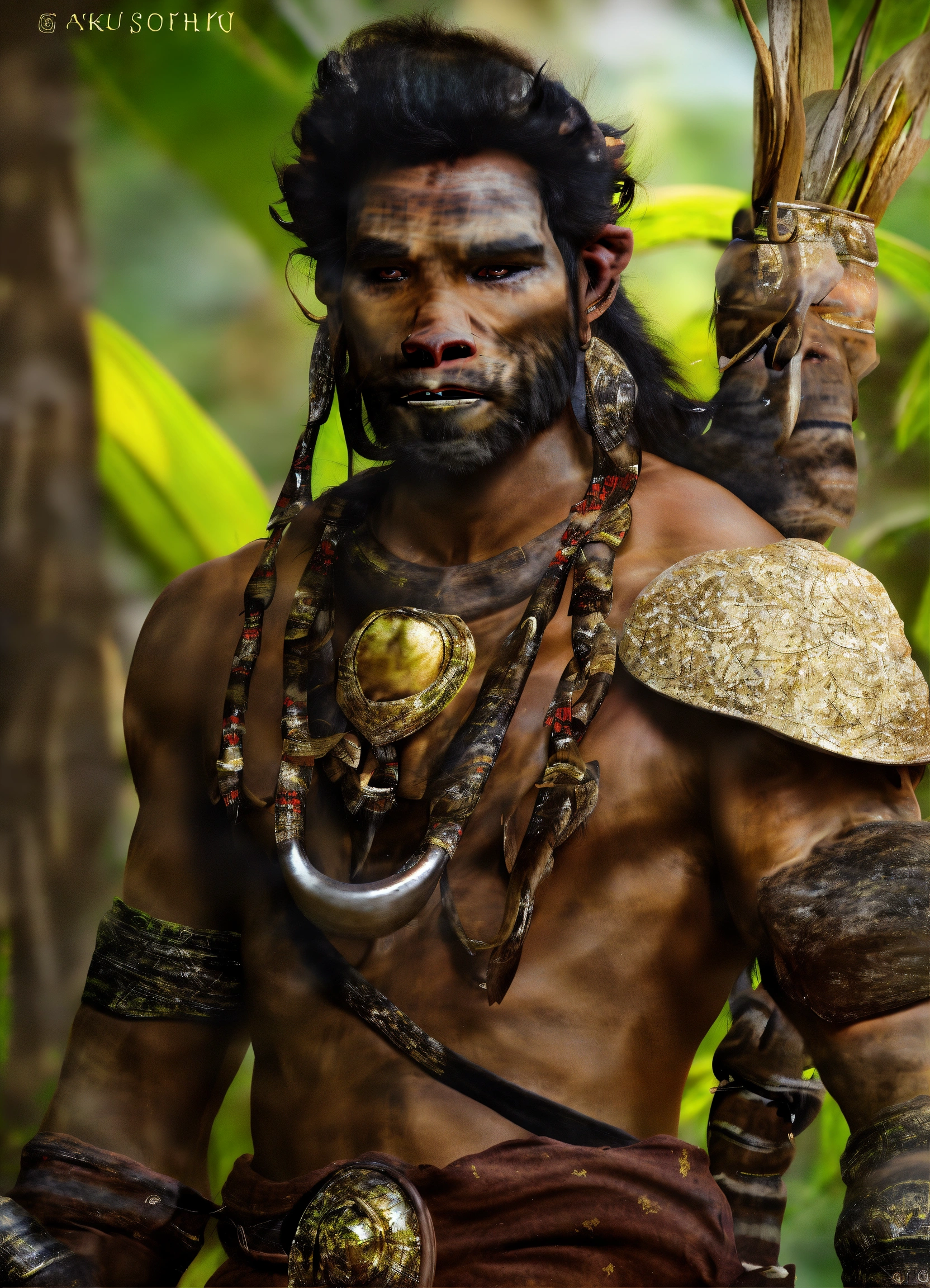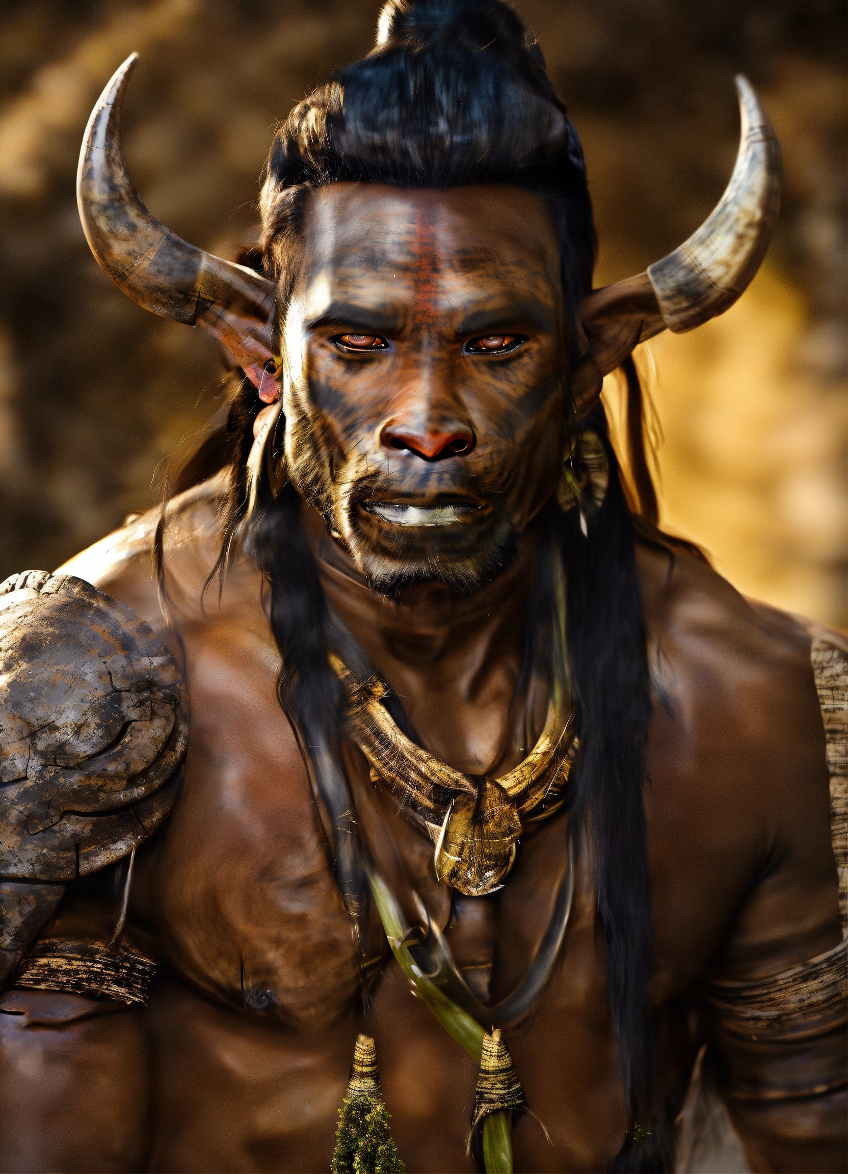 Handsome thailandese dark skinned half orc with ((((tusks))))
