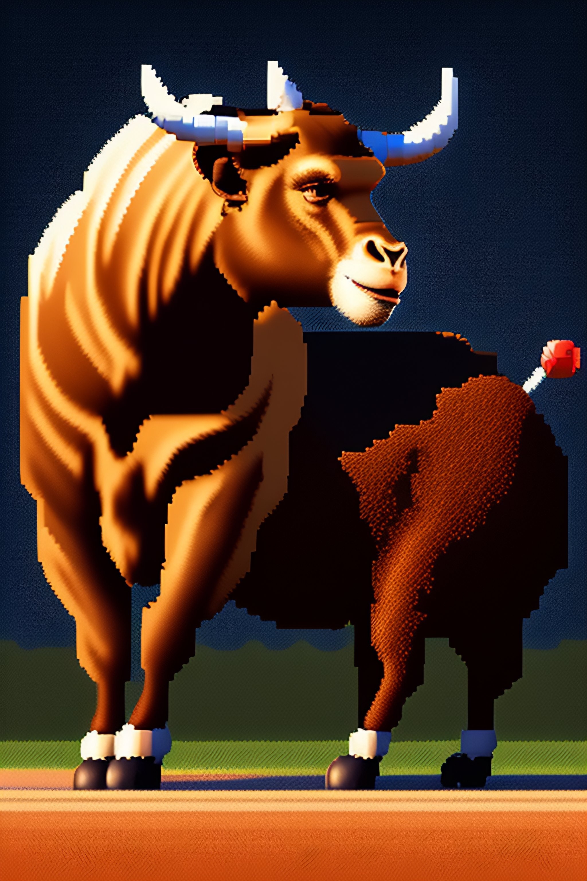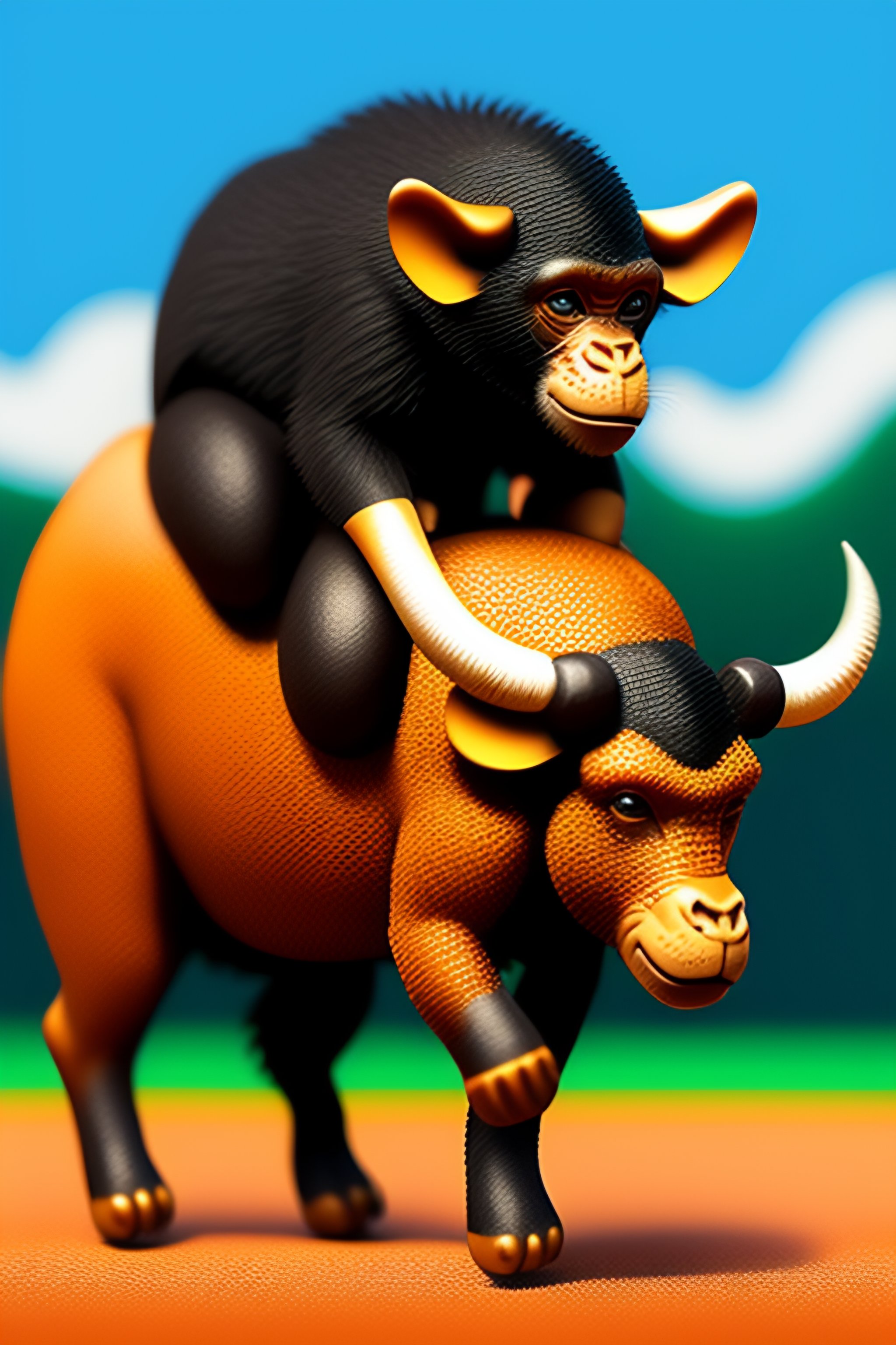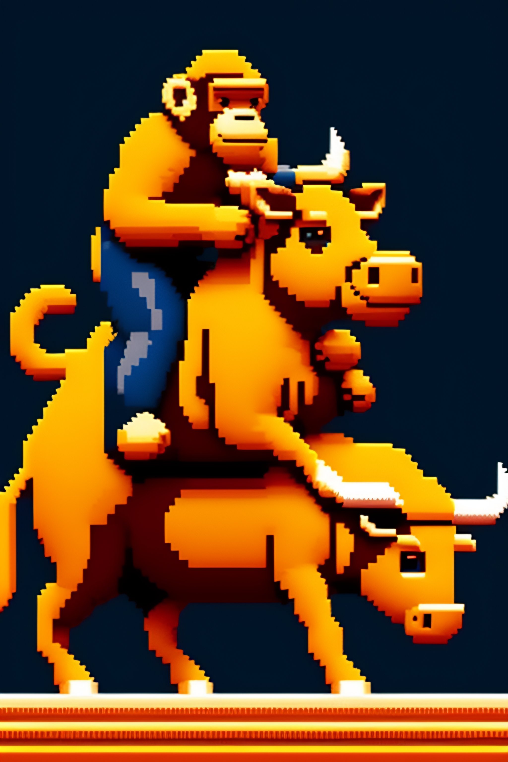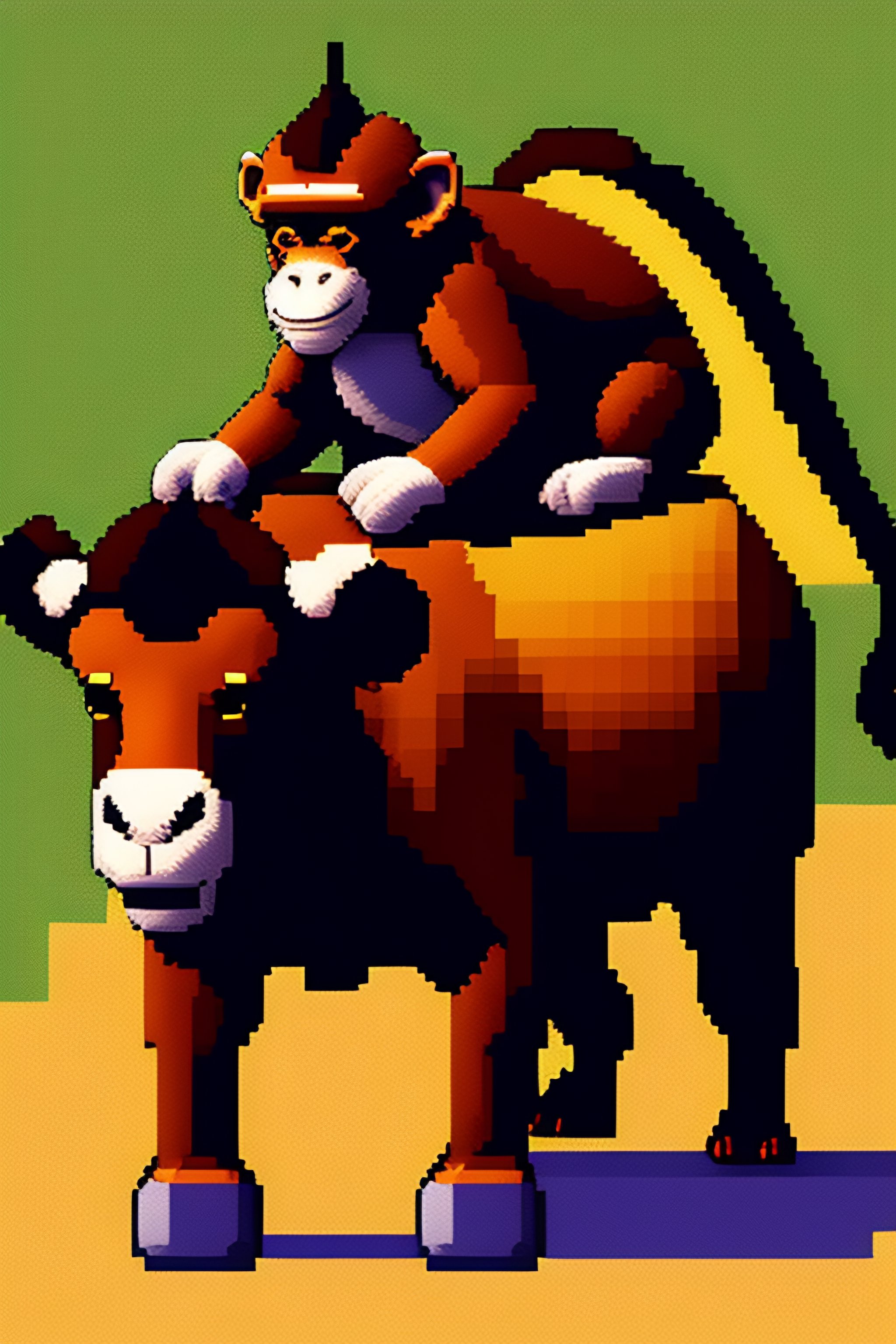 Pixel art of a monkey riding a bull