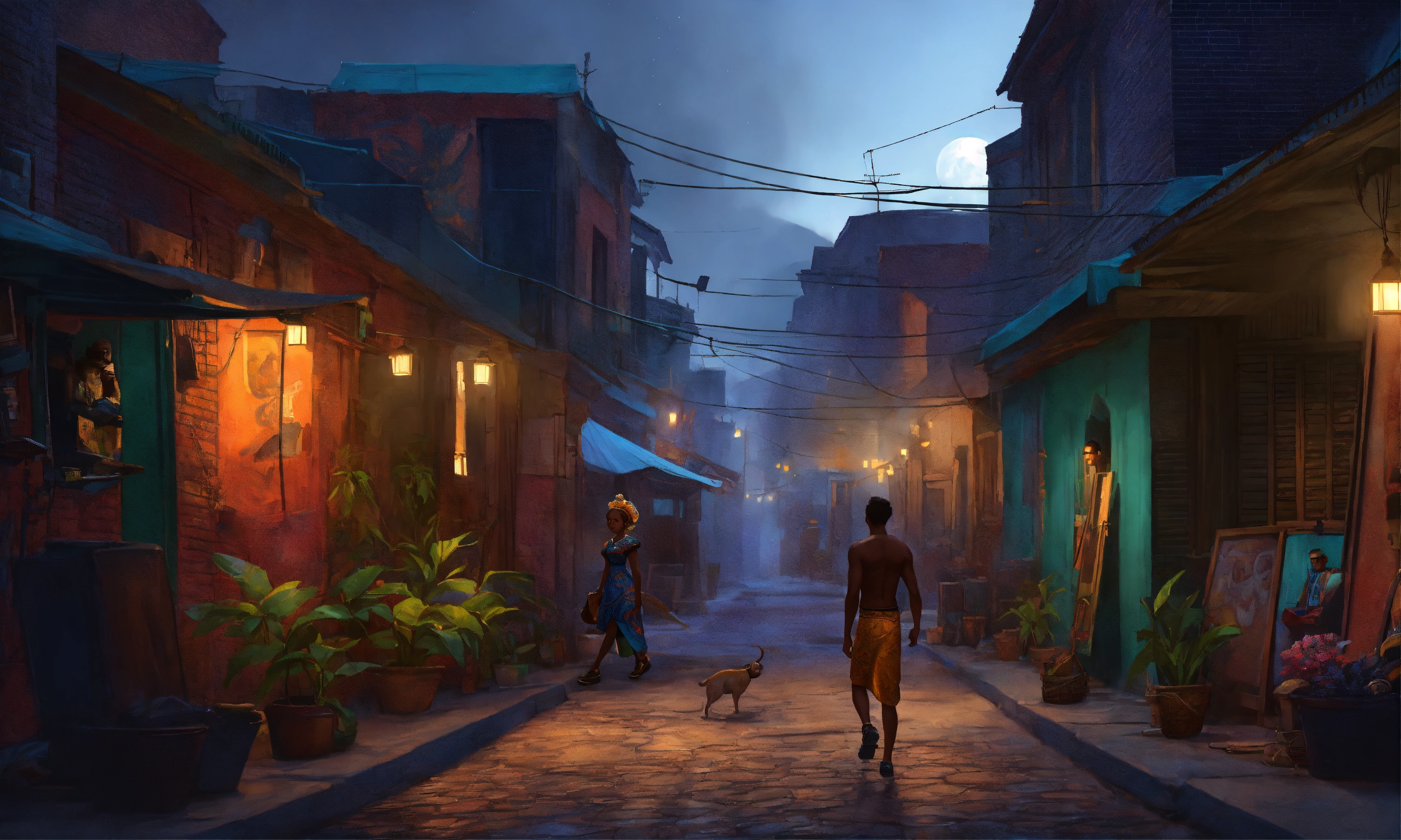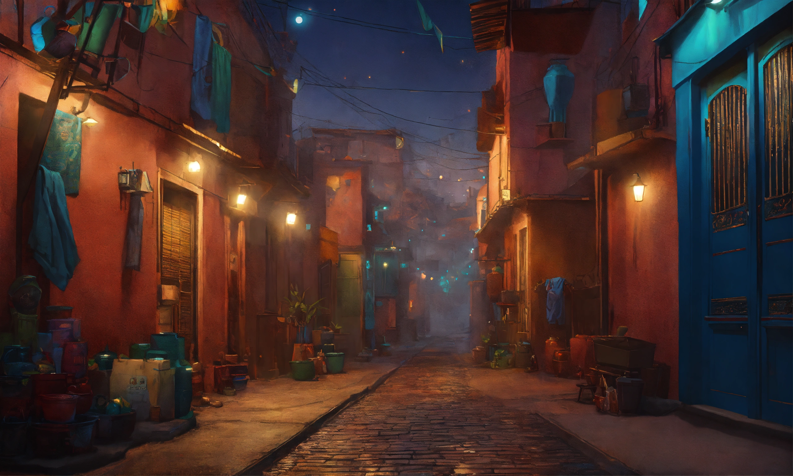 African village dark empty alley ways, at nights, highly detailed, smooth, pixar style by tristan eaton stanley artgerm and tom bagshaw, 8k