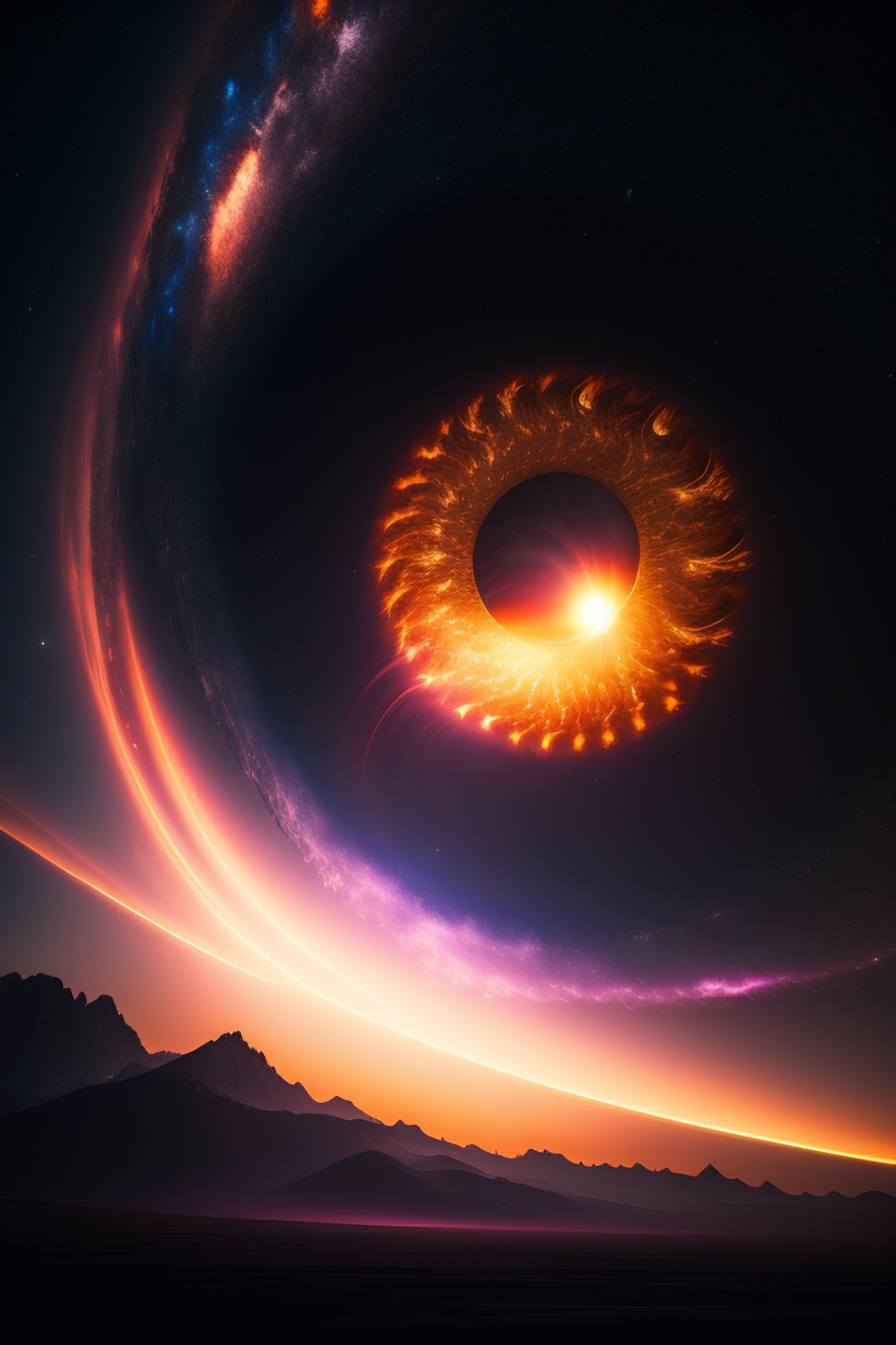 Impressive ominous cinematic fine photo of a spiraling exploding sun across the starry night sky, lighting impressive masterpiece hyper ultra detailed intricate sharp focus, 8k, realistic illustration canon eos r 3 fujifilm x - t 3 0 sony alpha, artgerm colorful!!!, trending on artstation behance cgsociety, octane render nvidia raytracing demo