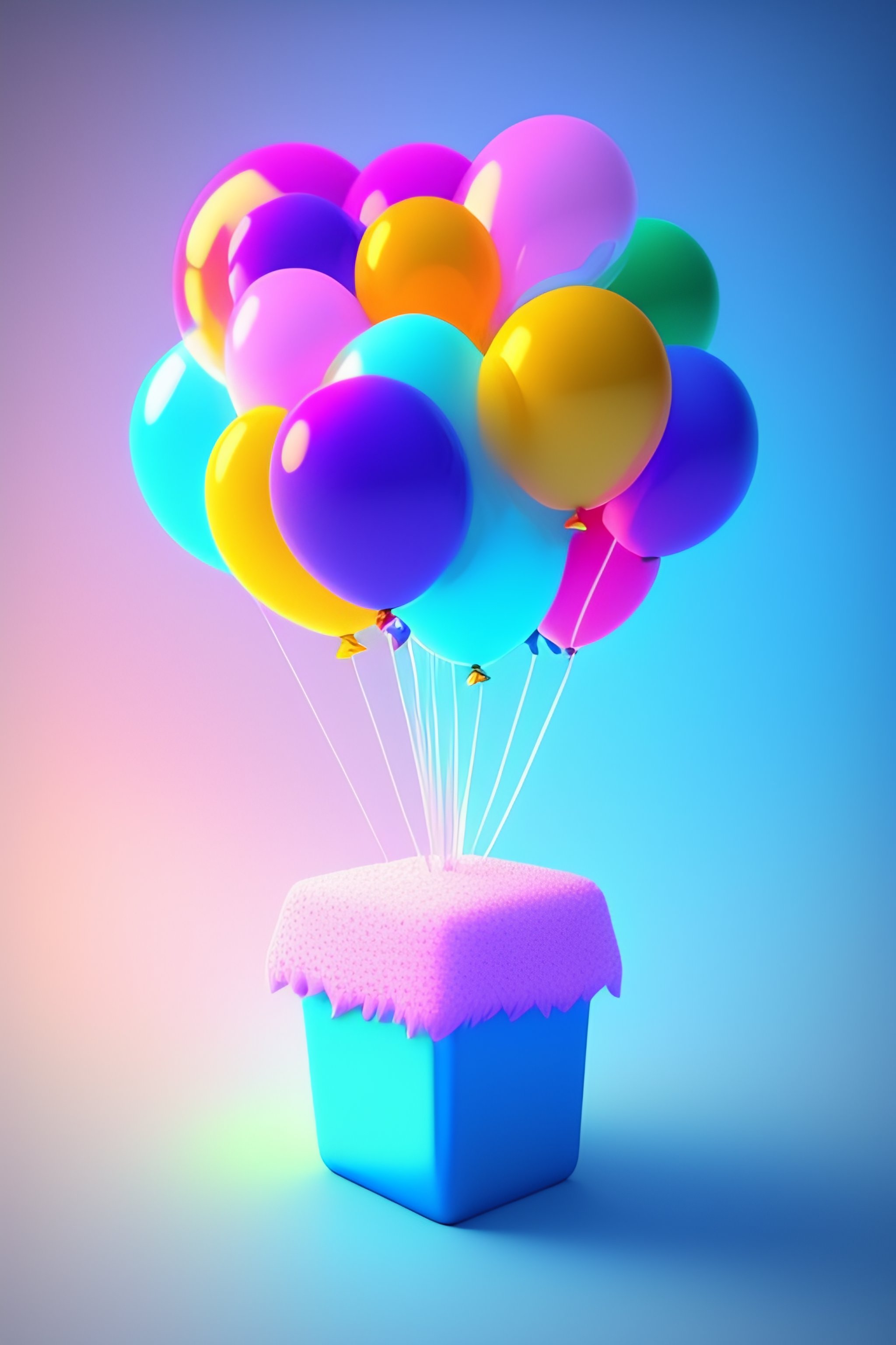Cute and adorable cartoon fluffy minecraft, birthday, blue, balloons, fantasy, dreamlike, surrealism, super cute, trending on artstation 8k
