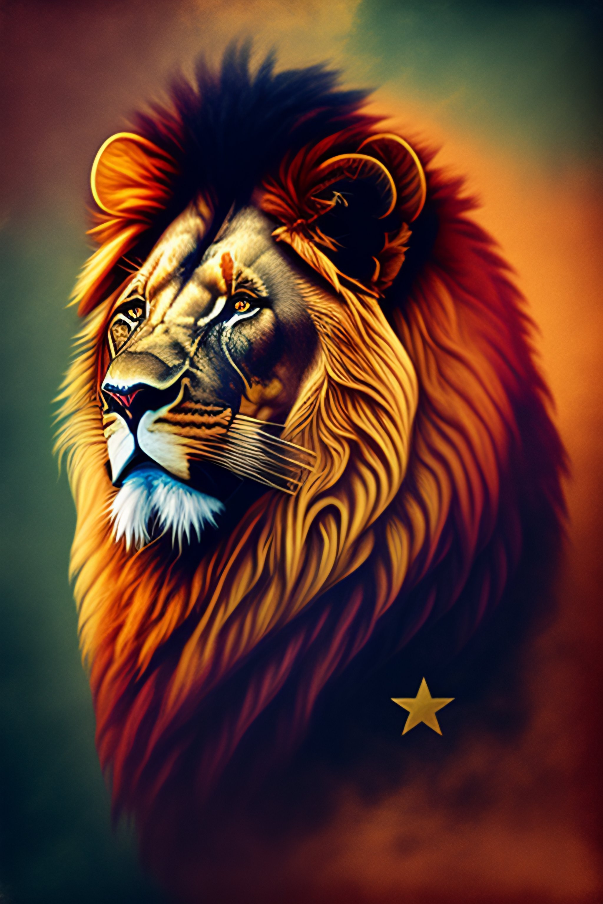 Lion with flag logo art neauvaux style