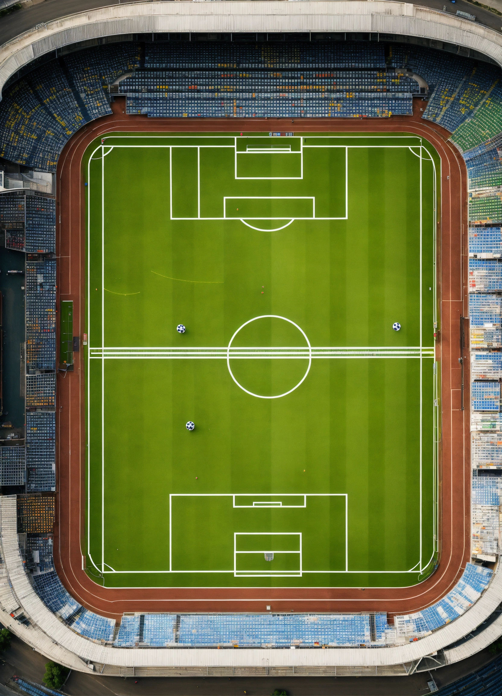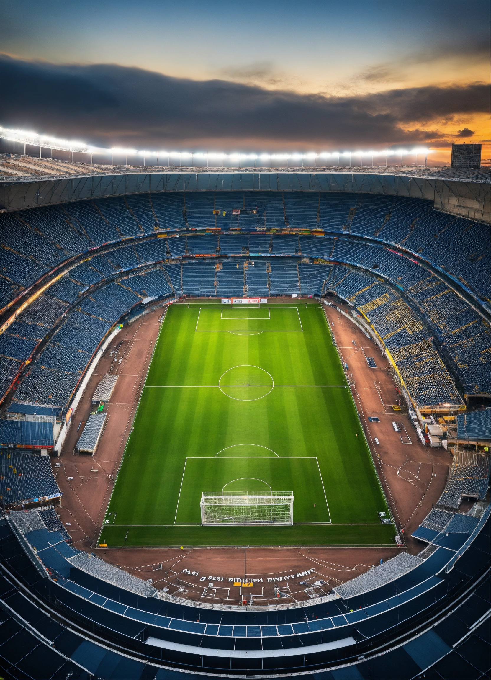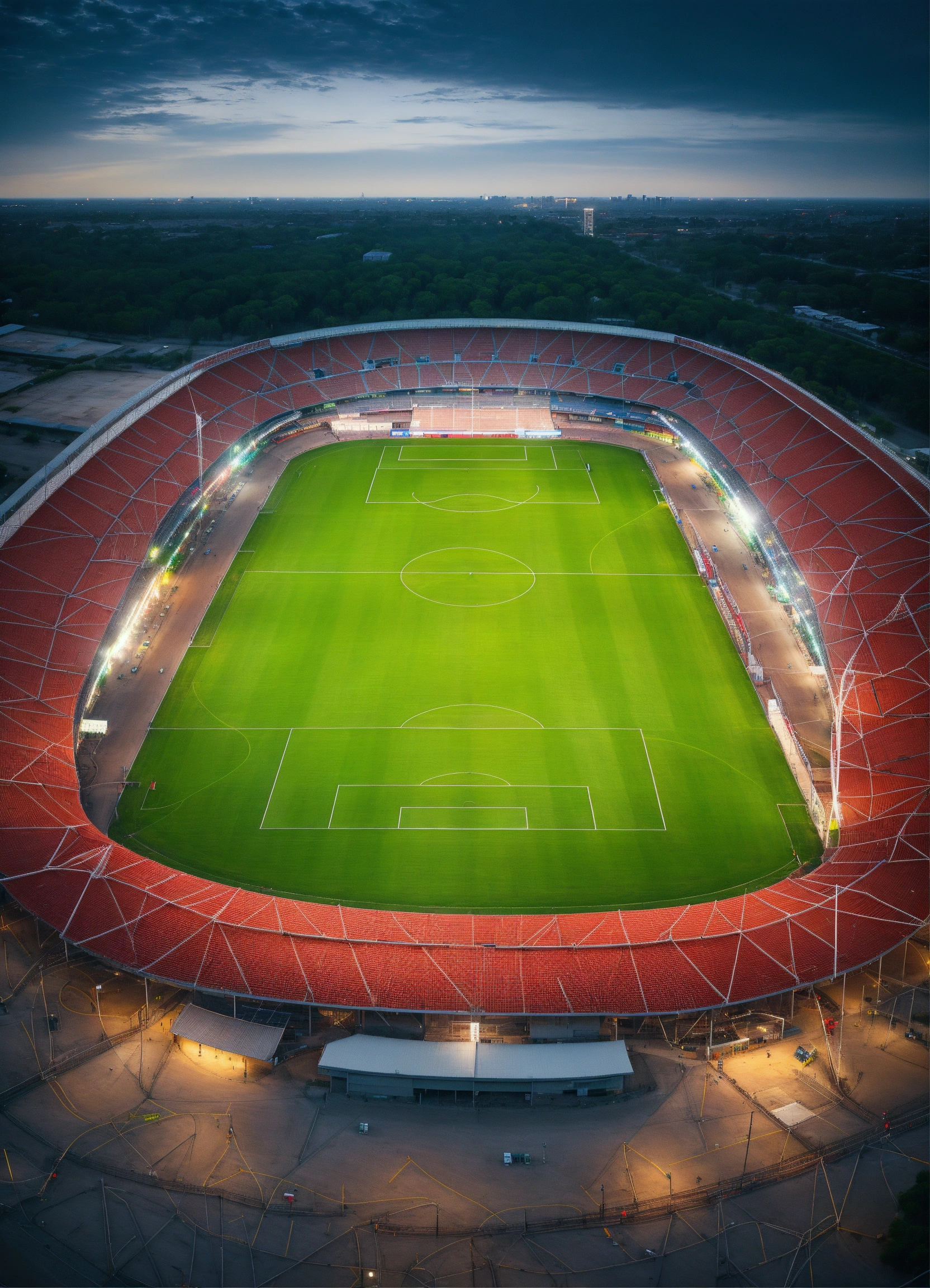 Soccer stadium sky view with lines indicating the perimeter