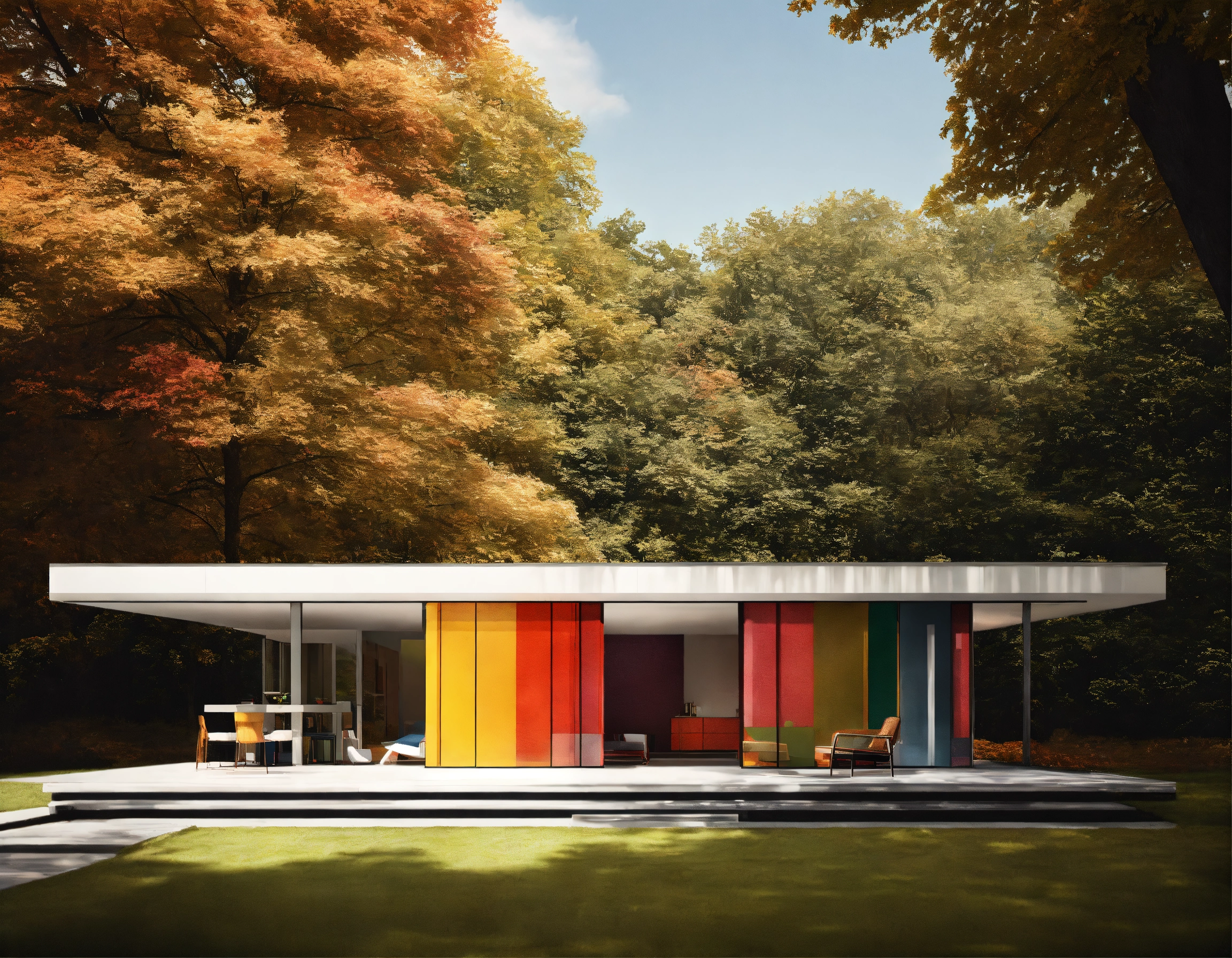 Ludwig mies van der rohe minimalist colorful plastic house photorealistic