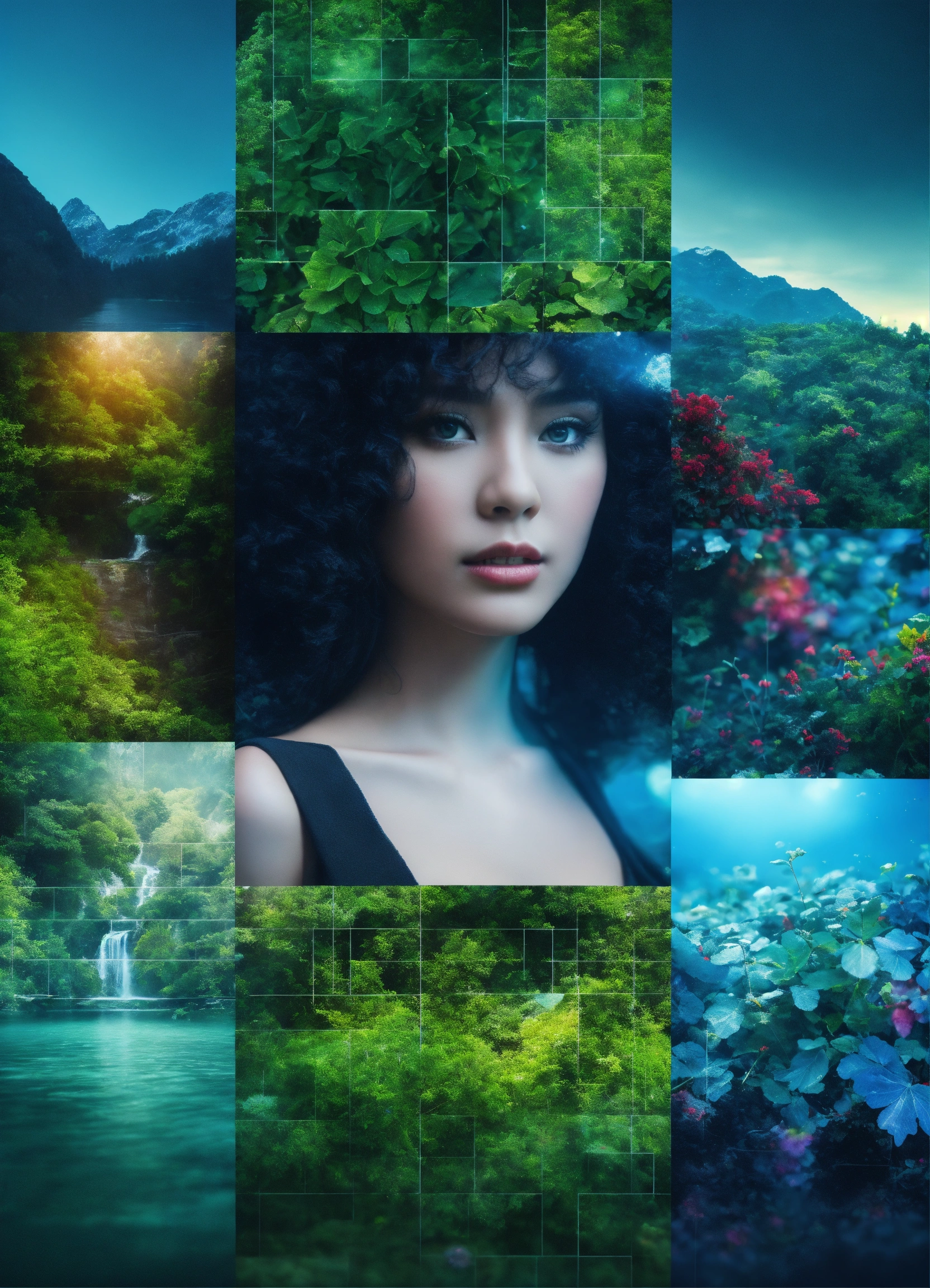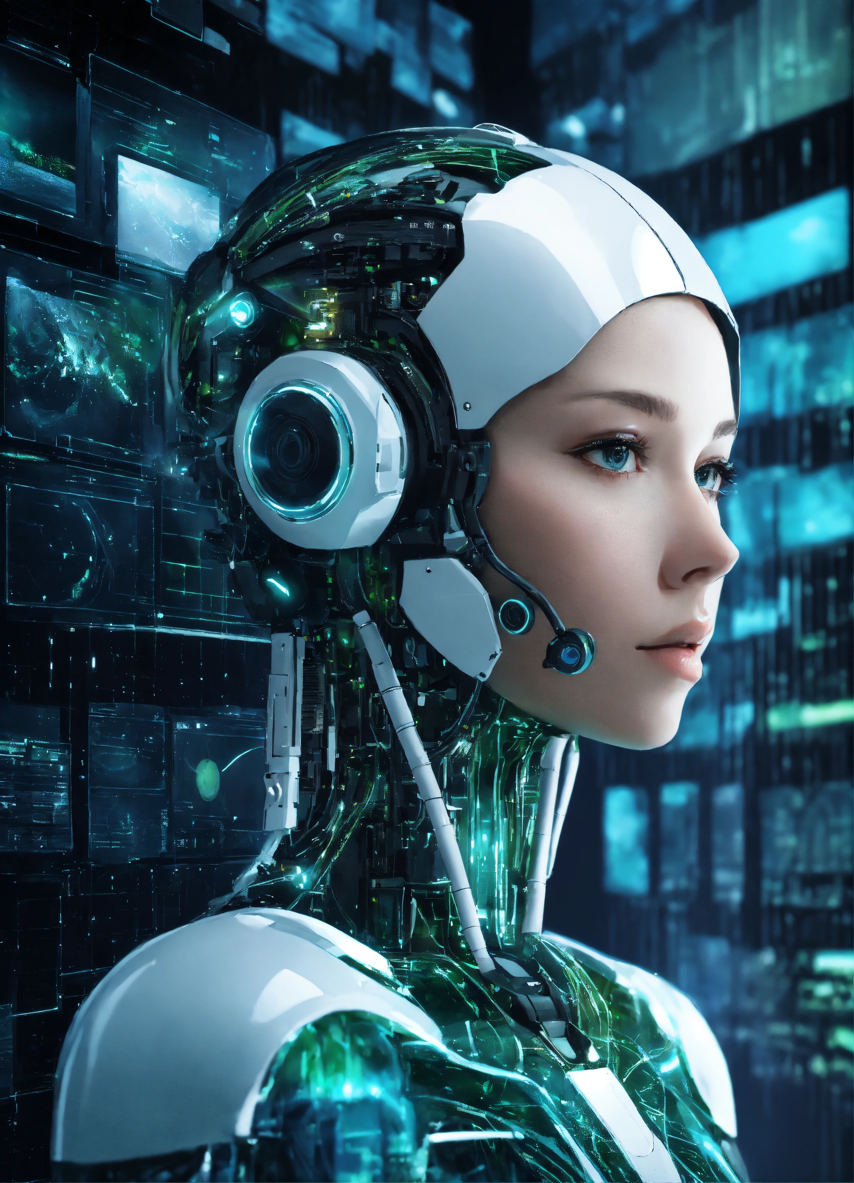 Ai surrounded by high quality images. each image is a different style. each image is suitable for use in business. black, whites, blues and greens. 4k