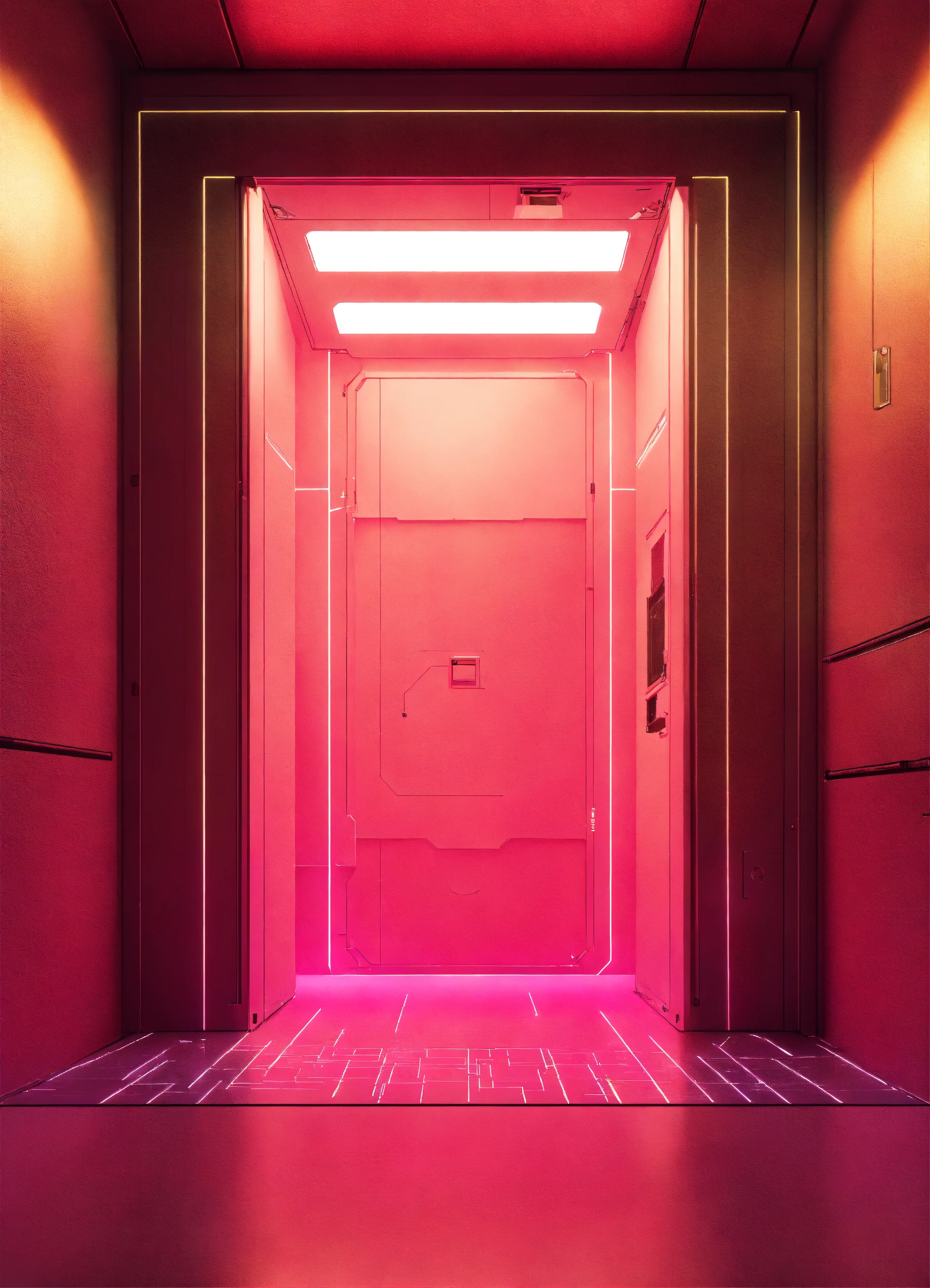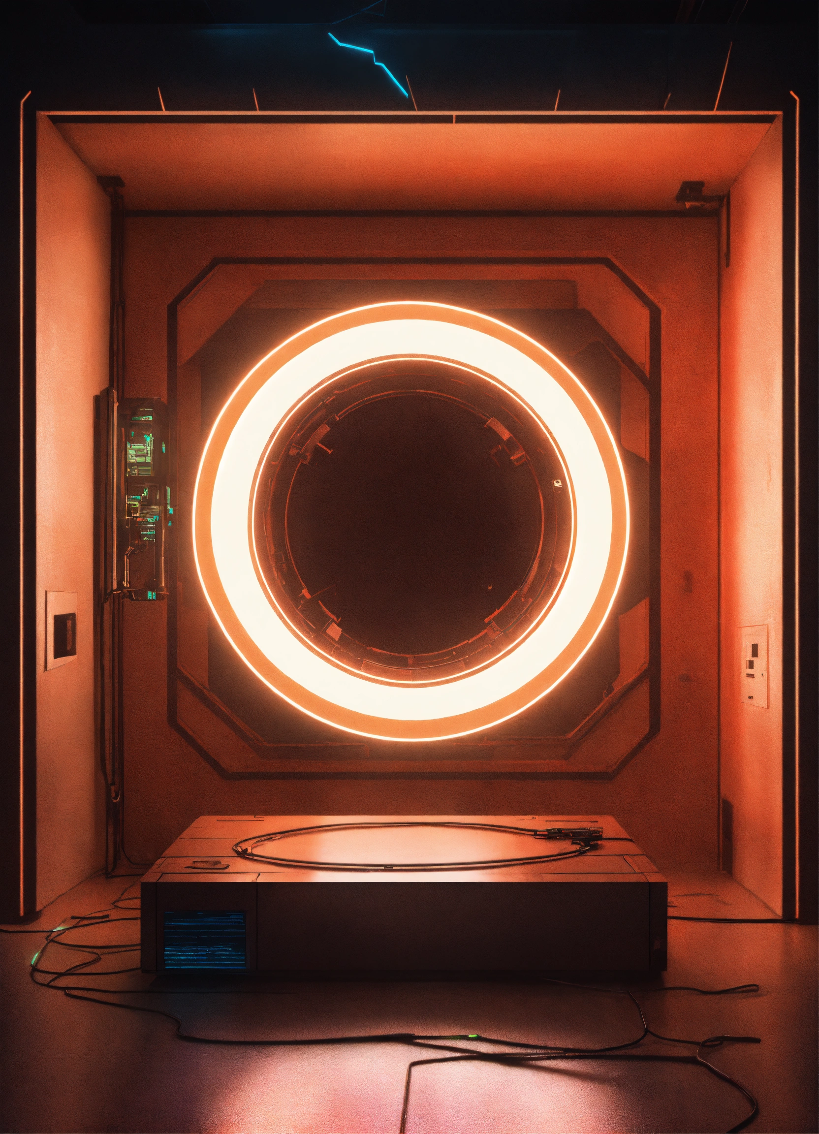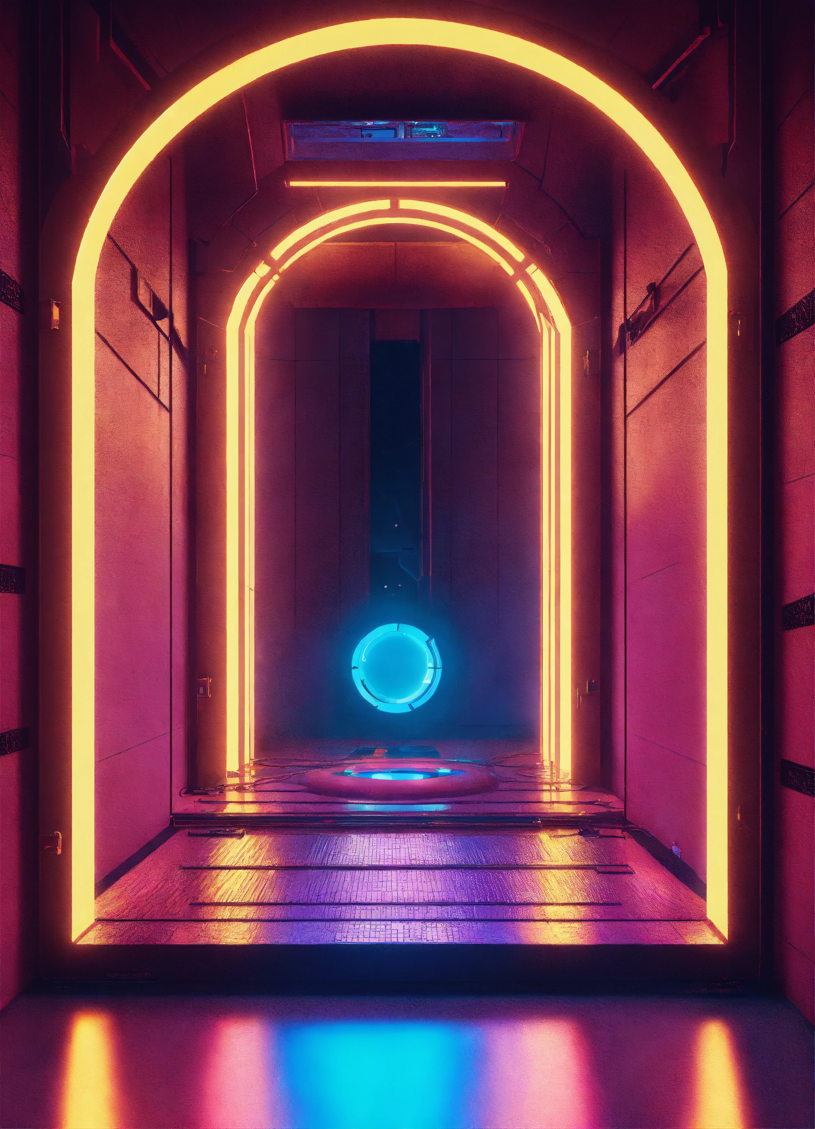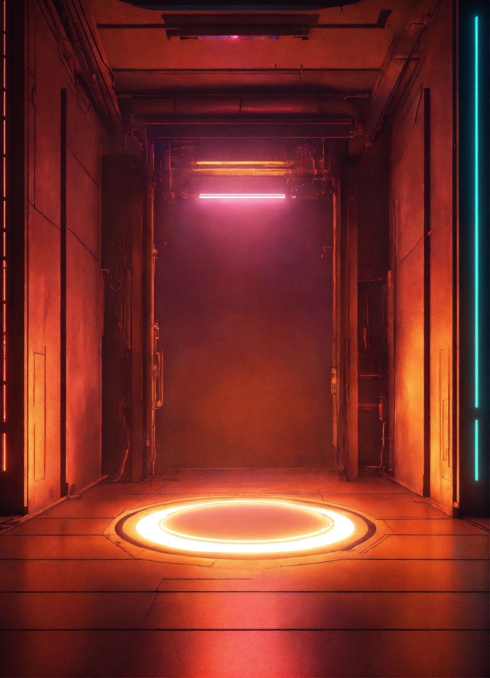 A cyberpunk portal on the floor with a soft glow
