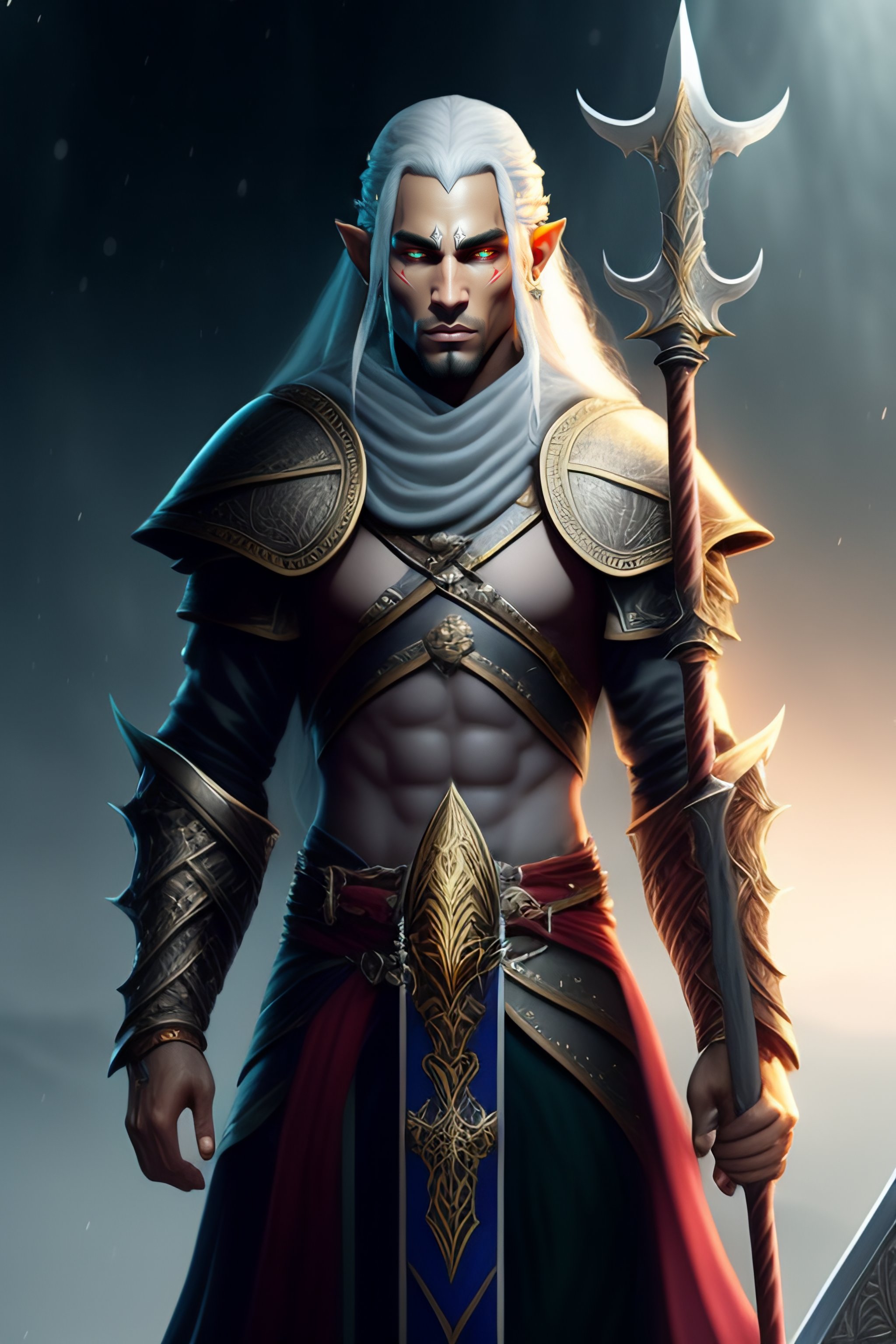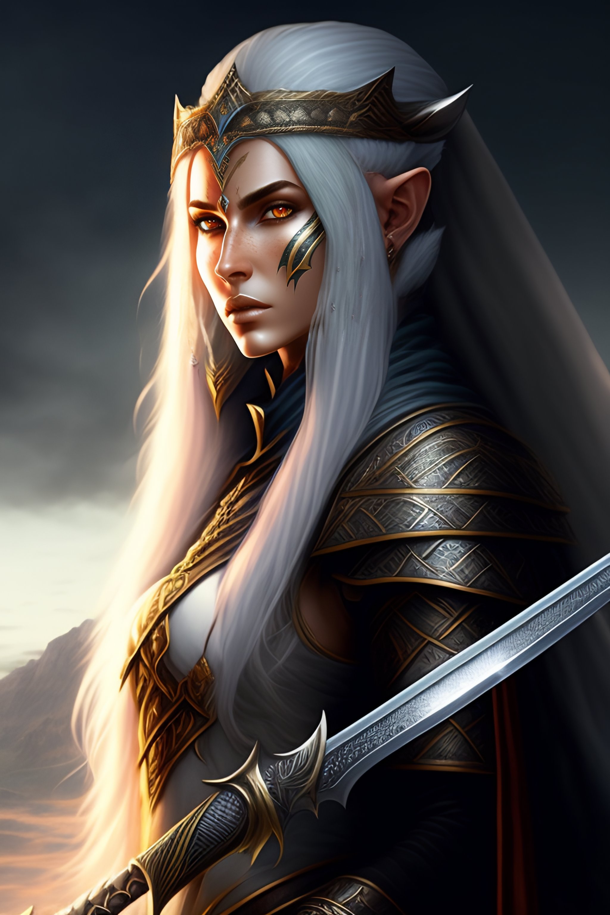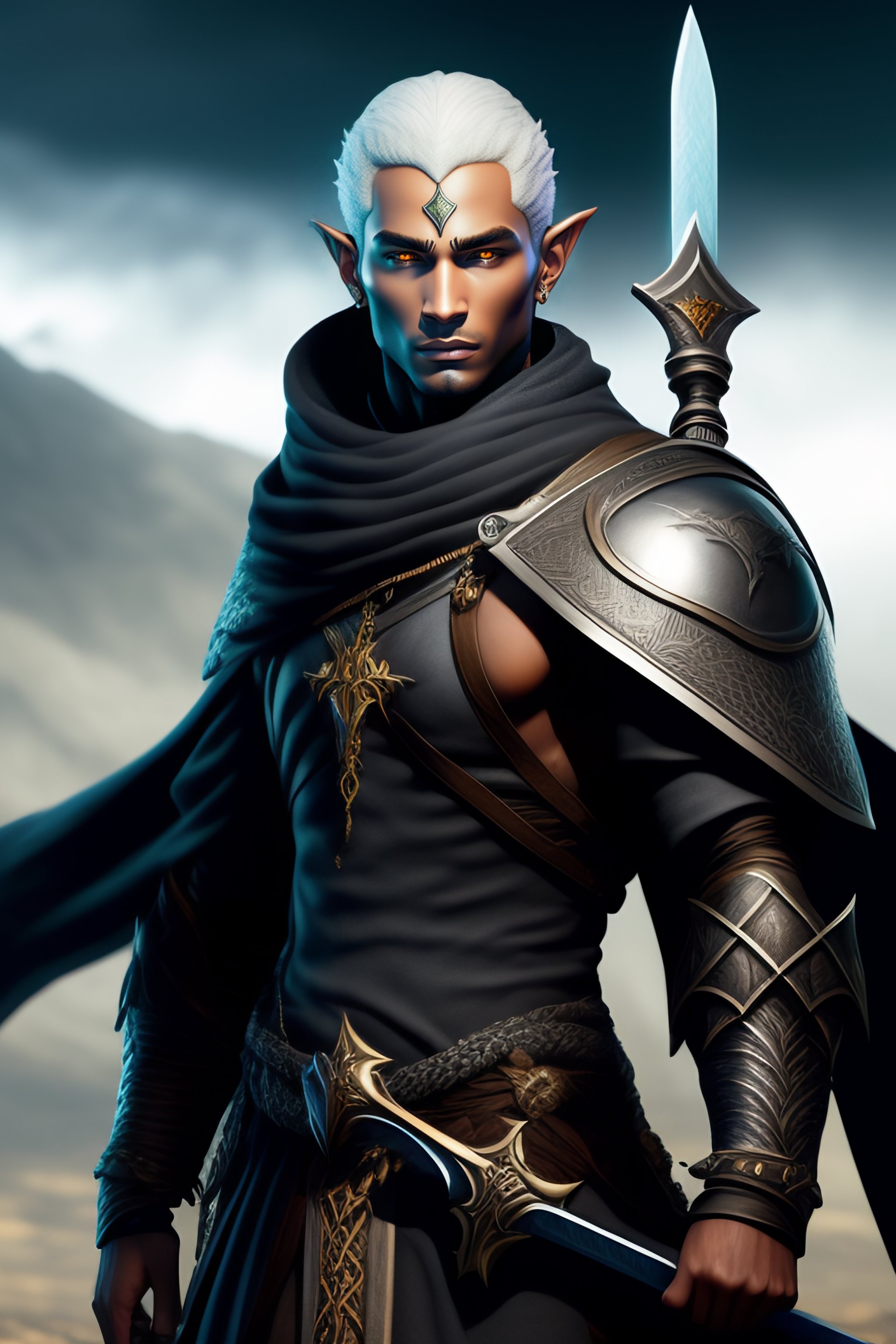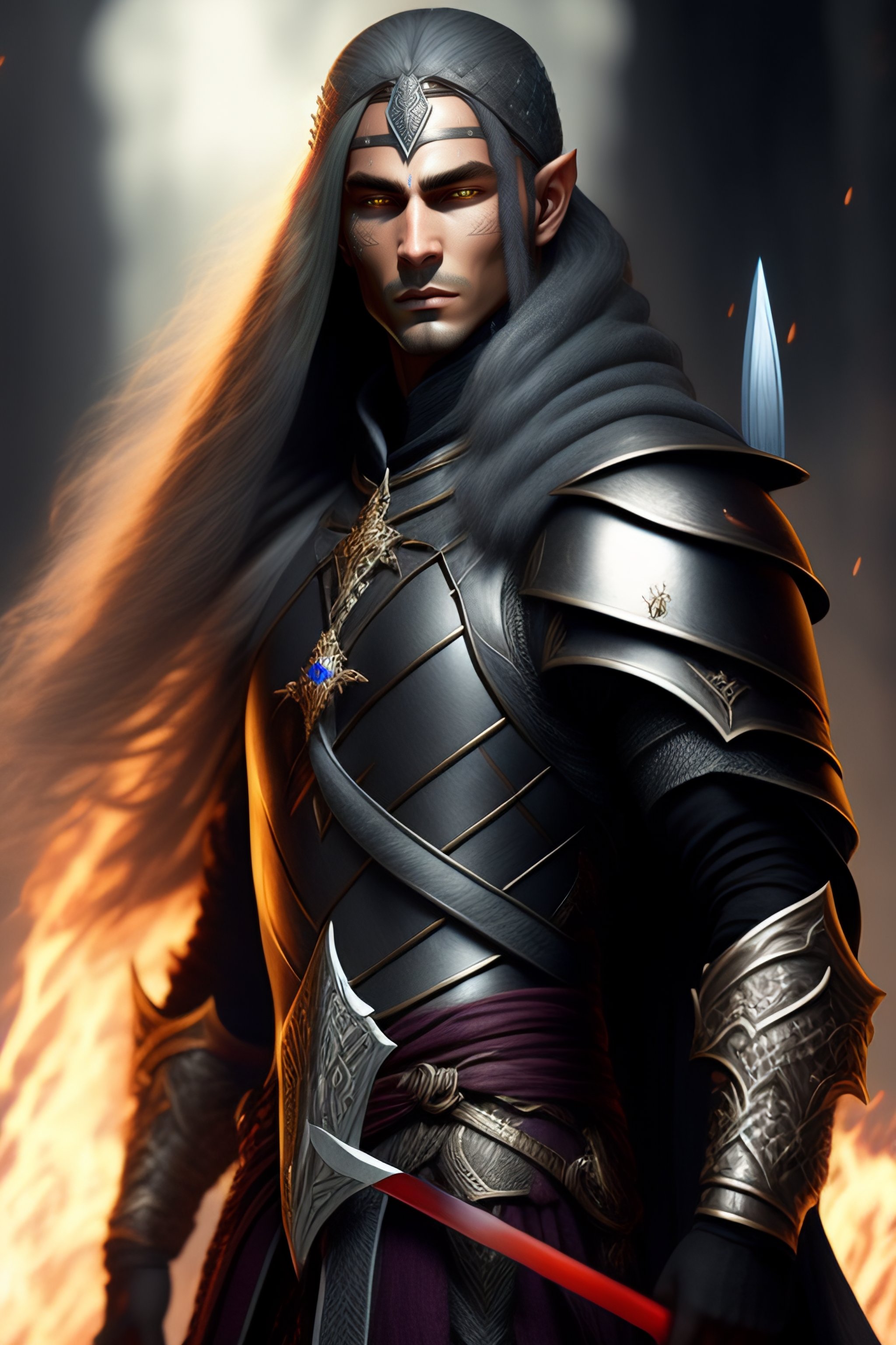 Grey skinned magus elf with black sword