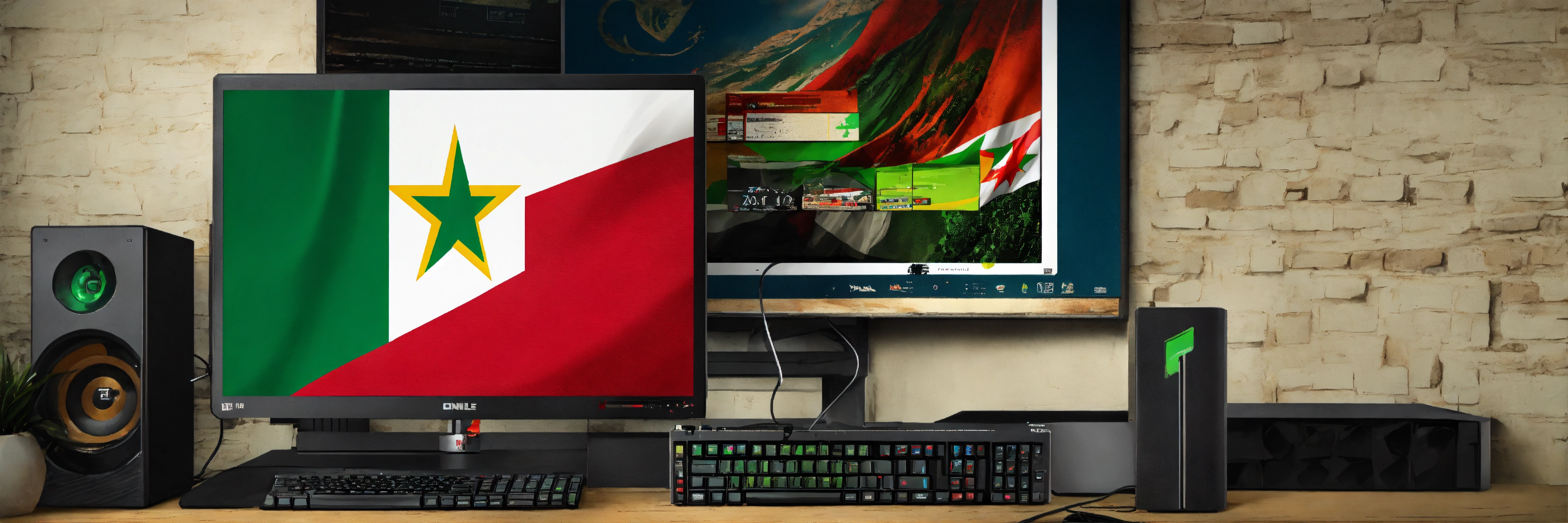 Pc gamer image stylé dessin avec un drapeau d'algérie sur le mur