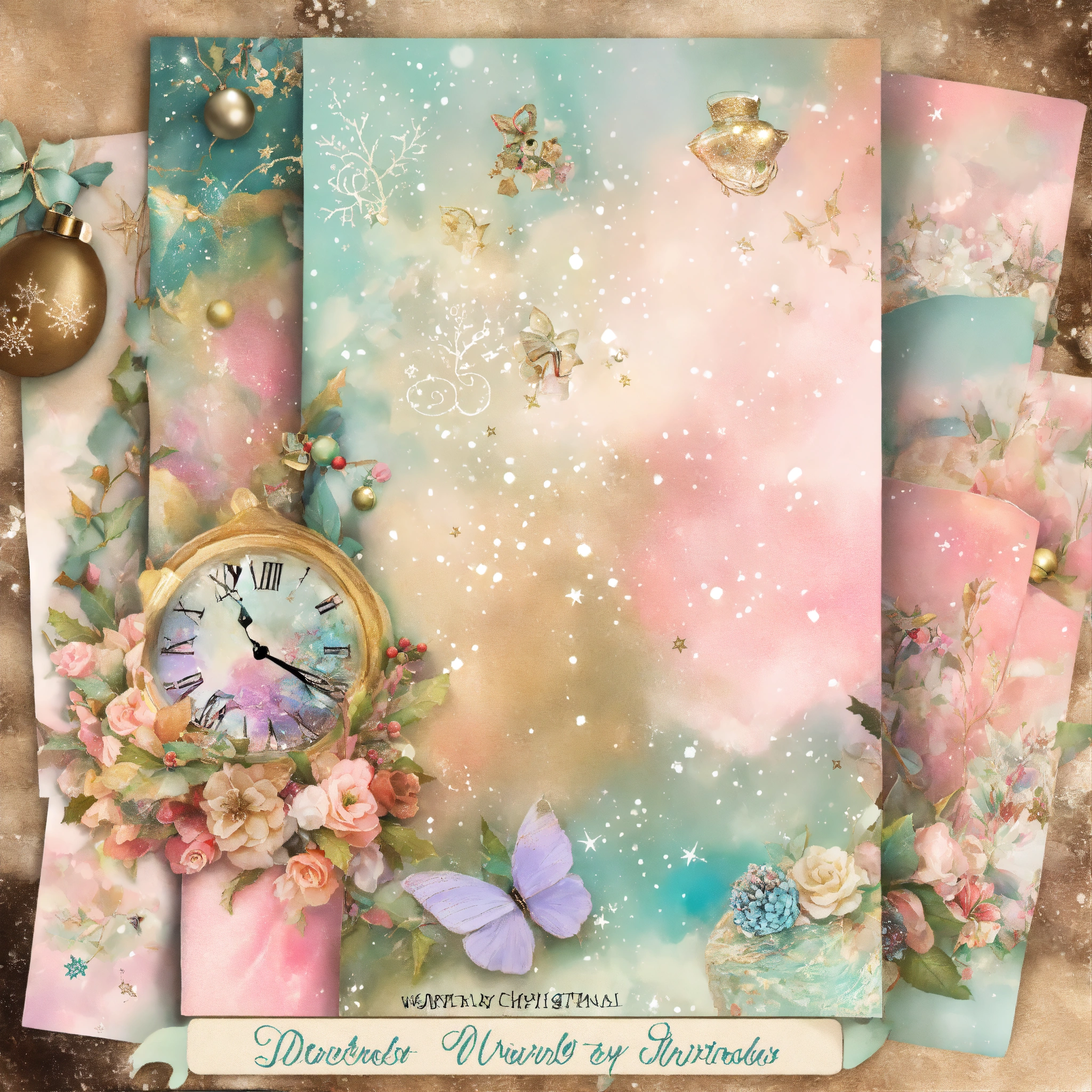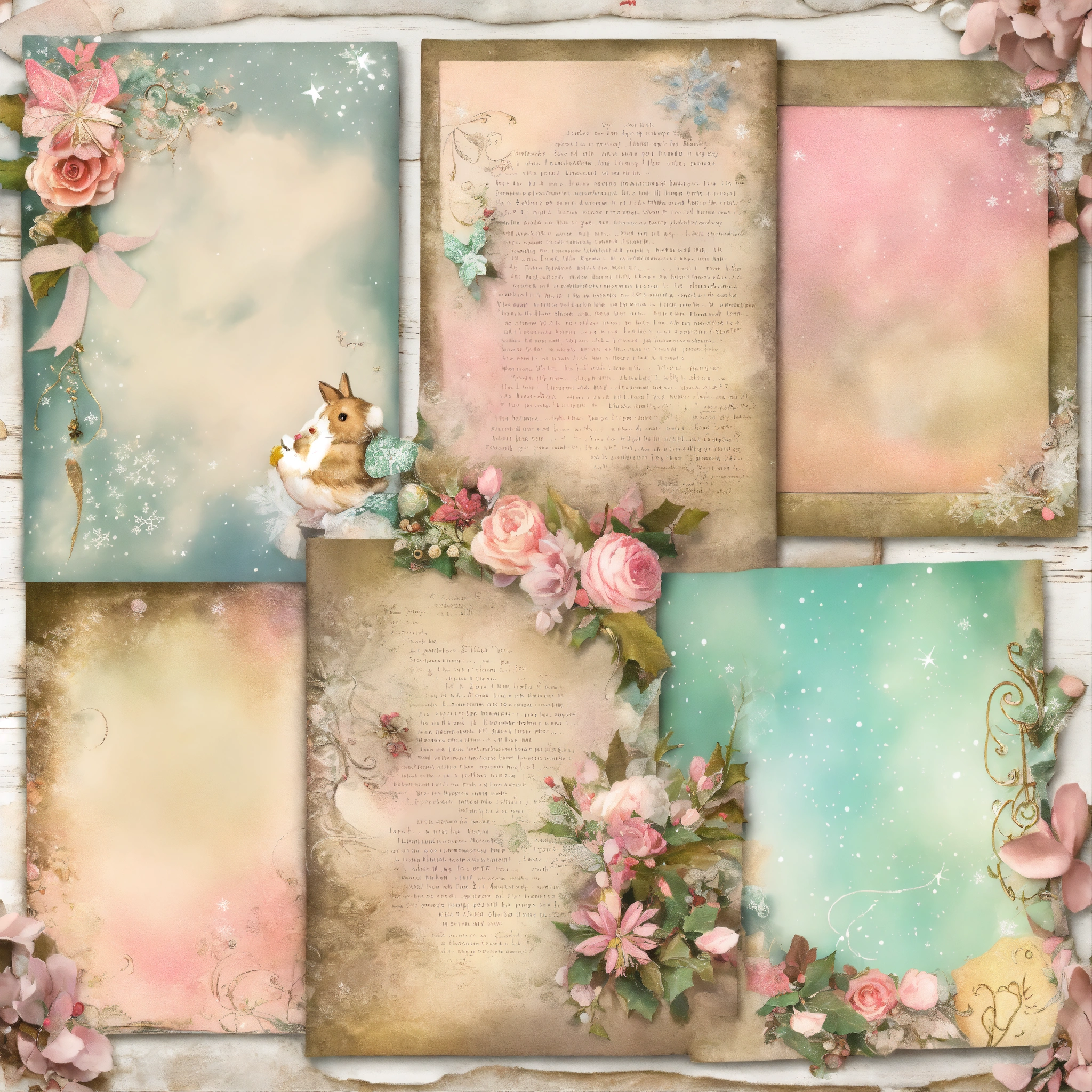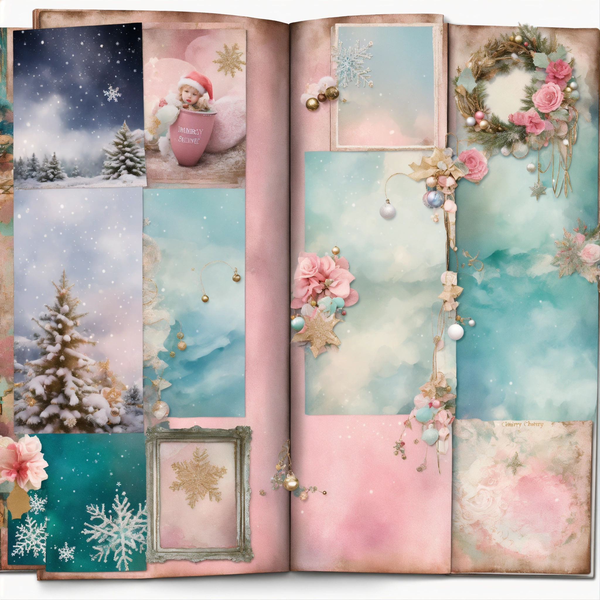 Shabby chic dreamy mist pastel junk journals christmas junk journal digital kit, printable collage sheets, december daily, whimsical pages, winter, journal for child, swirling magical fairytale abstract art style