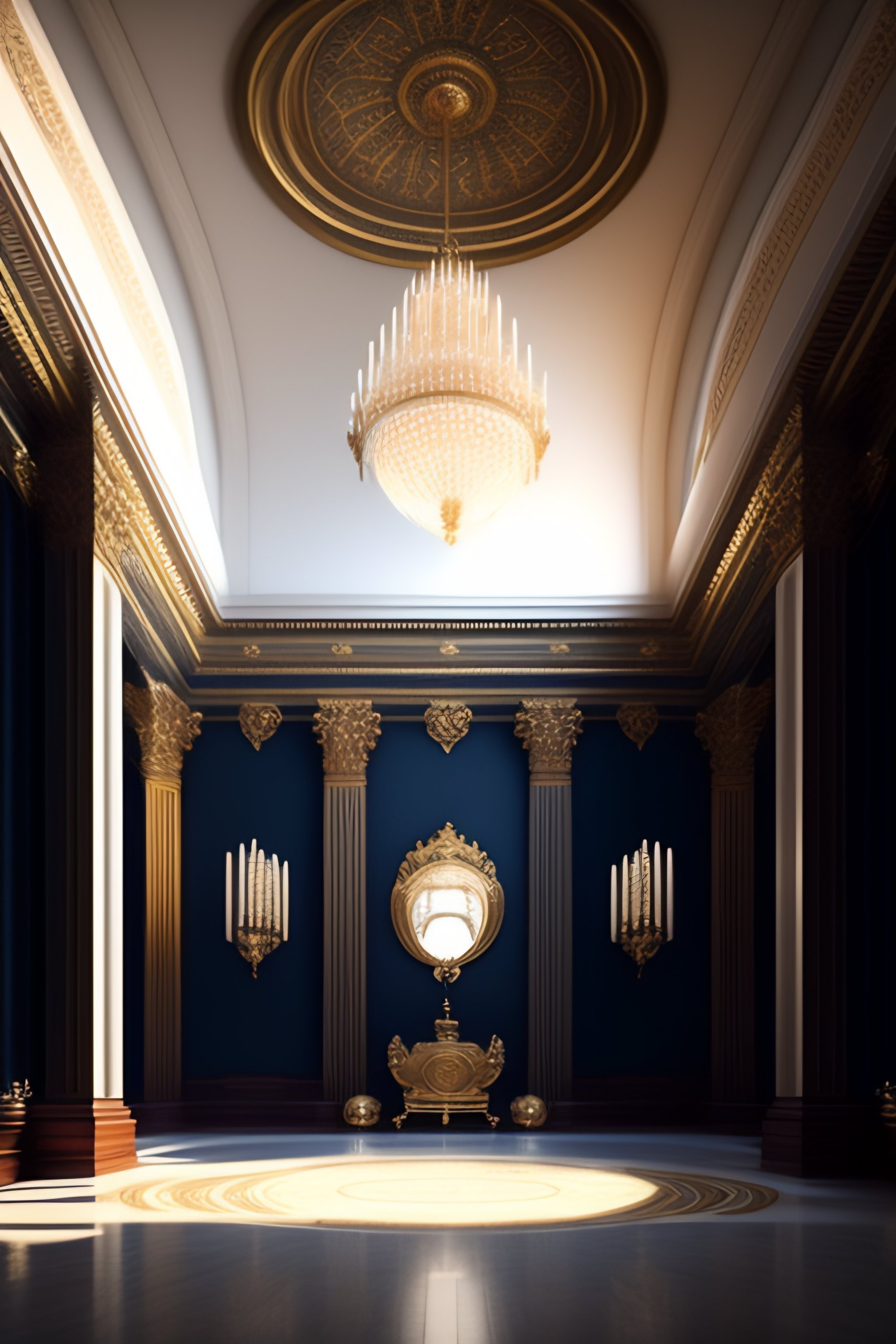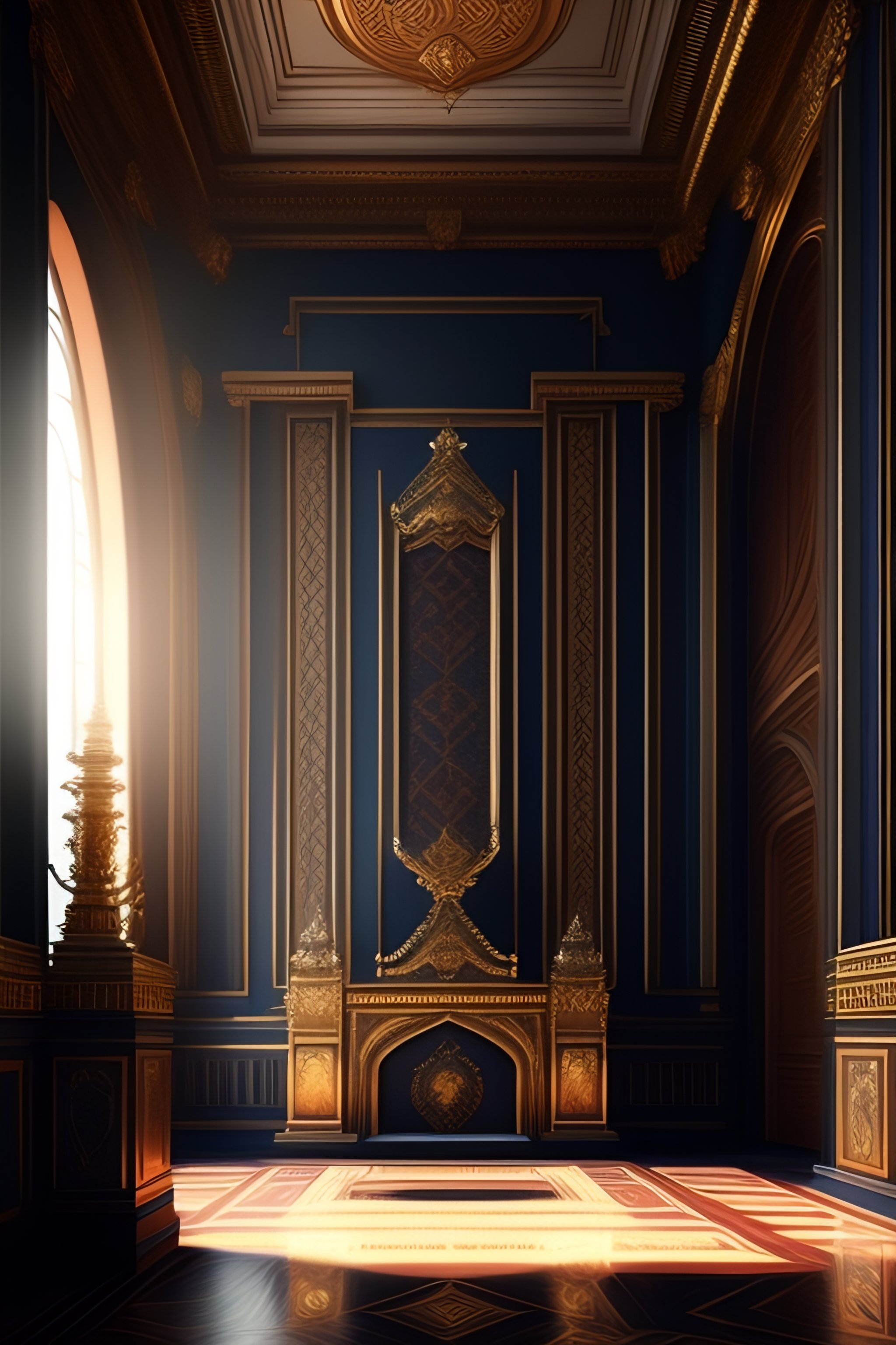 Majestic huge throne room, empty, dim light | | realistic shaded, fine details, realistic shaded lighting poster by stefan kostic, diego gisbert llorens, magali villeneuve