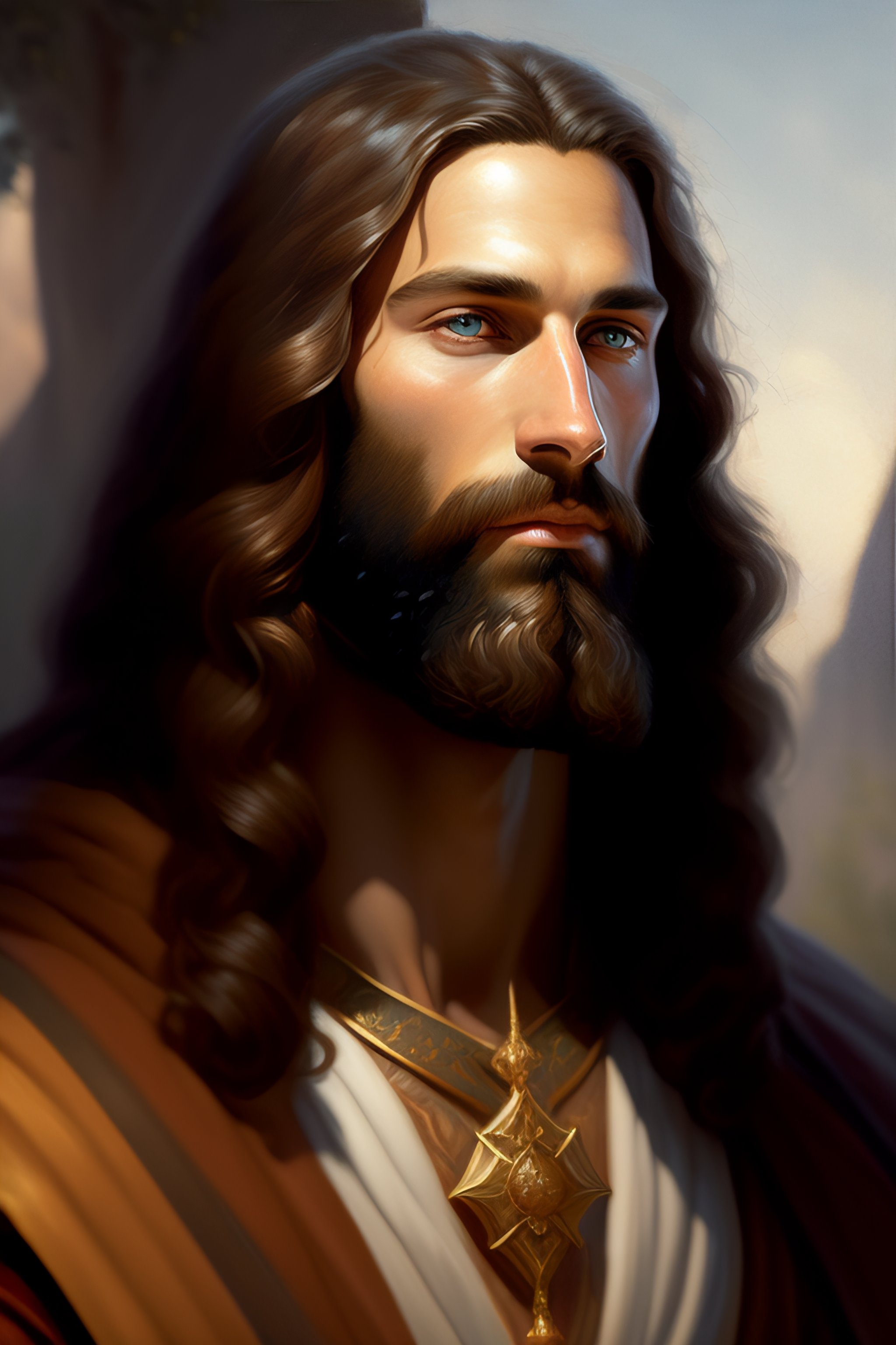 A detailed portrait of jesus christ according to the bible by justin gerard and greg rutkowski, digital art, realistic painting, dnd, character design, trending on artstation