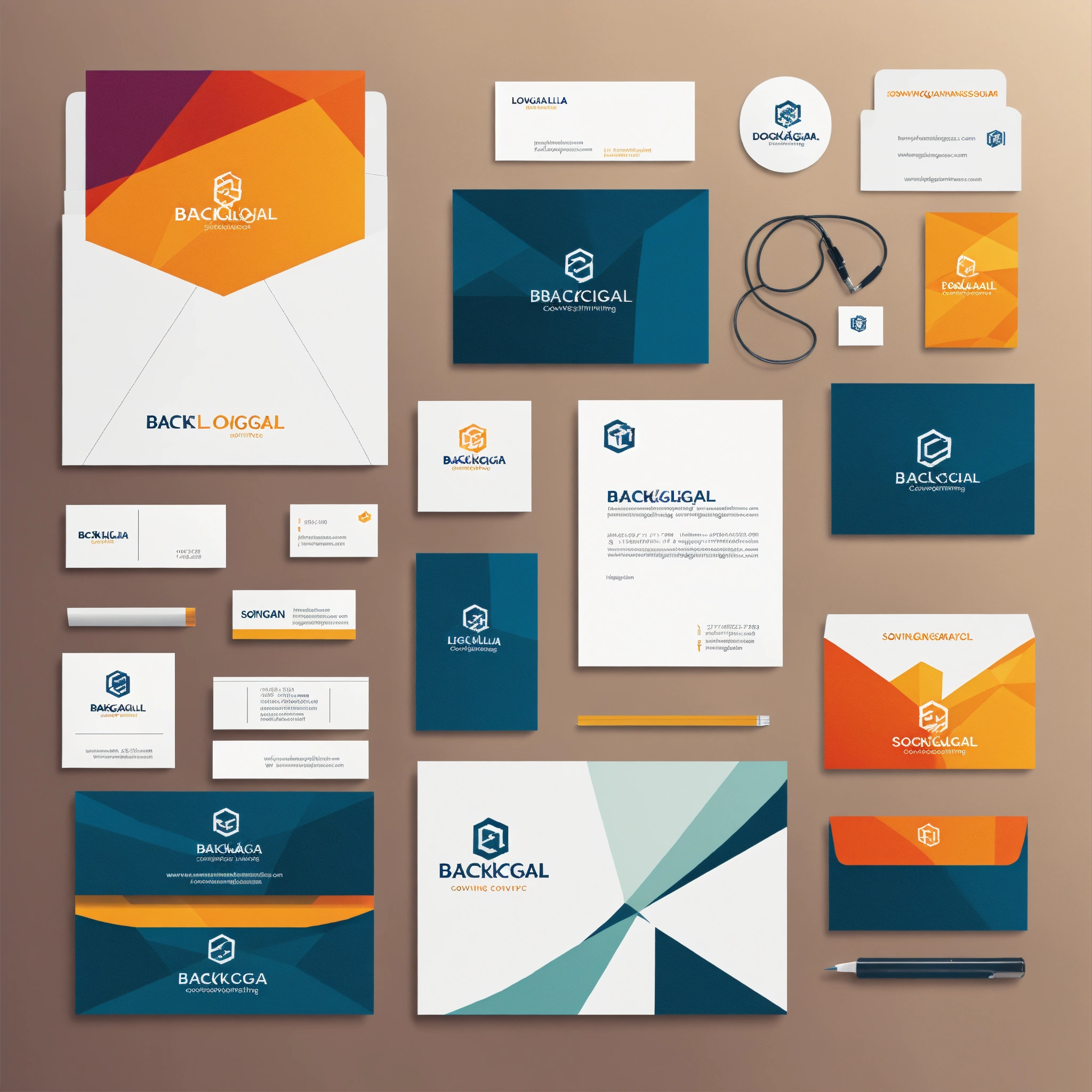High resolution icon of a extremely simple 2d, elegant, clean and modern geometric business identity, business card, letterhead for software process consulting company "backlogical" in conveying terms "logic", "software", "development", "process"