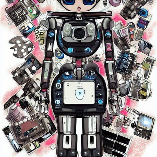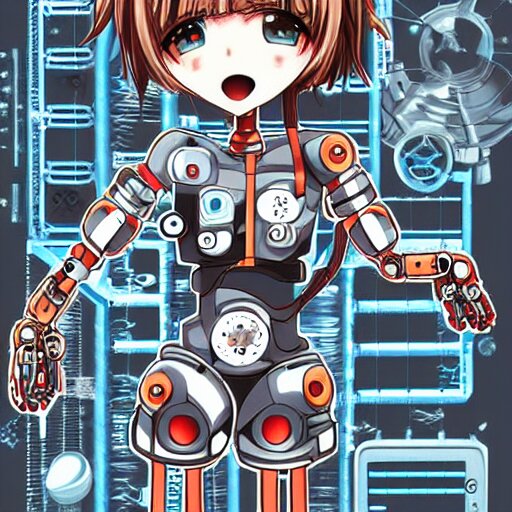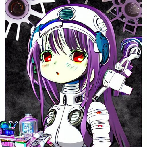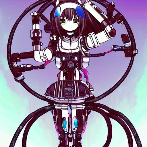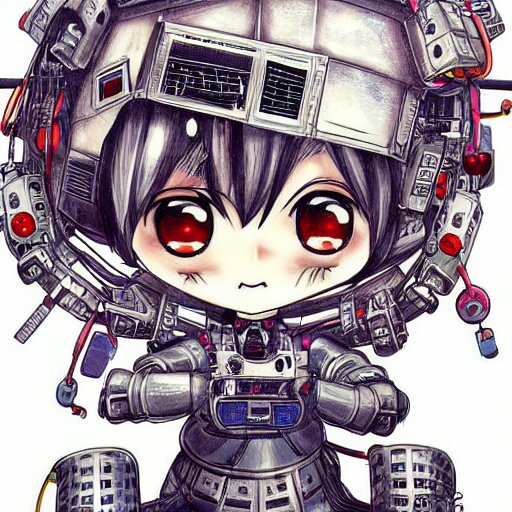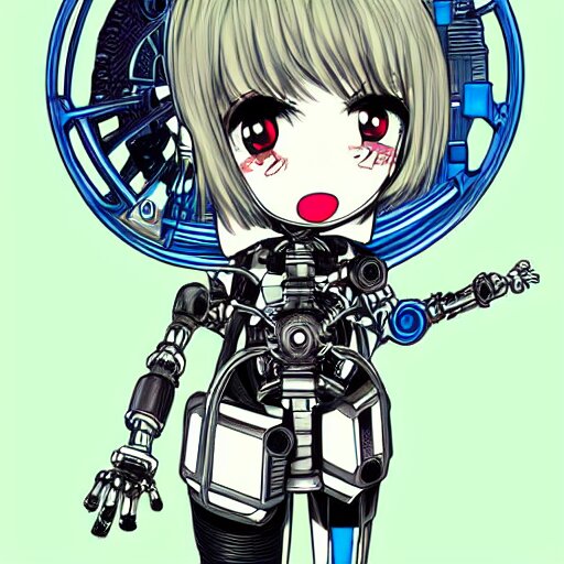 Anime manga robot!! anime girl, cyborg girl, exposed wires and gears, fully robotic!! girl, manga!! in the style of junji ito and naoko takeuchi, cute!! chibi!!! schoolgirl, epic full color illustration, tattoo