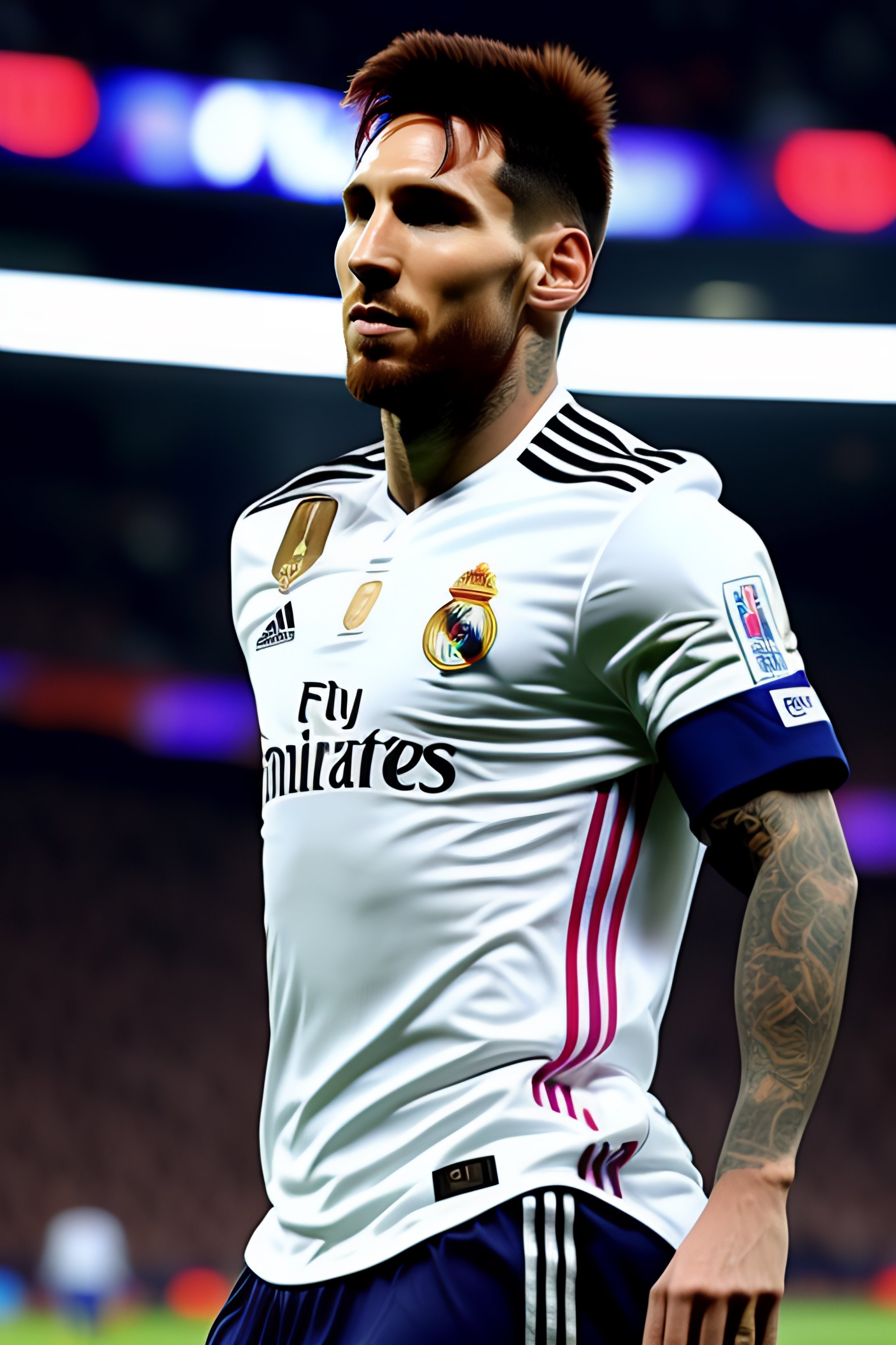 Photo of messi with the real madrid jersey