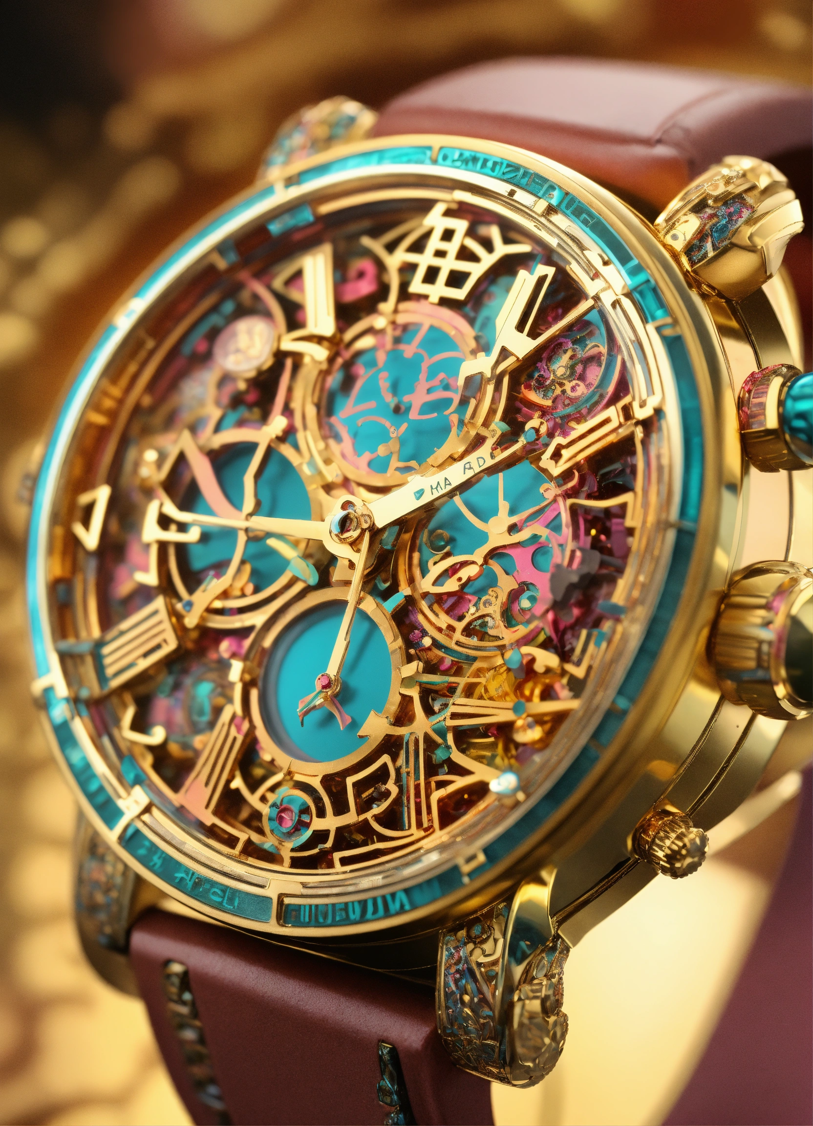 Ultra detailed scifi design of the the words "luxury watch" in a generative 3d style on a watch, grotesk font, graphic design, uppercase letter, fungal, mycelium, intricate concept art, triadic color scheme, by alphonse mucha and mandelbrot, octane render, 4k, behance, dribbble, alphabet challenge, fractal