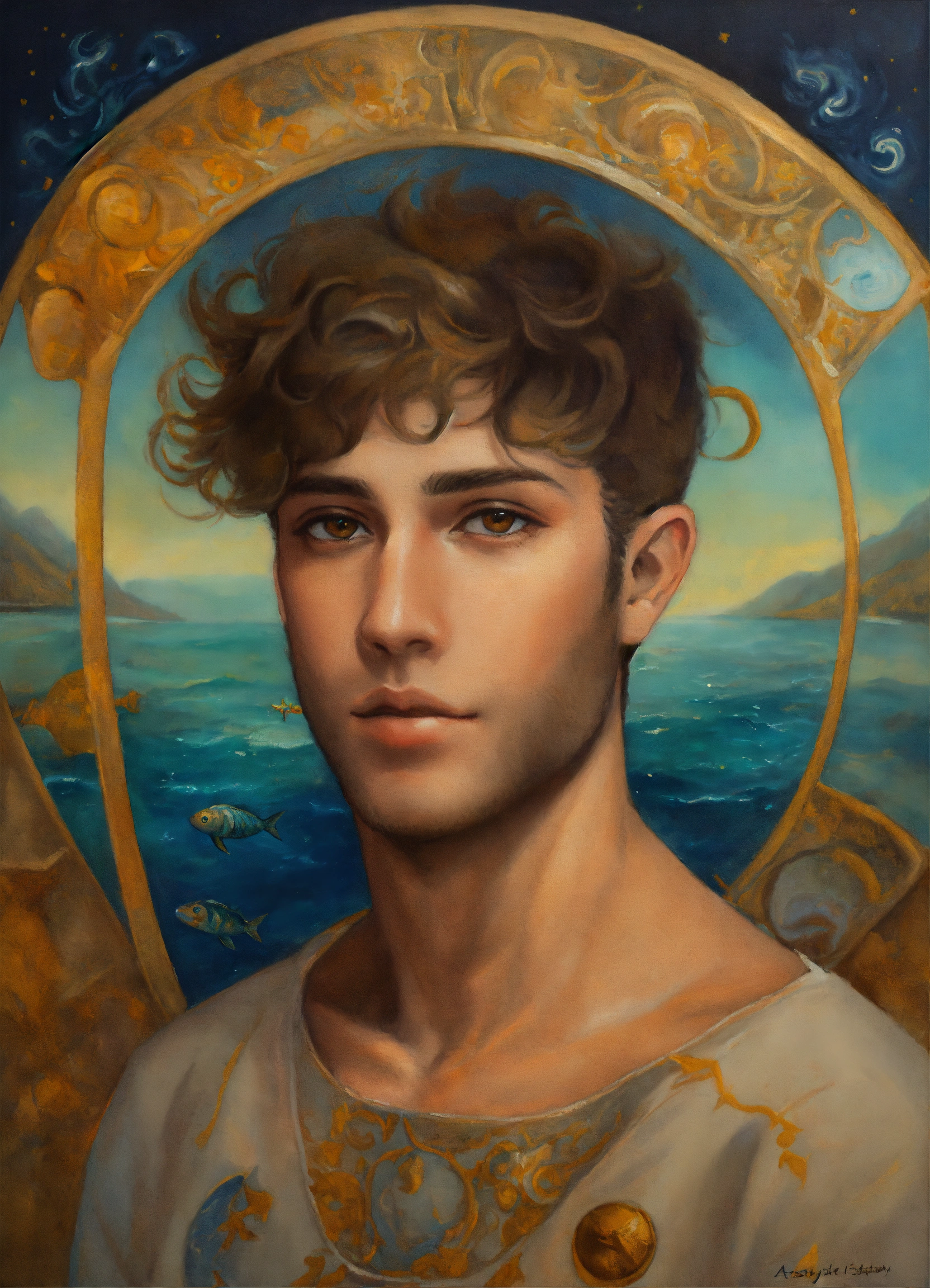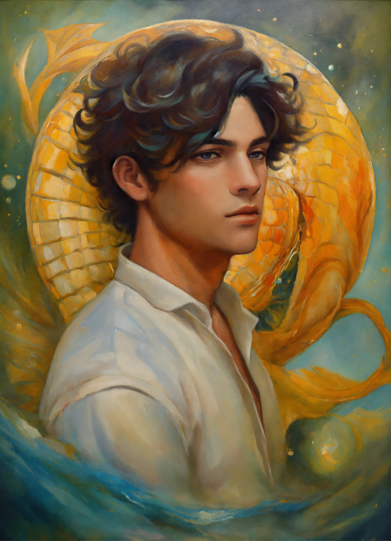 Oil painting of the astrological sign male pisces as a person