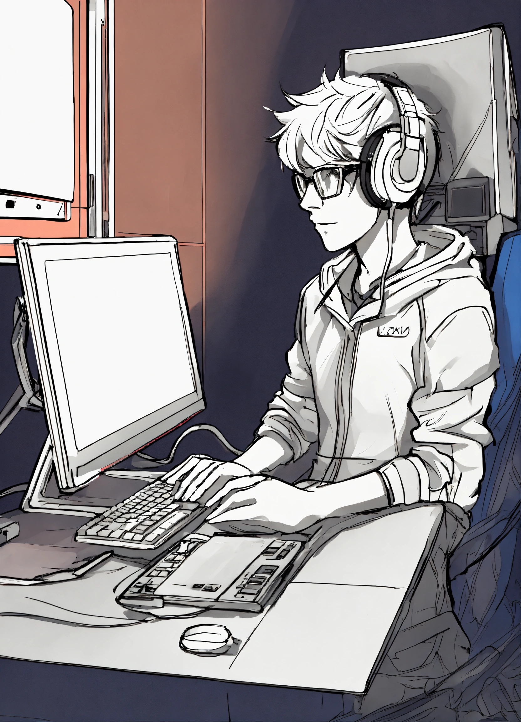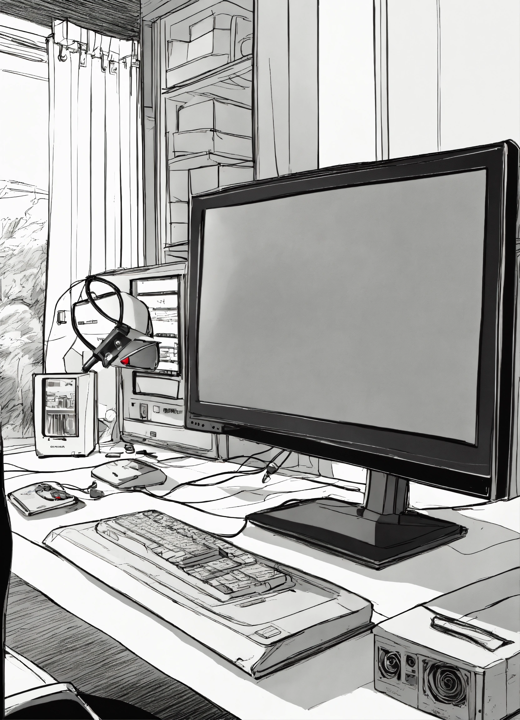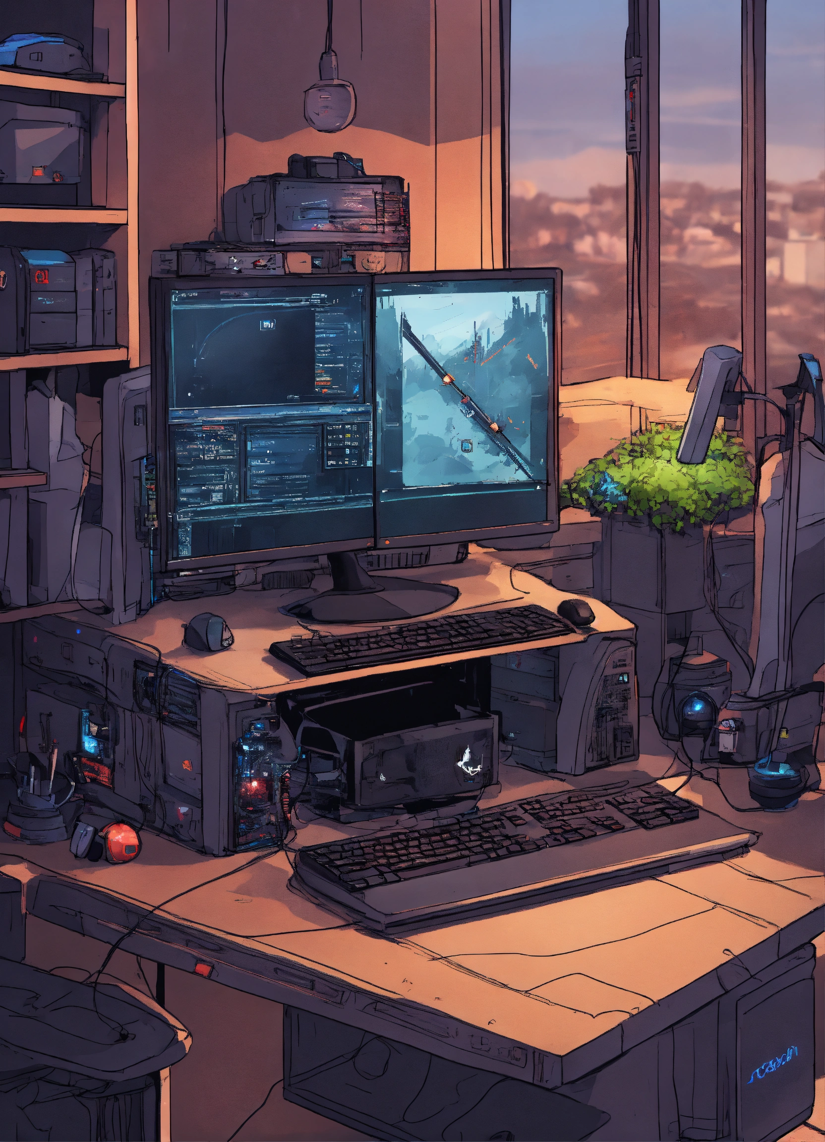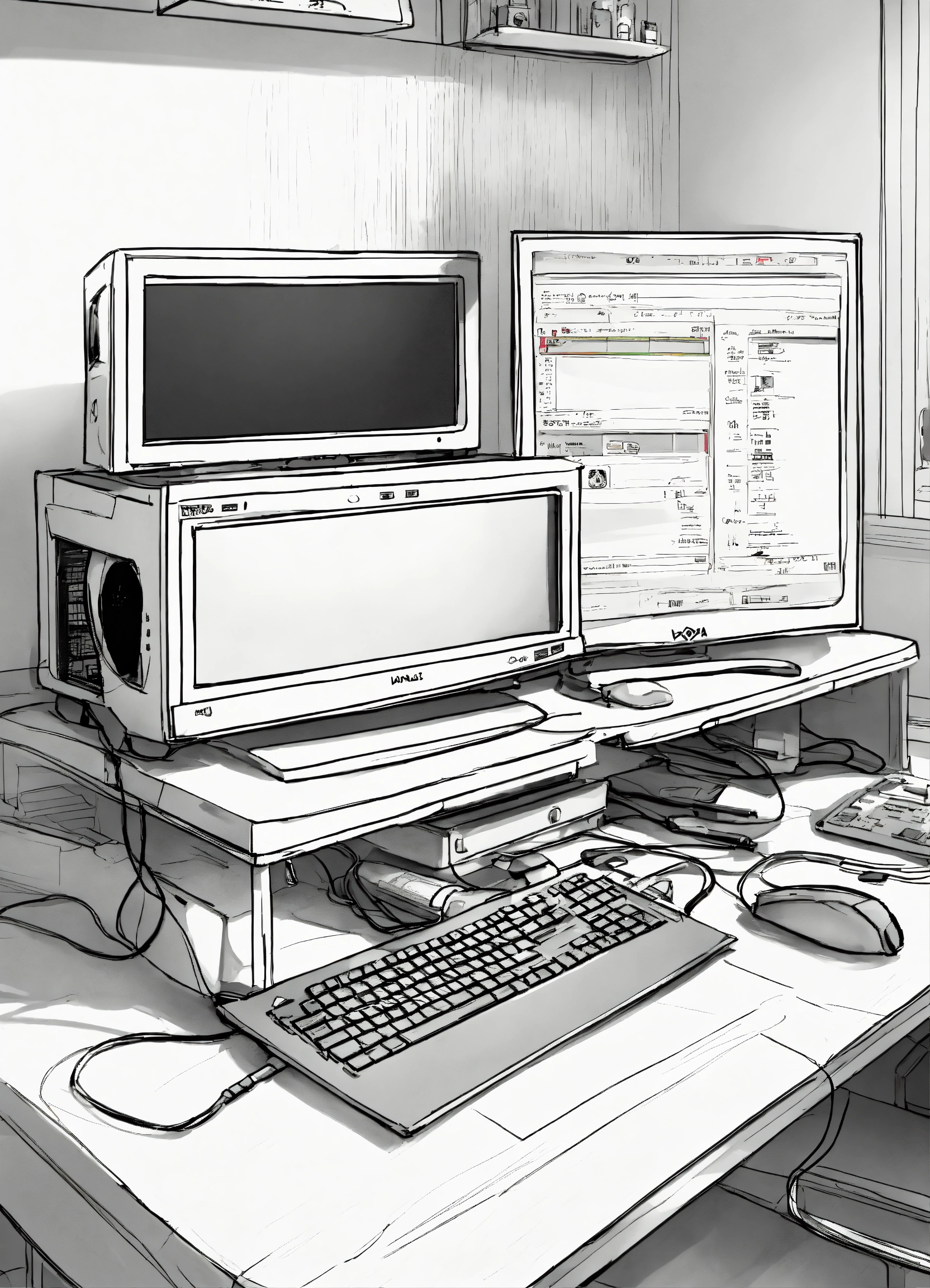 Dessin d'un pc gameur avec deux ecran sur la gauche