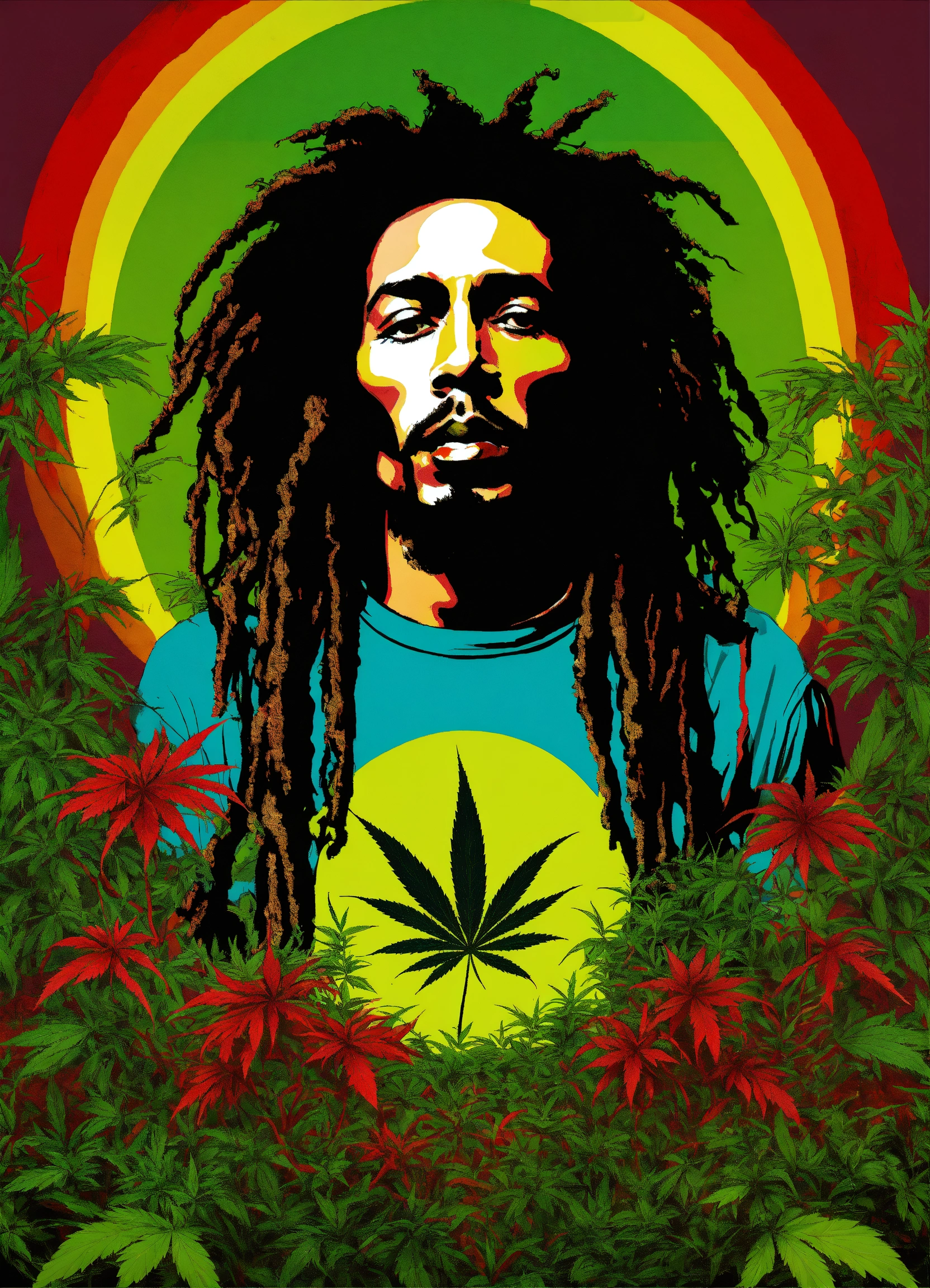 Diseño para camisetas que contengan marijuana plant near a bob marley