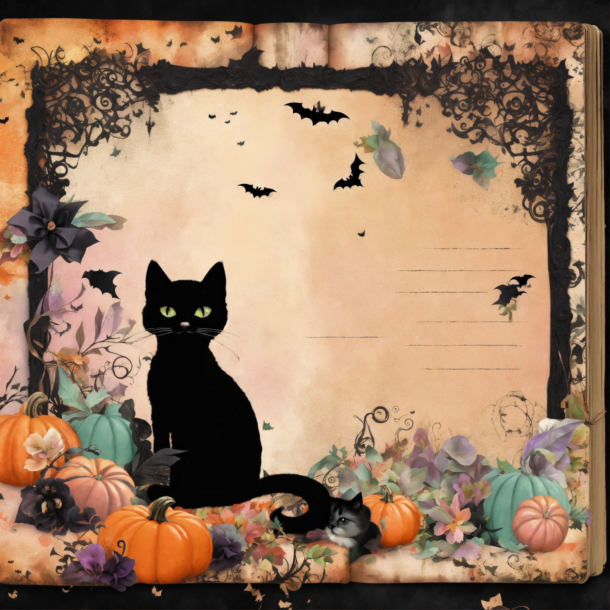 Shabby chic dreamy mist pastel junk journals magical halloween black kitten cats junk journal layout pages halloween junk journal kit printable halloween journal cards halloween junkjournal kit digital swirling magical fairytale abstract art style