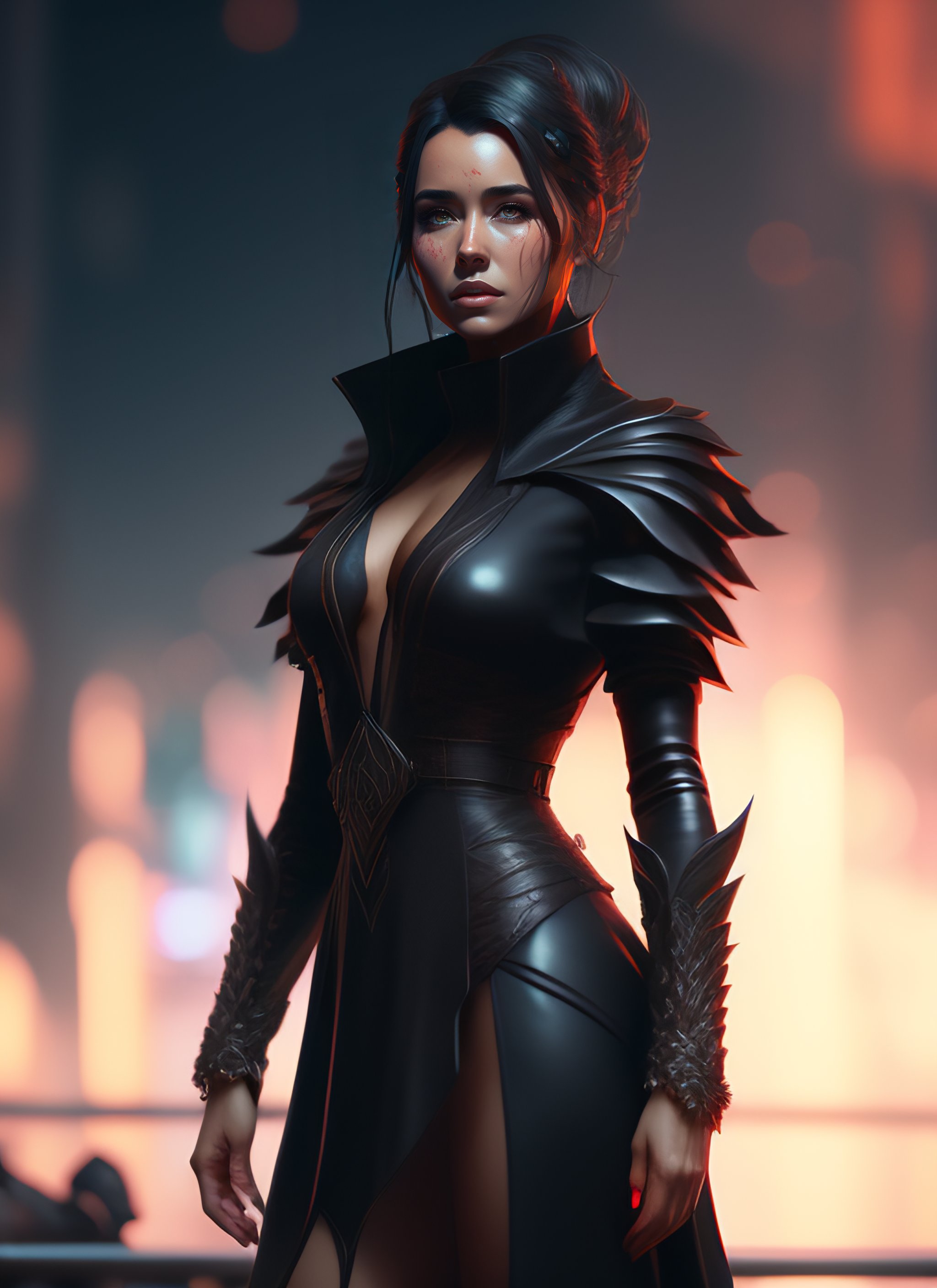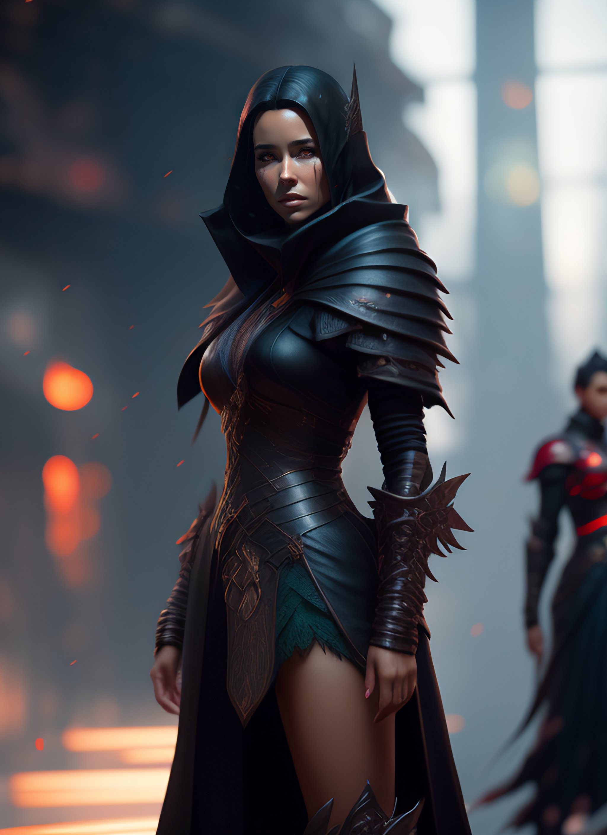 Mdjrny-v4 style fullbody, legs, scene of linda cardellini as an assassin, painting of a beautiful rpg rogue, black:1.5 tight leather robes, intricate details, very detail hair, very detail eyes, intense face, [elden ring|d & d] concept art, rpg portrait, octane render, cinematic lighting, (soft shadow:1.2), depth of field, splash art, art by wlop and greg rutkowski
