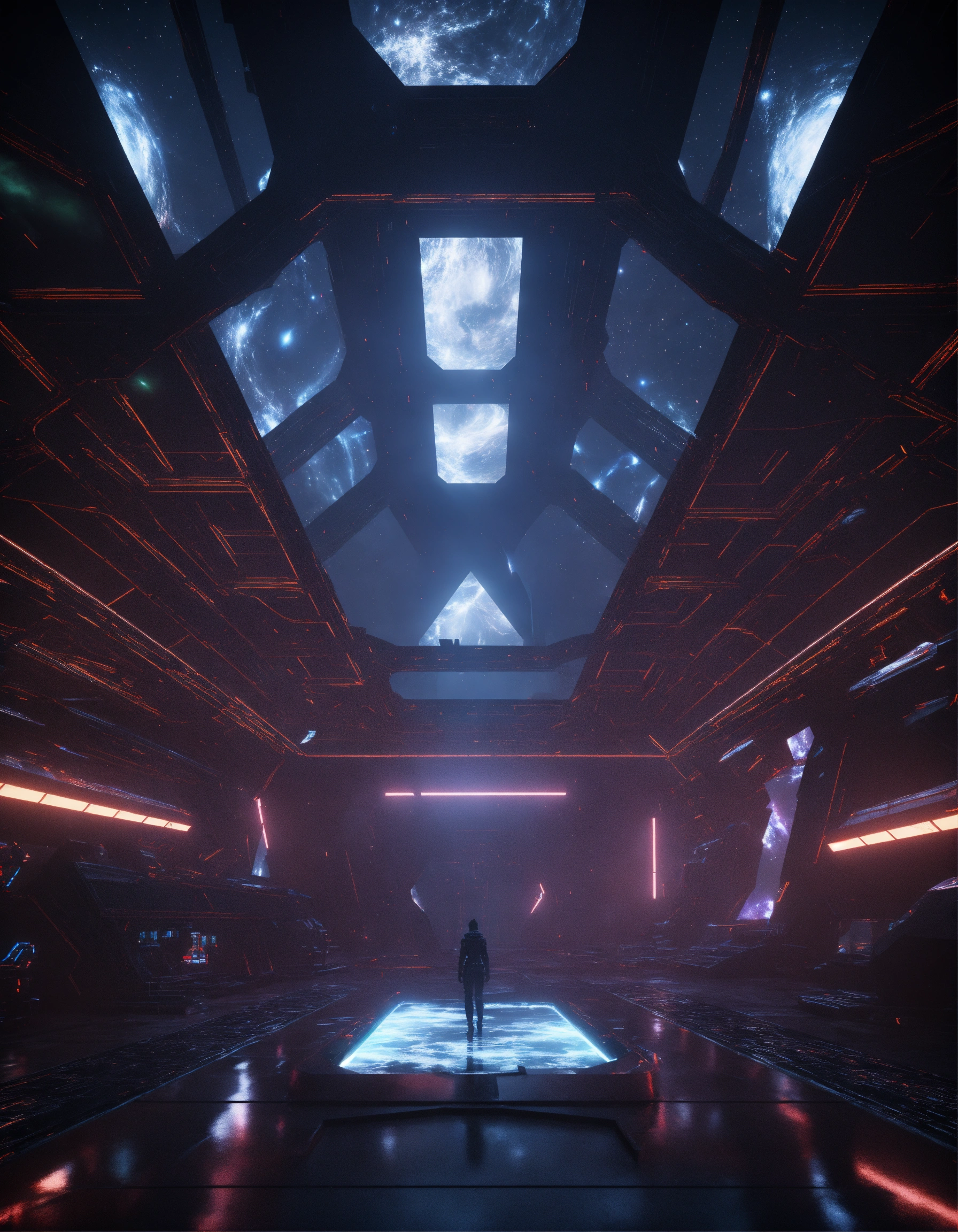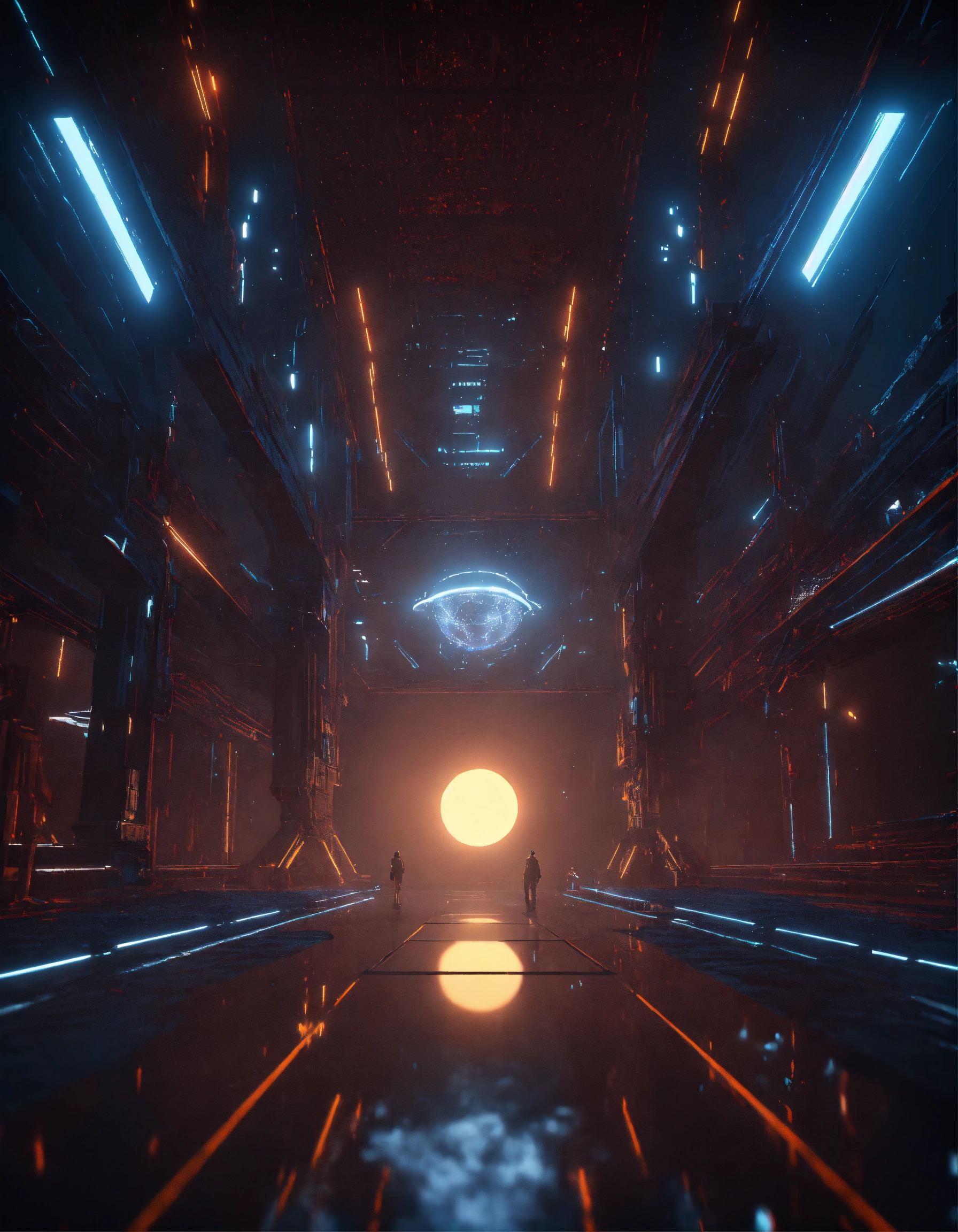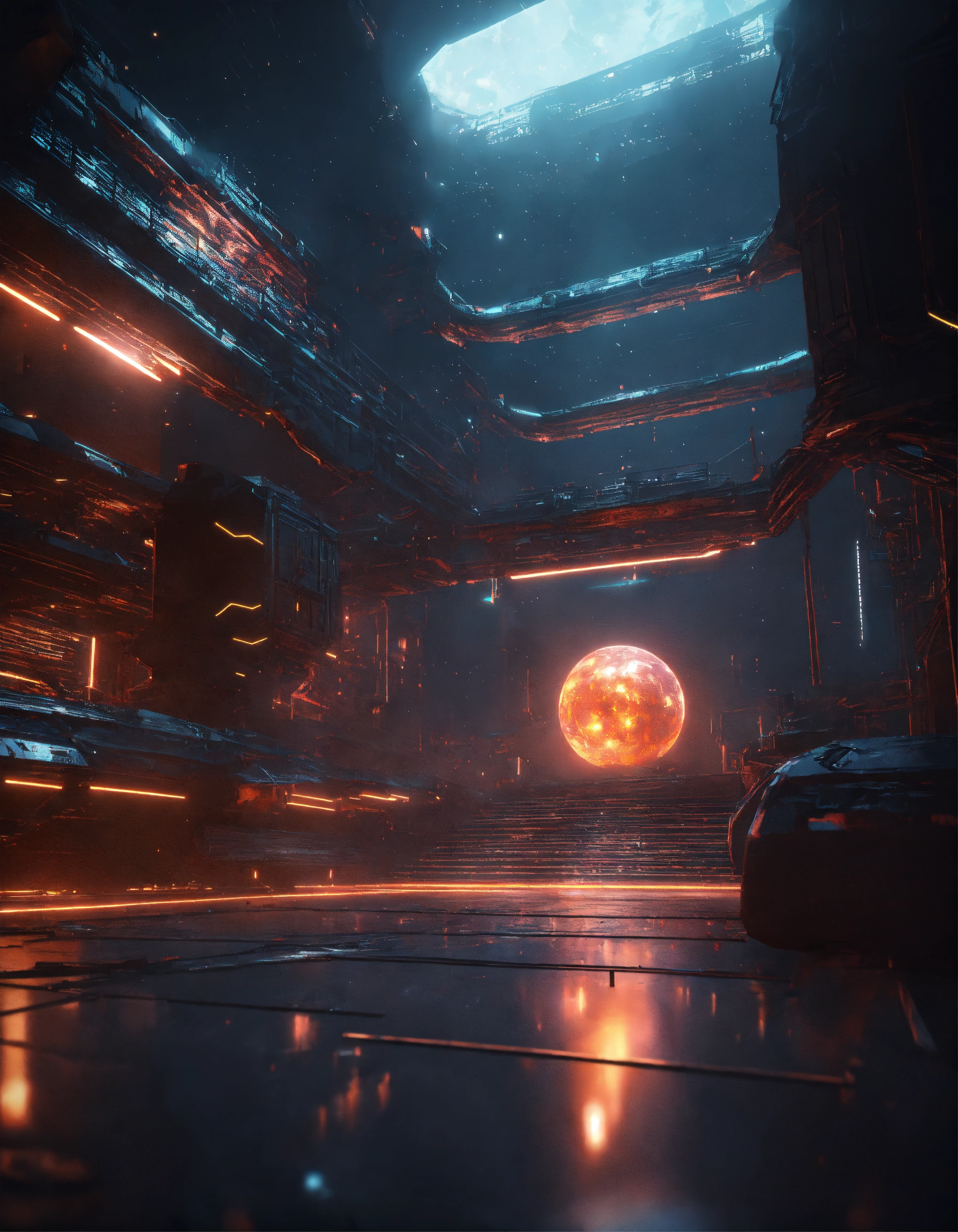 Futuristic, dark, menacing environment with volumetric lighting, cosmic entity, 8k resolution, blender