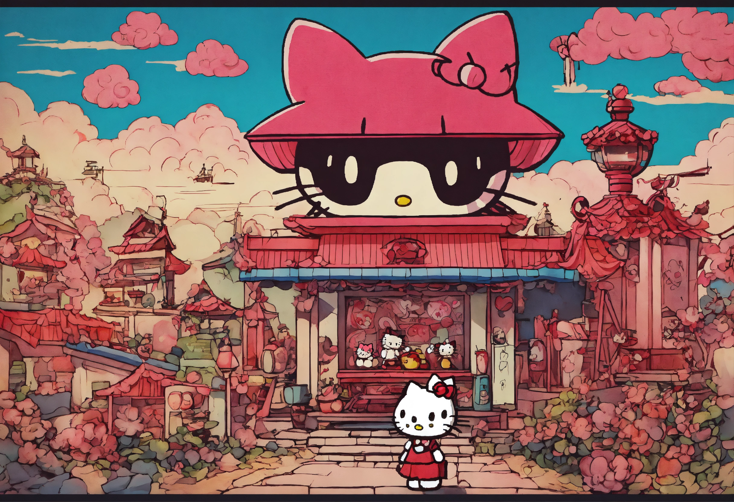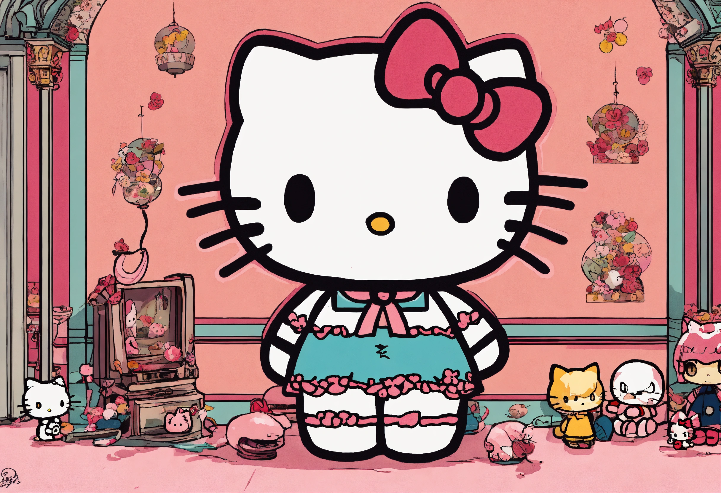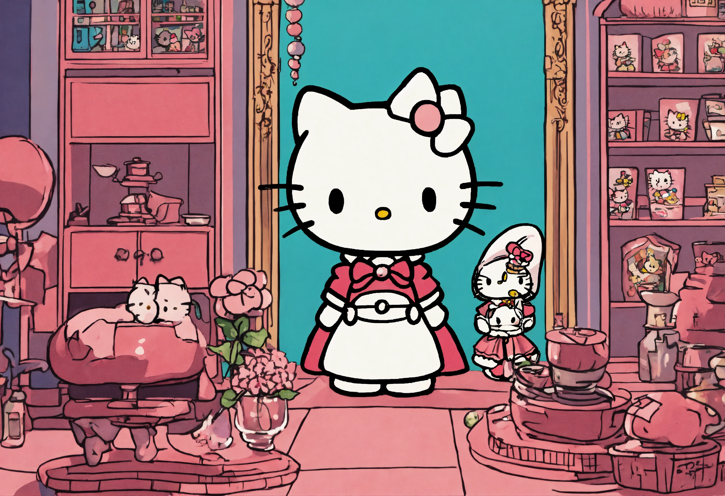 Traditional hand-drawn animation of hello kitty and her evil alter ego