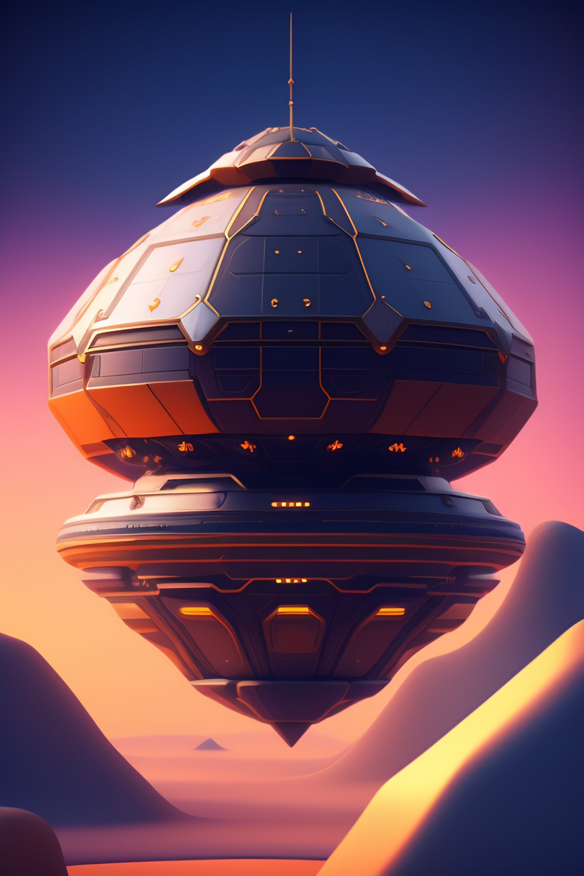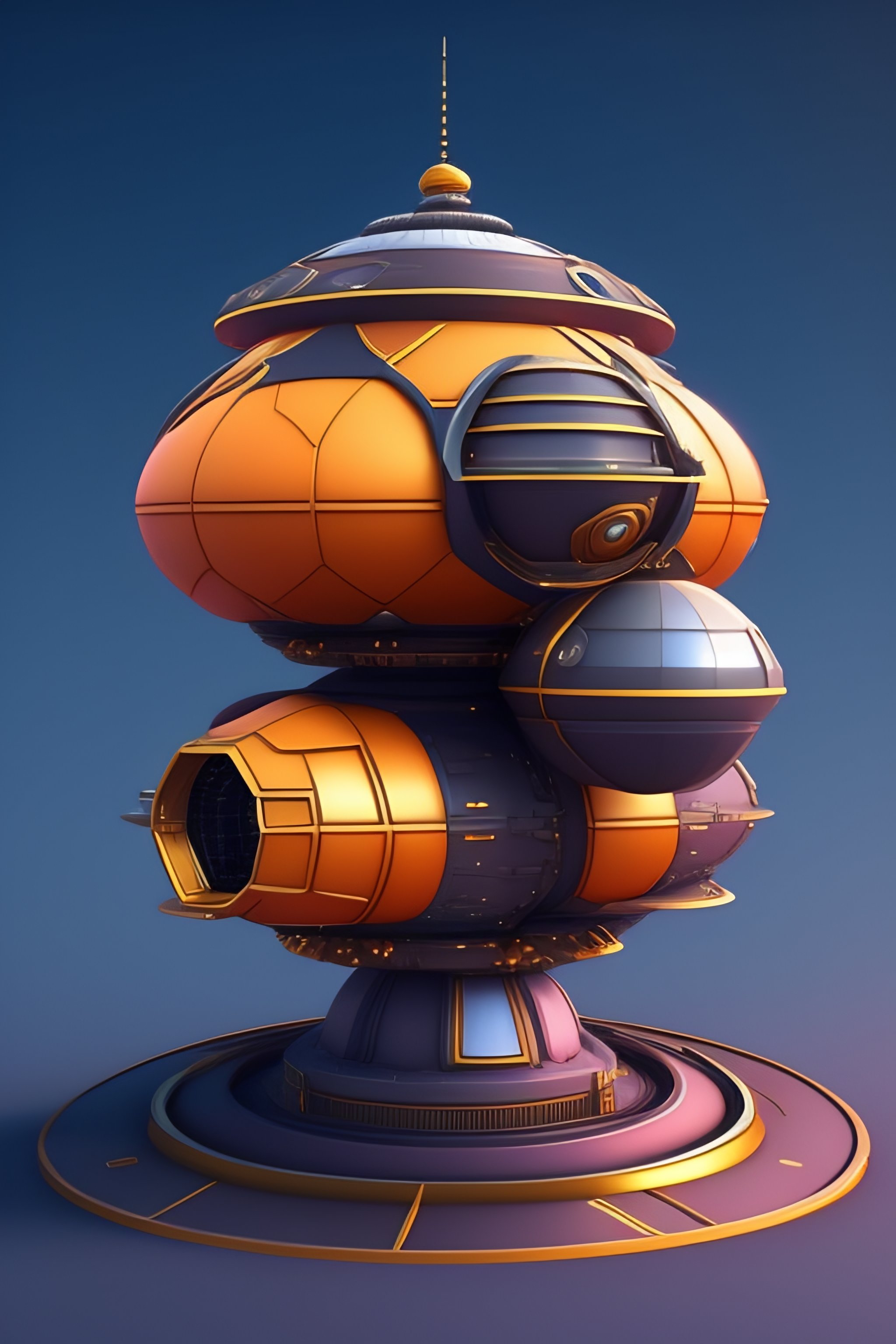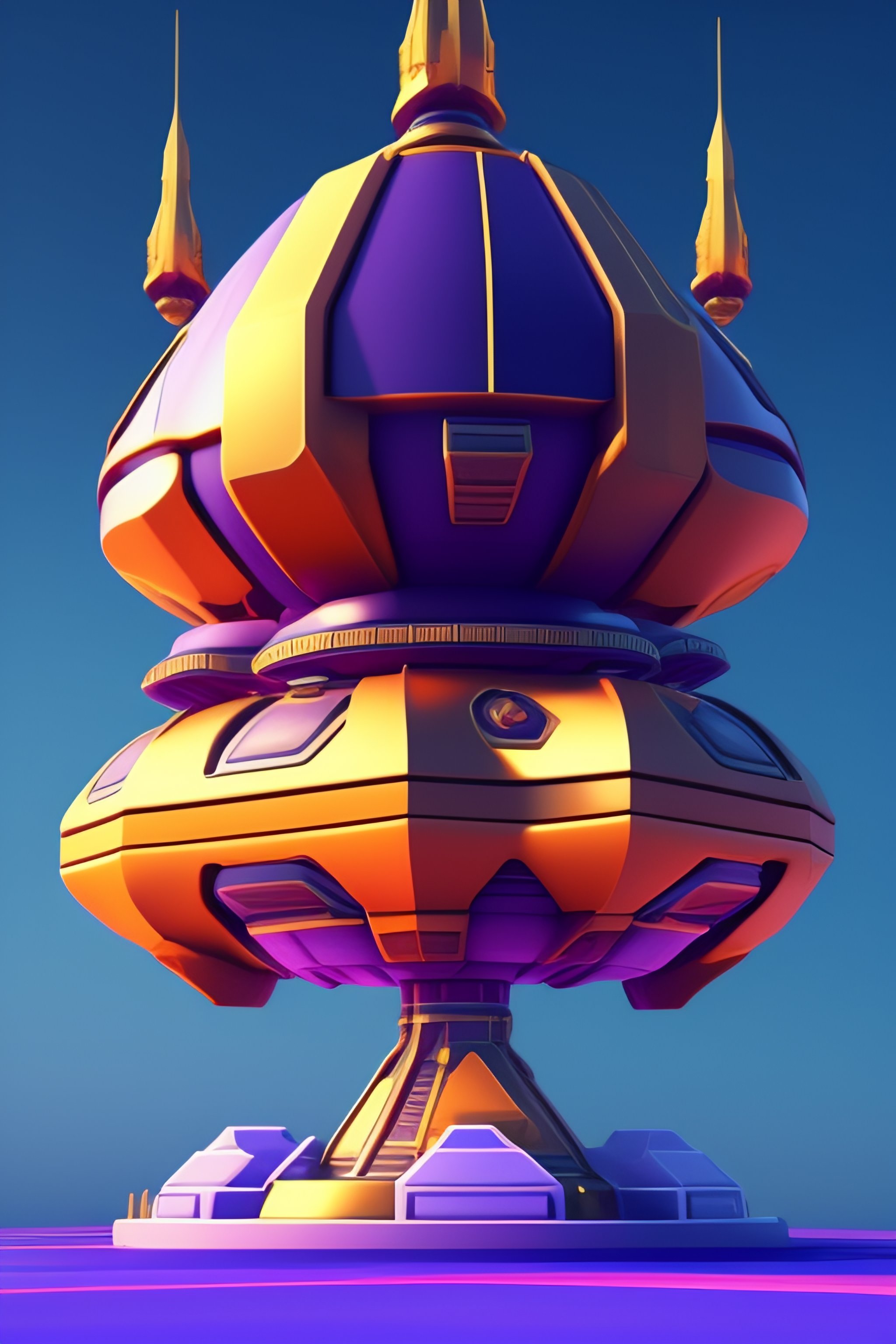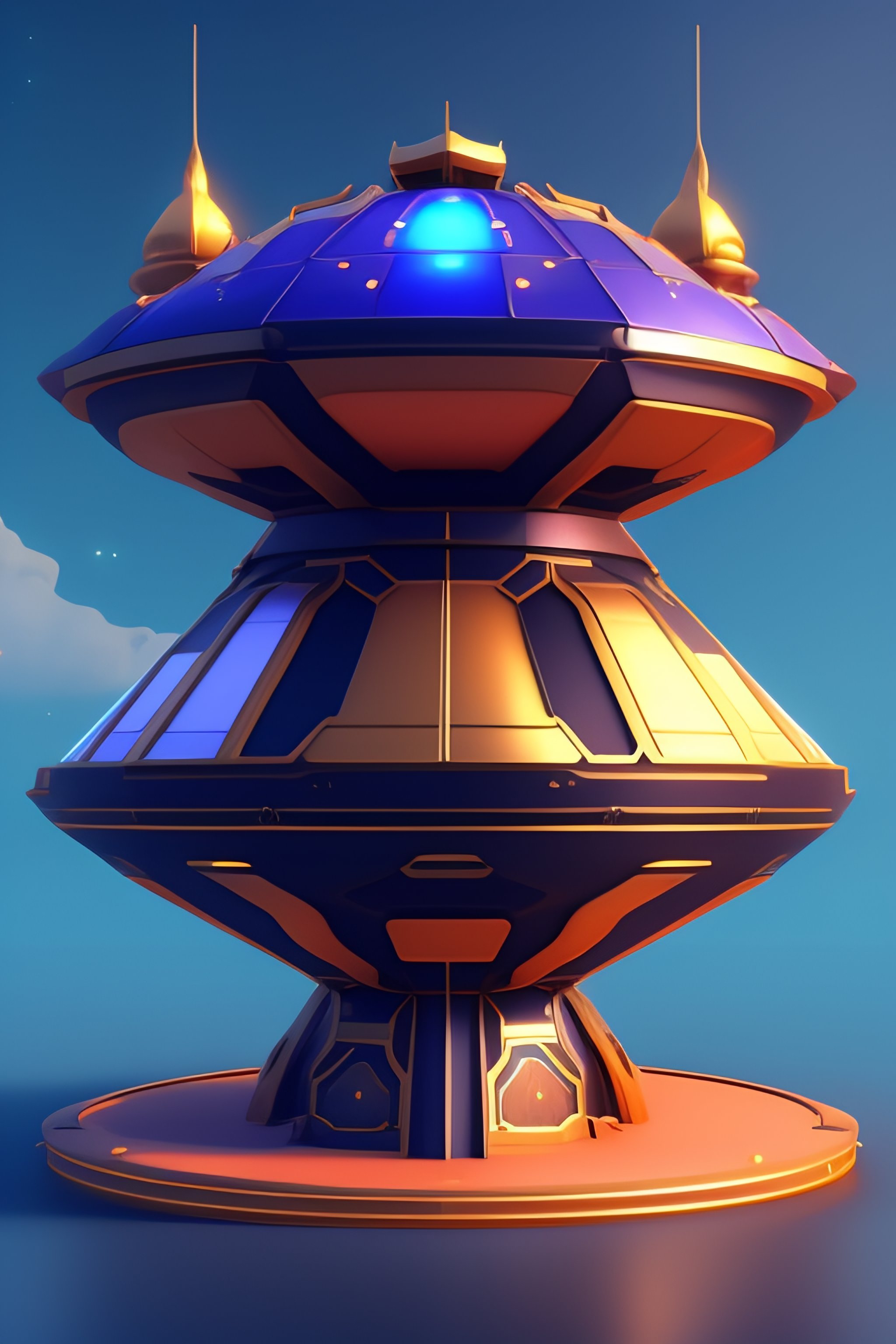 Space ship structure by blizzard entertainment, mobile game asset, isometric, centralised, low details, no background, no shadow, blender cycles render, solid colors material