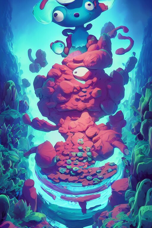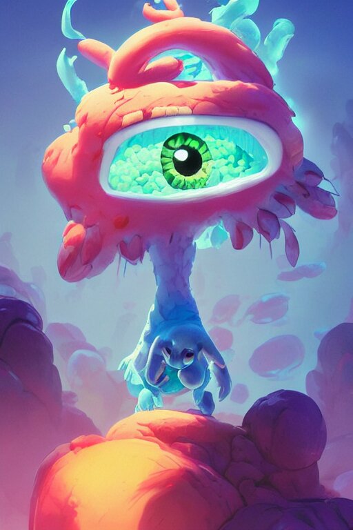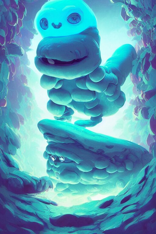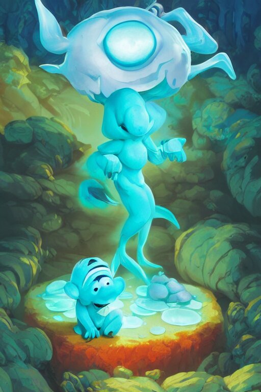 Smurf ghost creature animal sushi cristal very big eye roots cactus elemental flush of force nature micro world fluo fishscale, behance hd by jesper ejsing, by rhads, makoto shinkai and lois van baarle, ilya kuvshinov, rossdraws radiating a glowing aura global illumination ray tracing hdr