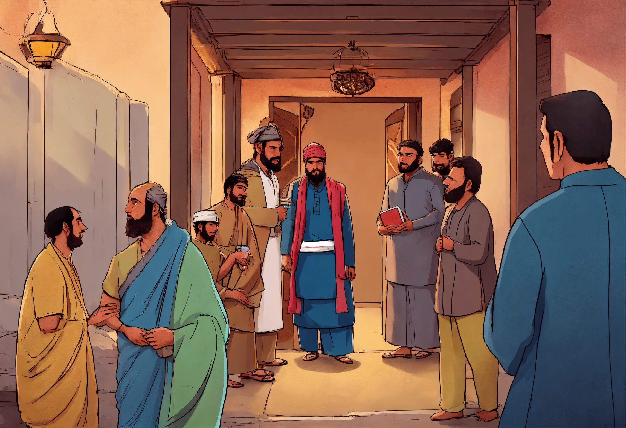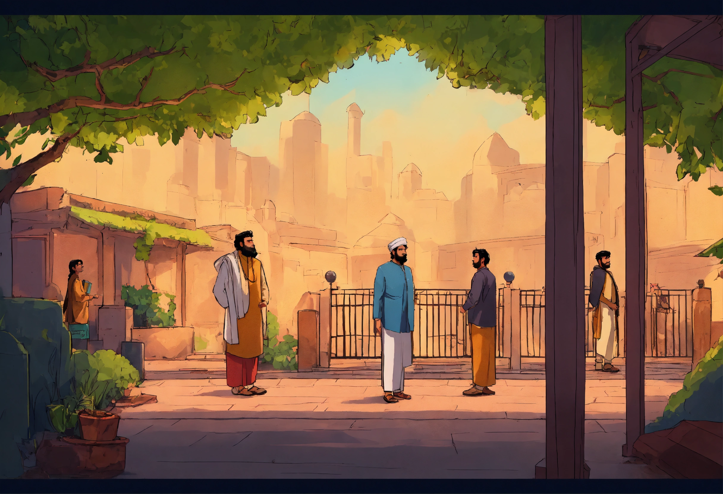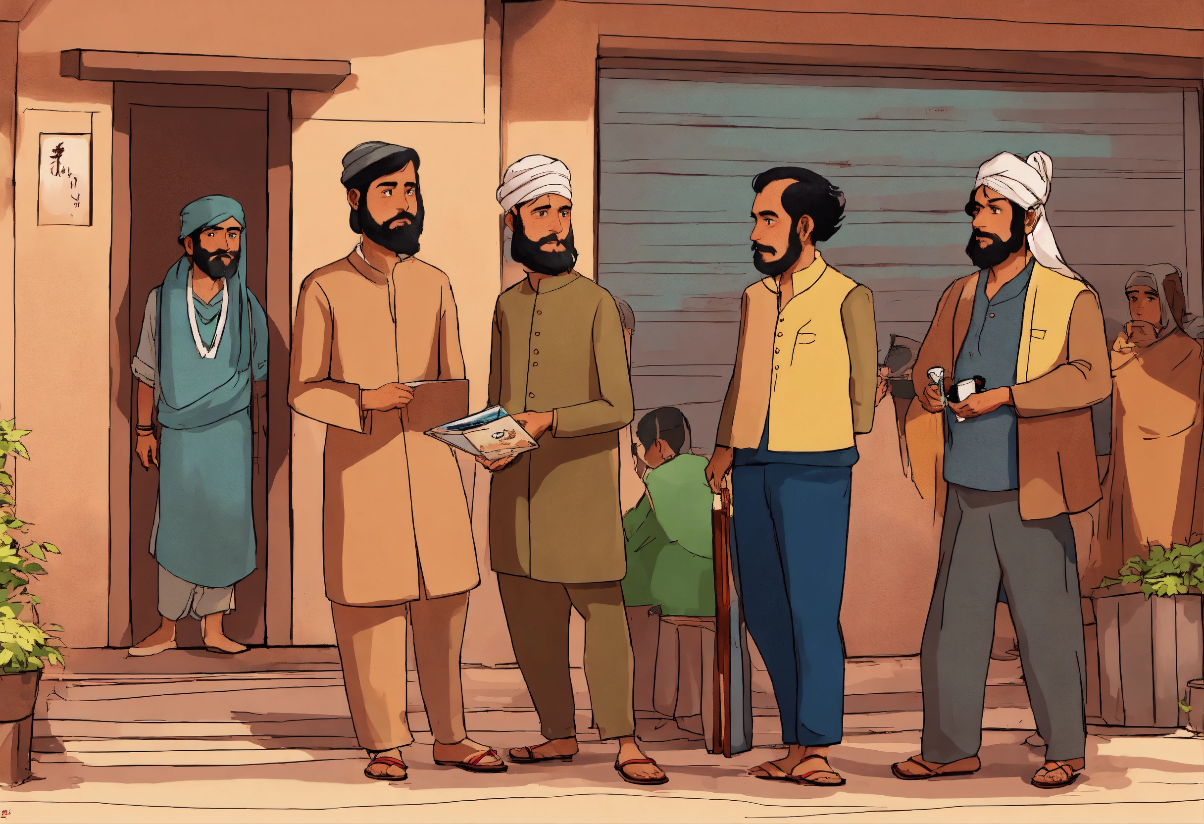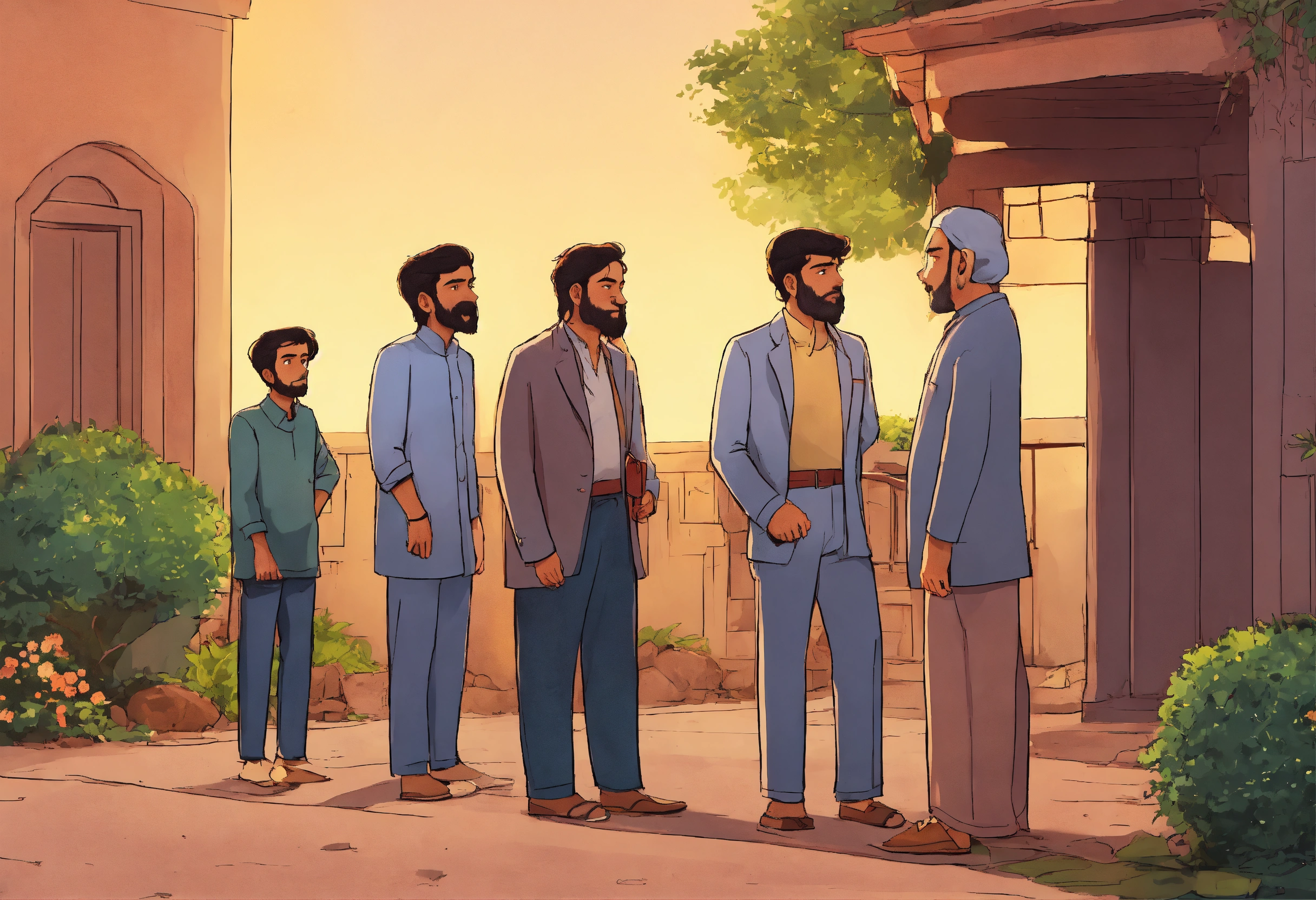 Just then karmu kaka came and said, "faizan son, your friends are standing outside waiting for you." "in ai cartoon image