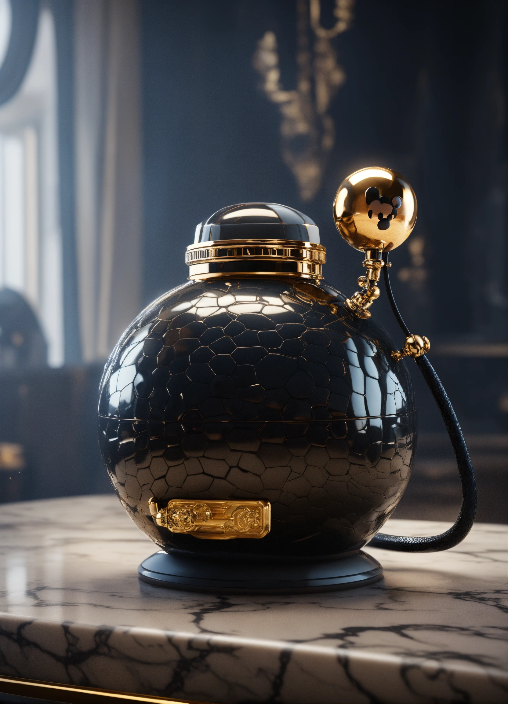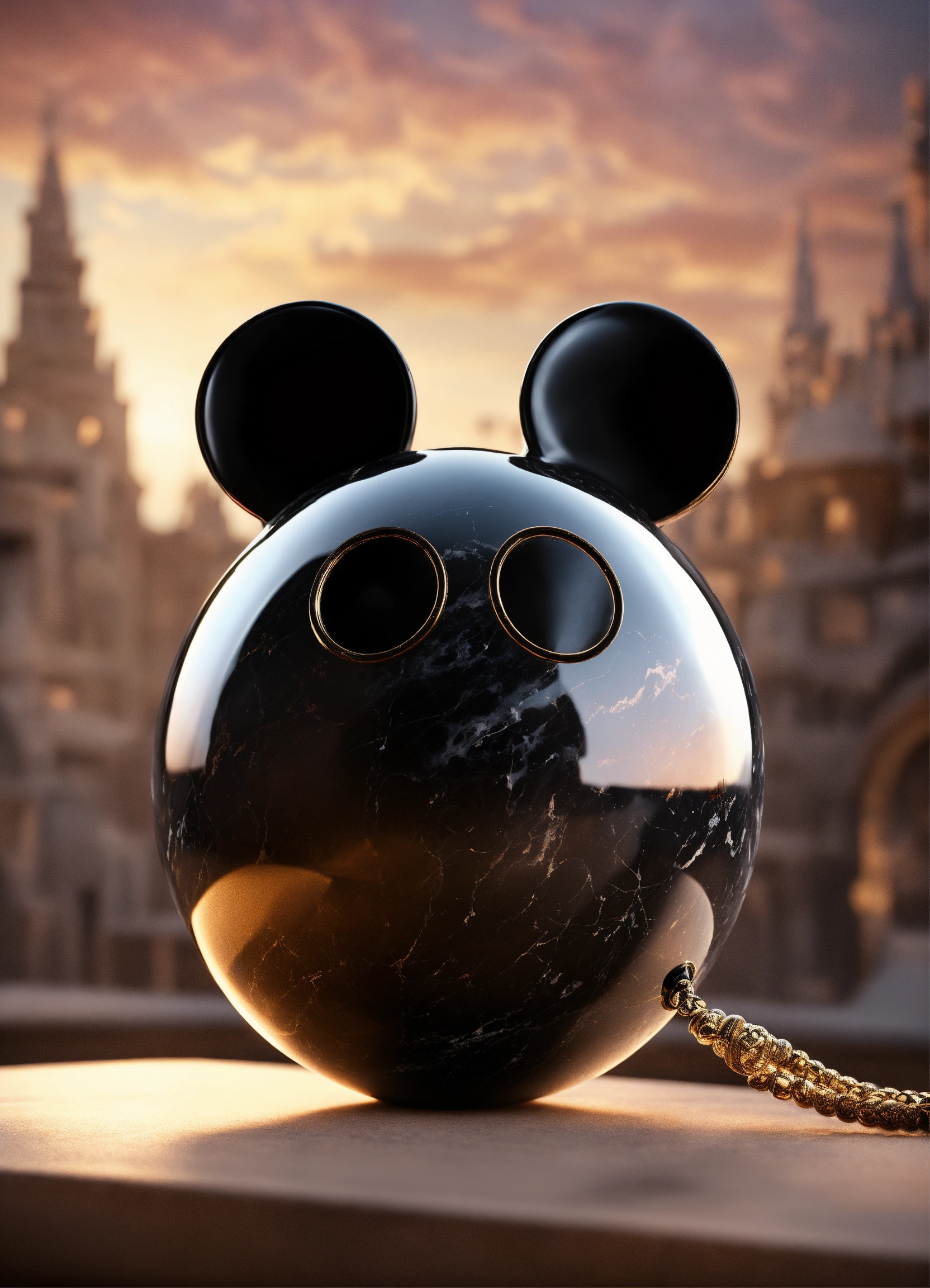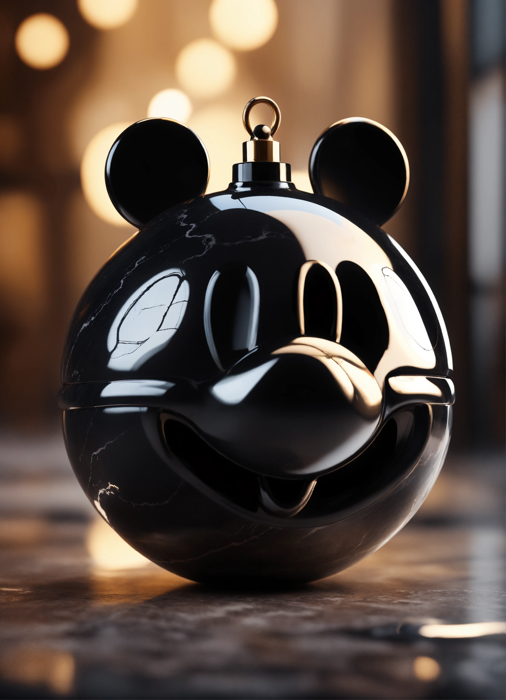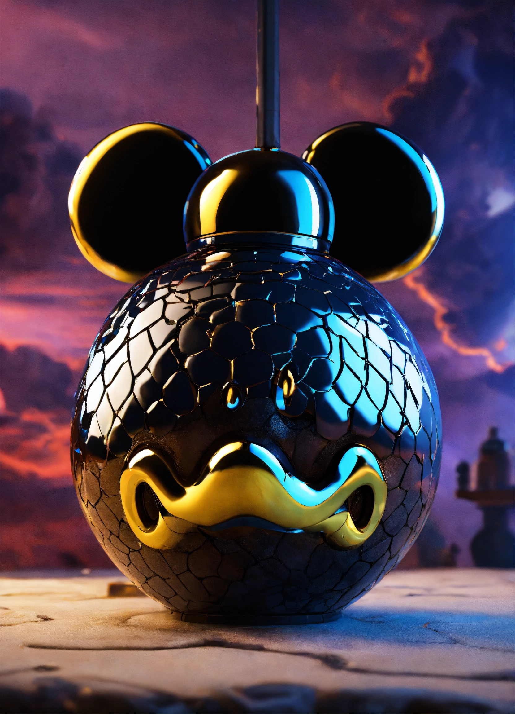 Mickey mouse marble grenade concept, made out of black snake clouds, luxury, futurist, stunning unreal engine render, product photography, 8k, hyper-realistic. surrealism