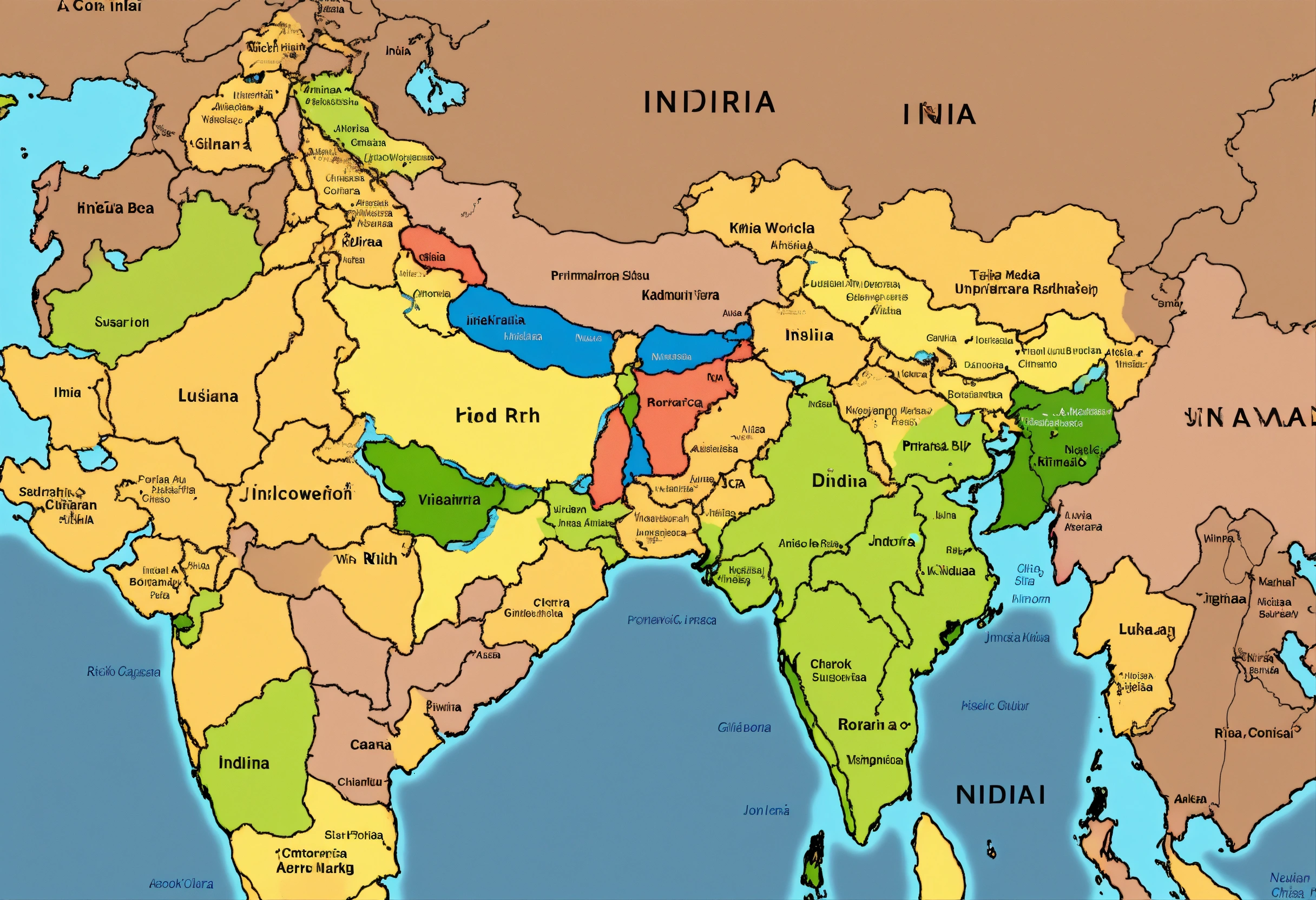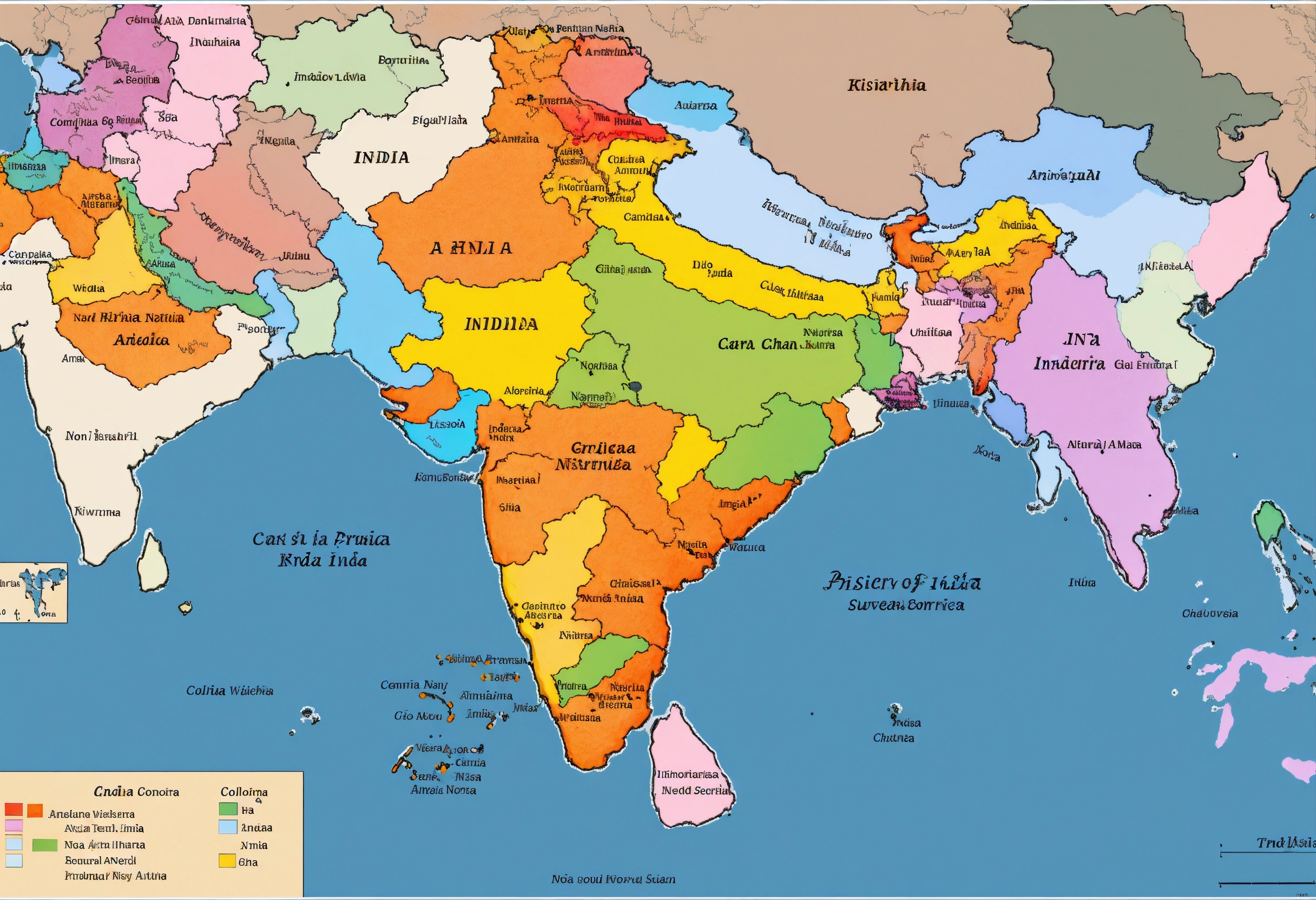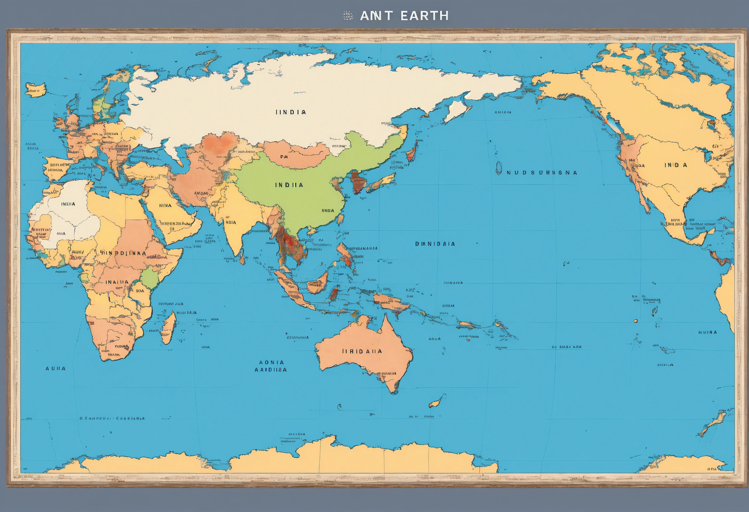Create an image of planet earth, prominently featuring the indian subcontinent. the map of india should be clearly visible, with distinct borders and labels. use a color palette that complements the natural colors of earth, and make sure india's location is unmistakably marked. you can include a title like 'discovering india's rich heritage' for context.
